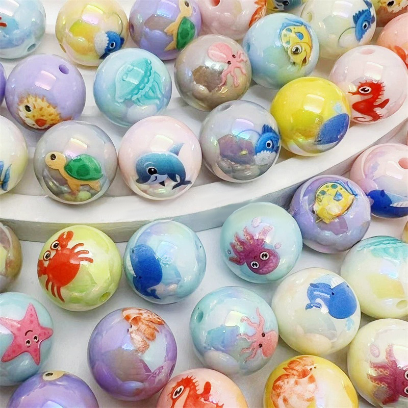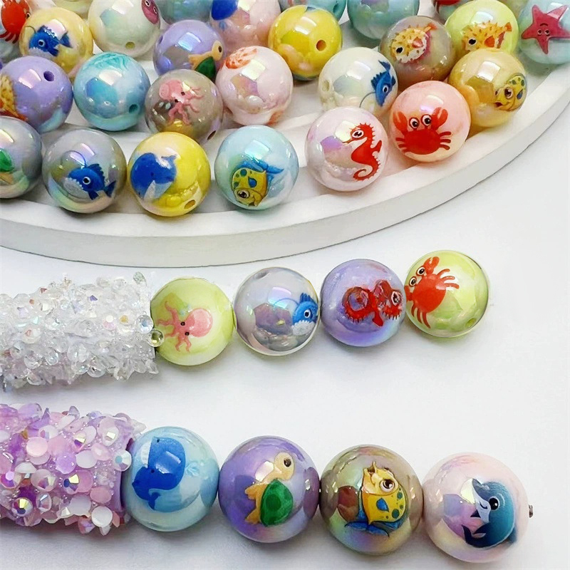 Perline acriliche Jewelry, acrilico, Cerchio, stampa, DIY, colori misti, 16x16mm, Foro:Appross. 2.8mm, Appross. 200PC/borsa, Venduto da borsa