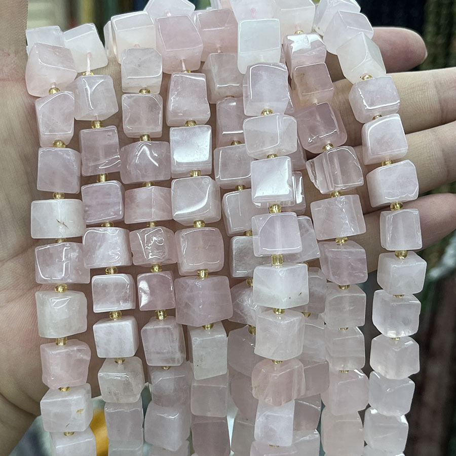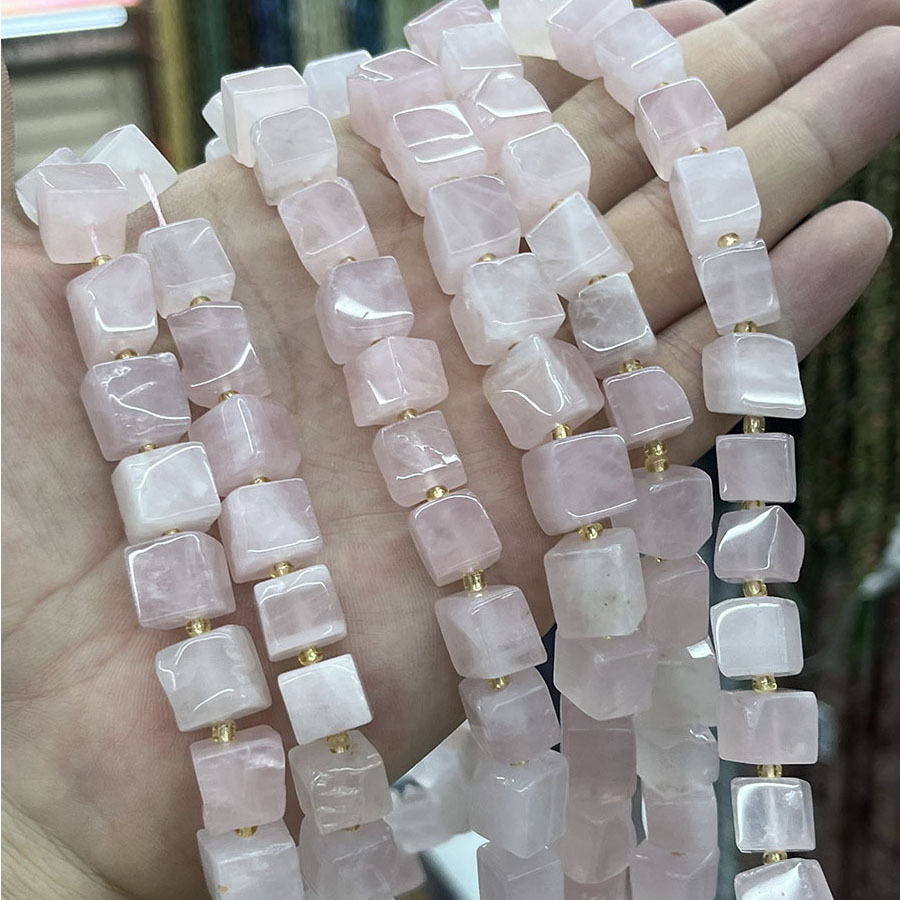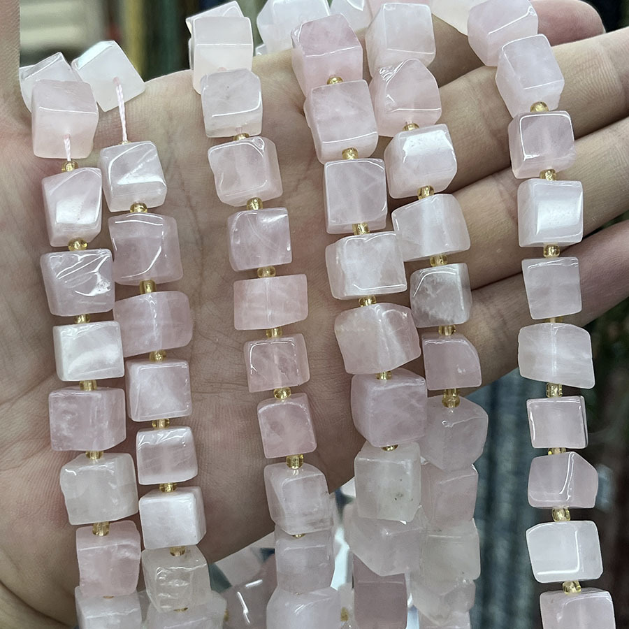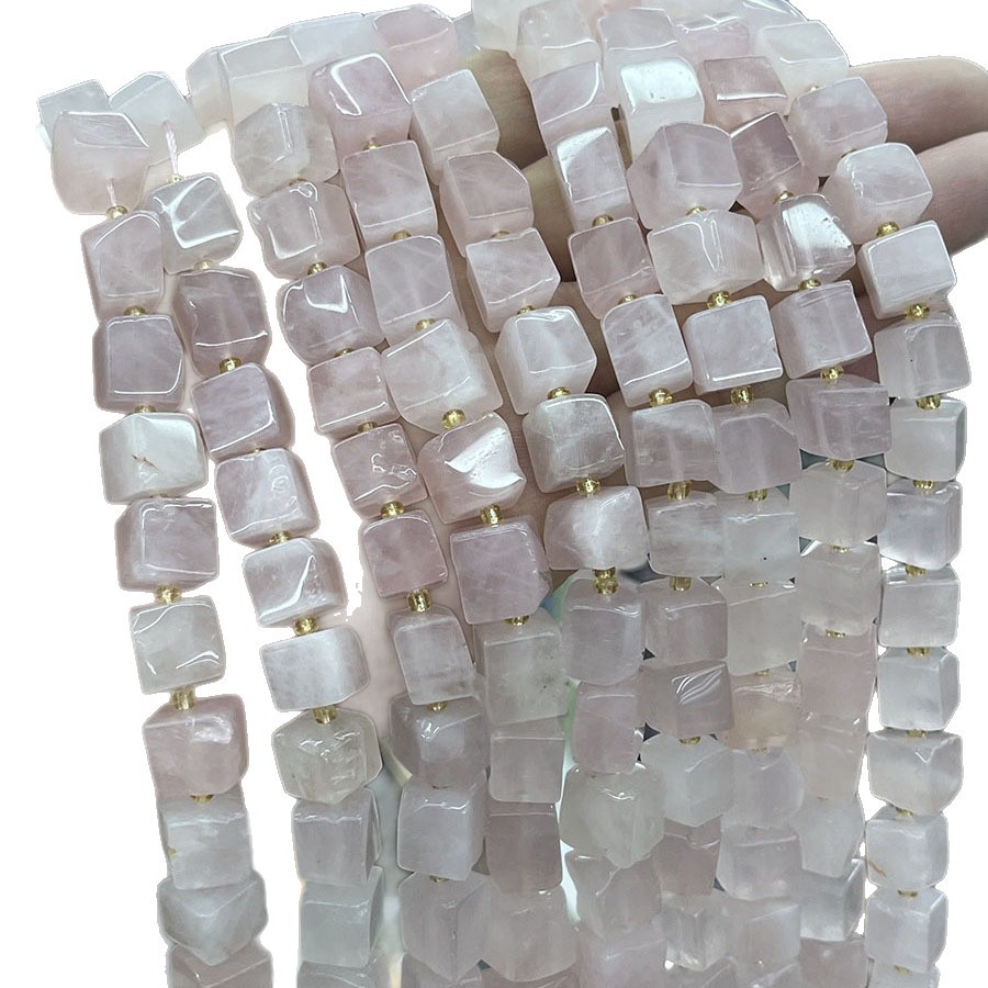 Perline di quarzo rosa naturale, Quadrato, DIY, rosa, 8-9mm, Venduto per Appross. 38 cm filo