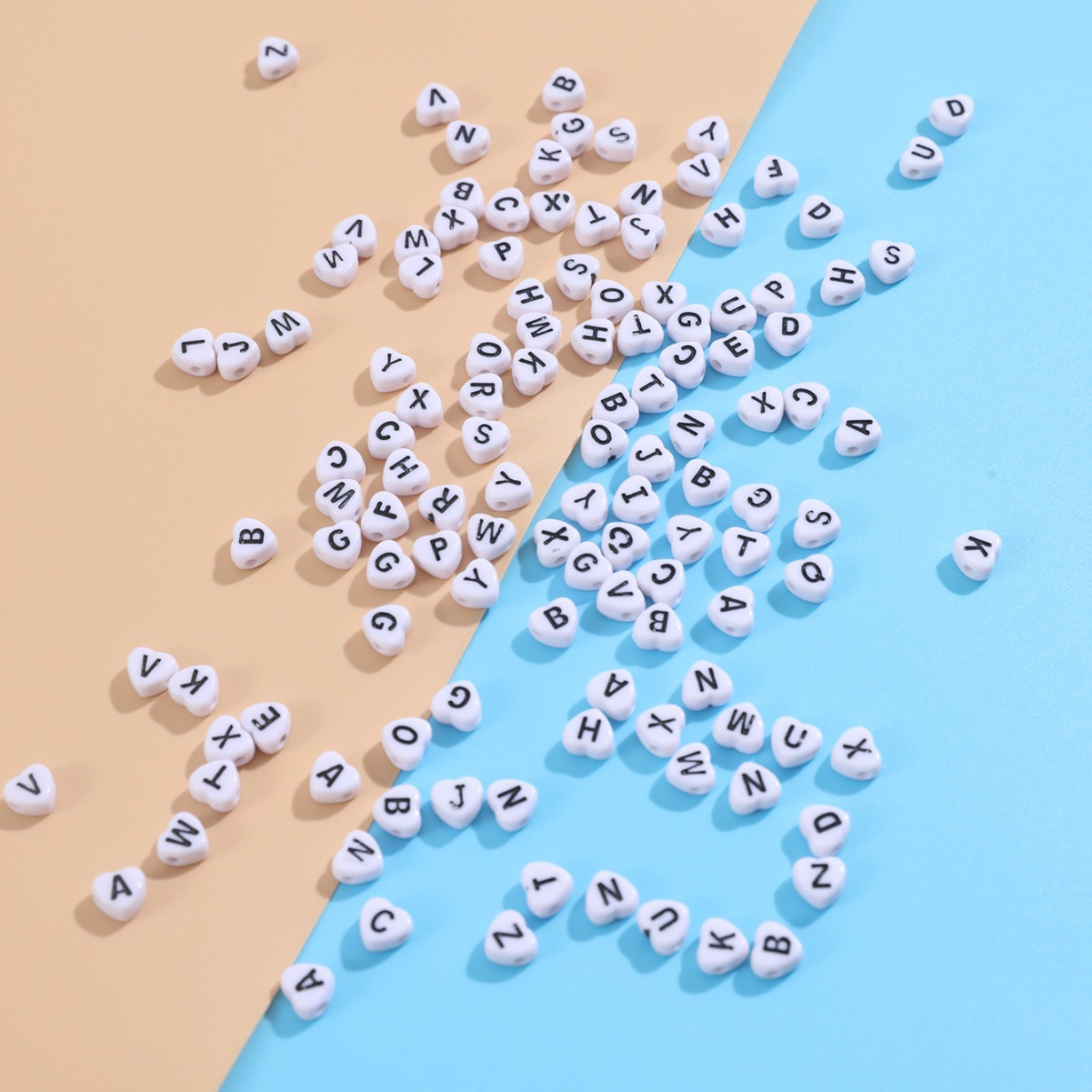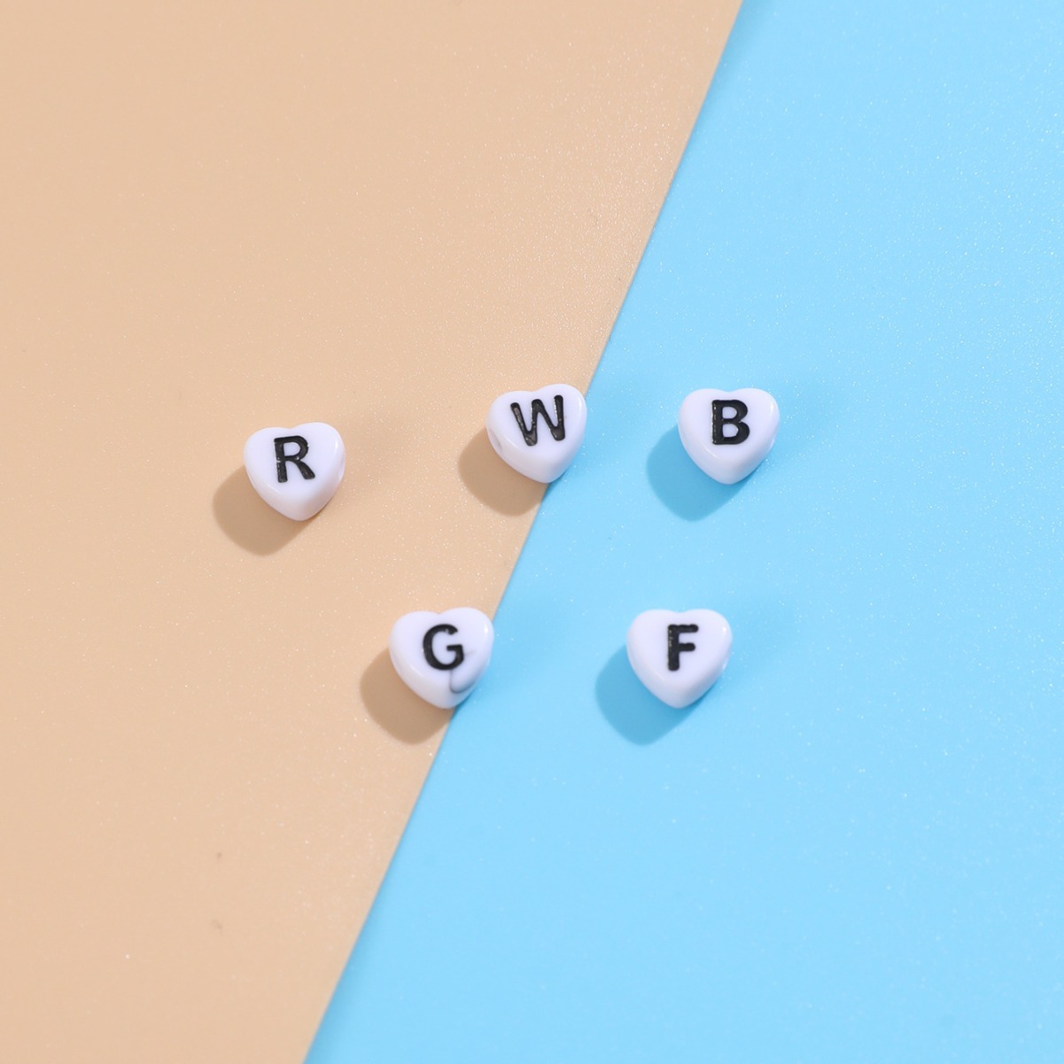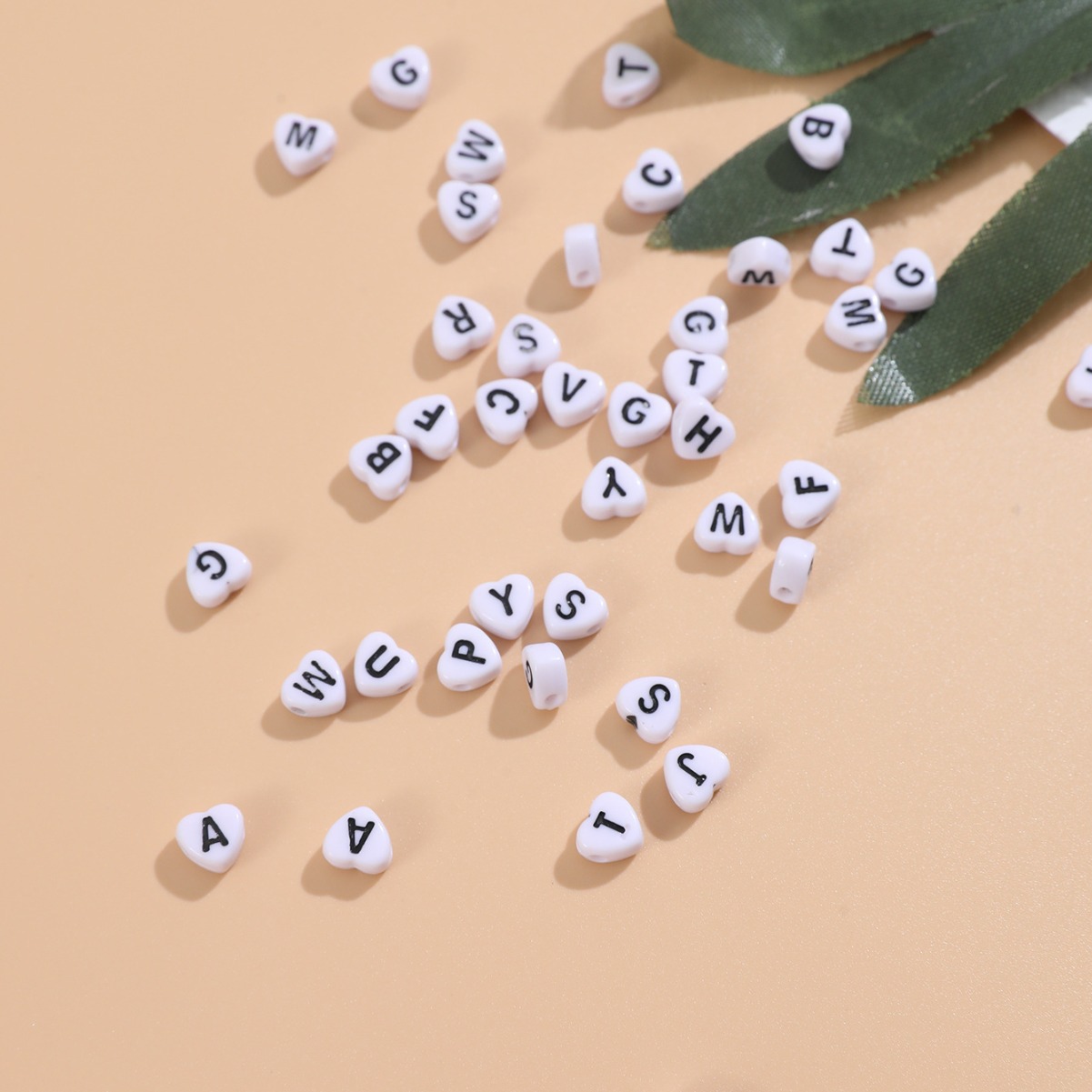 Perline in acrilico ad alfabeto, Cuore, DIY & smalto, bianco e nero, 4x7mm, Appross. 500sol/borsa, Venduto da borsa
