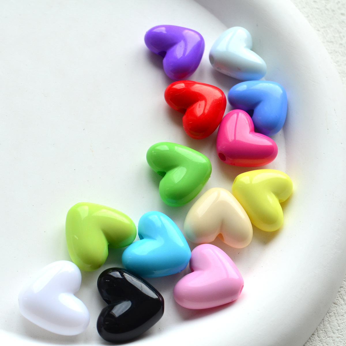Perline in acrilico a colore solido, Cuore, DIY, nessuno, 17x14.80mm, Foro:Appross. 2.2mm, Appross. 430PC/borsa, Venduto da borsa
