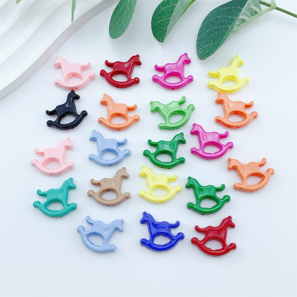 Perline in acrilico a colore solido, cavallo a dondolo, DIY, colori misti, 22x20mm, 100PC/borsa, Venduto da borsa