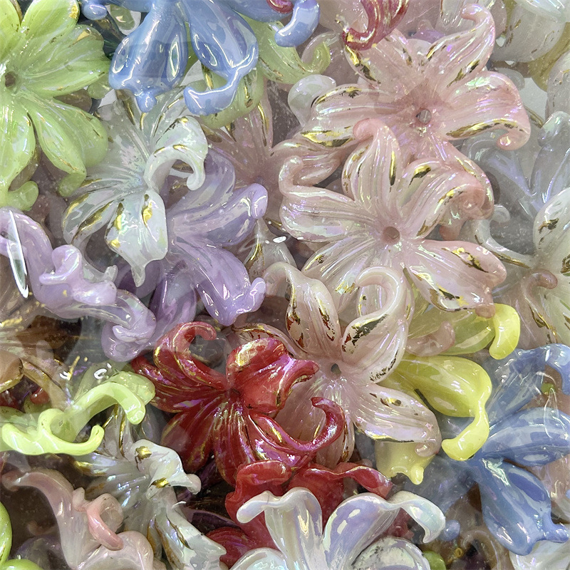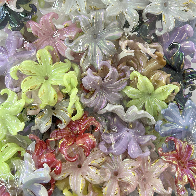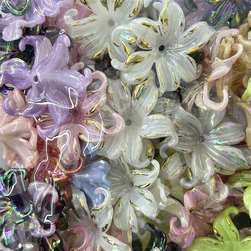 Perline in acrilico placcate, Fiore, DIY, colori misti, 43mm, 100PC/borsa, Venduto da borsa