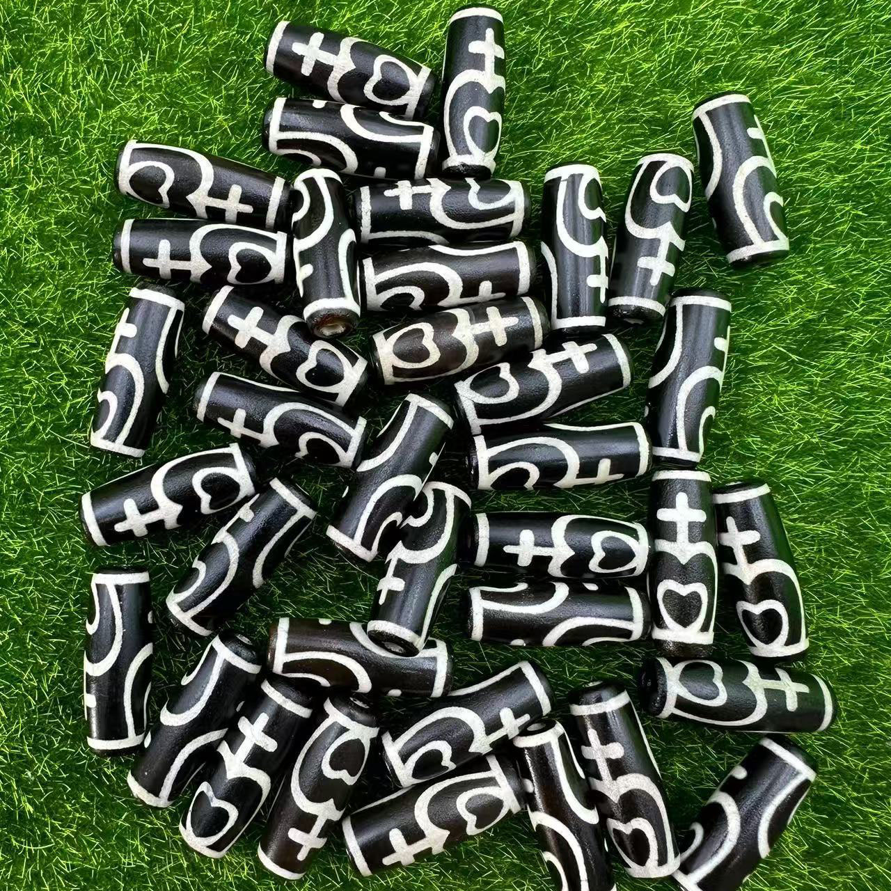 Perline naturali tibetane in agata Dzi, agata Tibetano, DIY & diversi modelli per la scelta, nero, 10x30mm, Venduto da PC