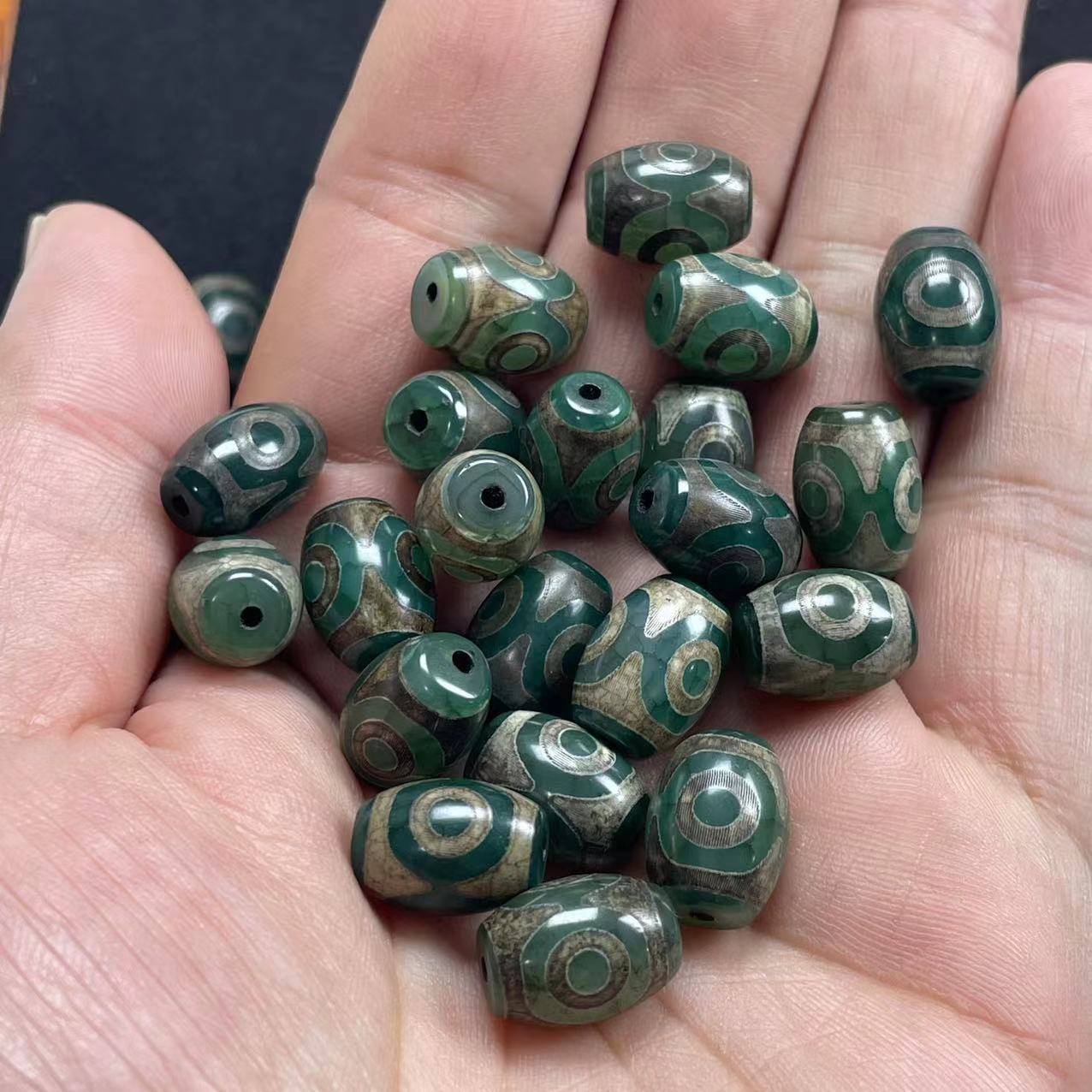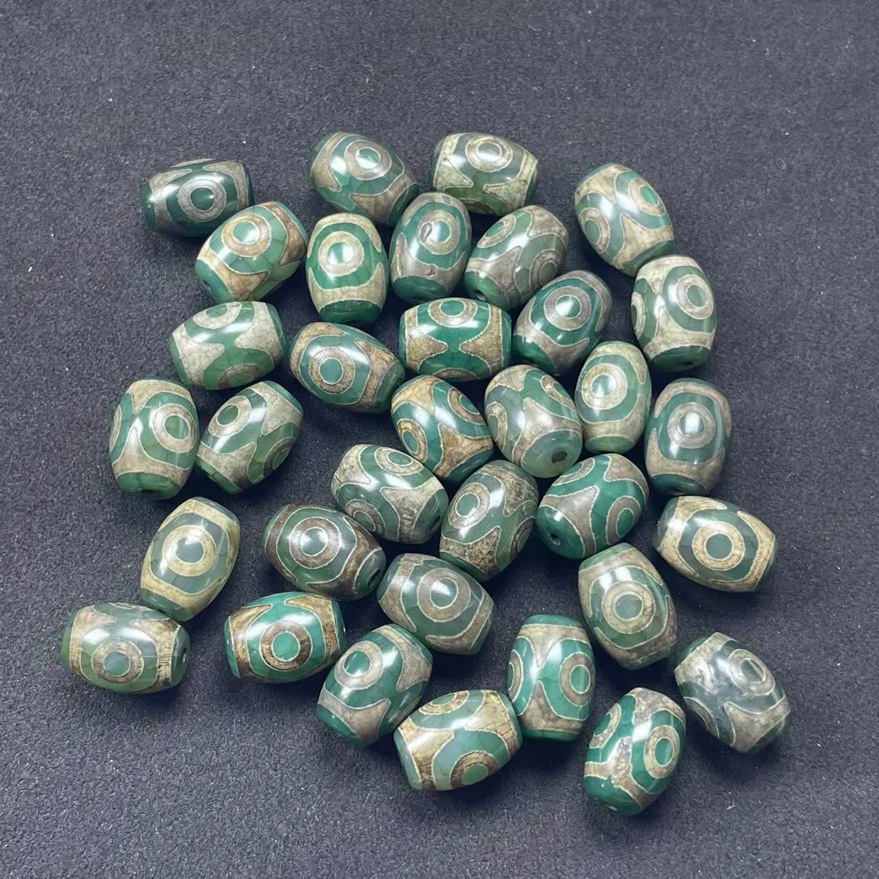 Perline naturali tibetane in agata Dzi, agata Tibetano, Naturale & DIY, verde, 10x14mm, Venduto da PC