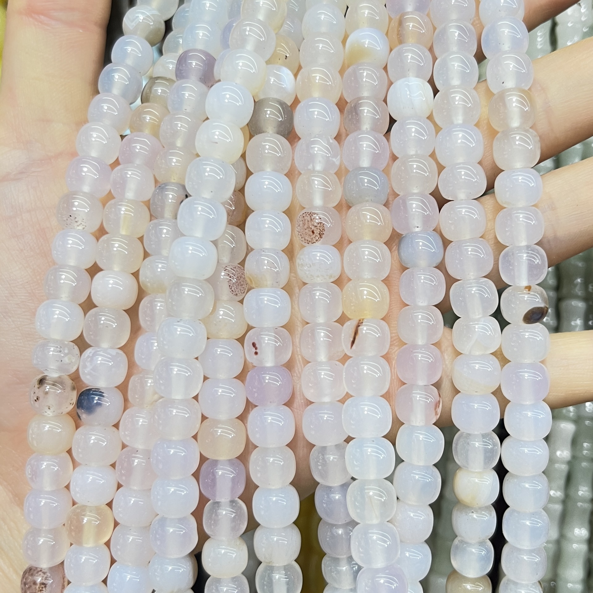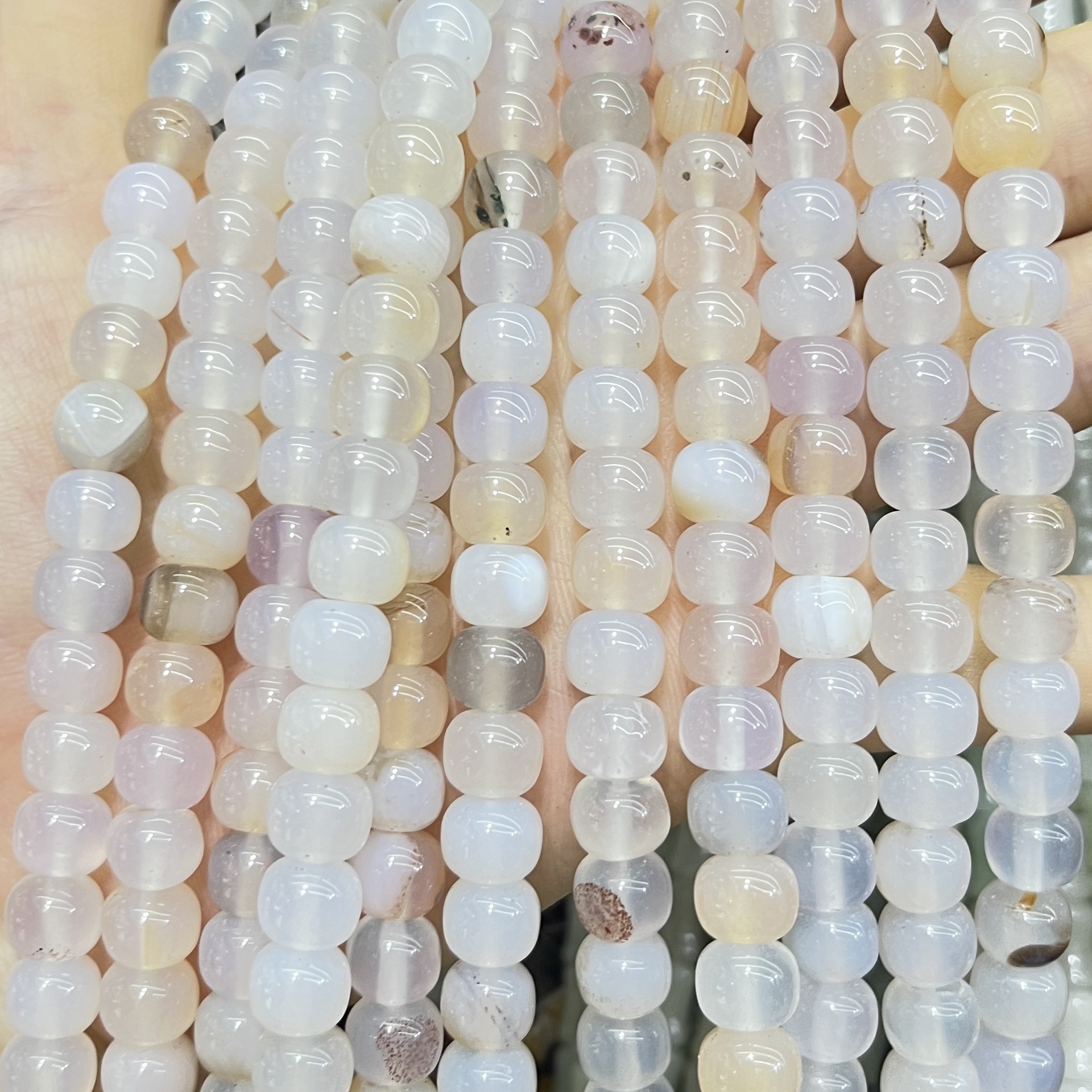 Perline in agata, Agata bianca del fiore di ciliegia, DIY, colori misti, 10mm, Venduto per Appross. 38 cm filo