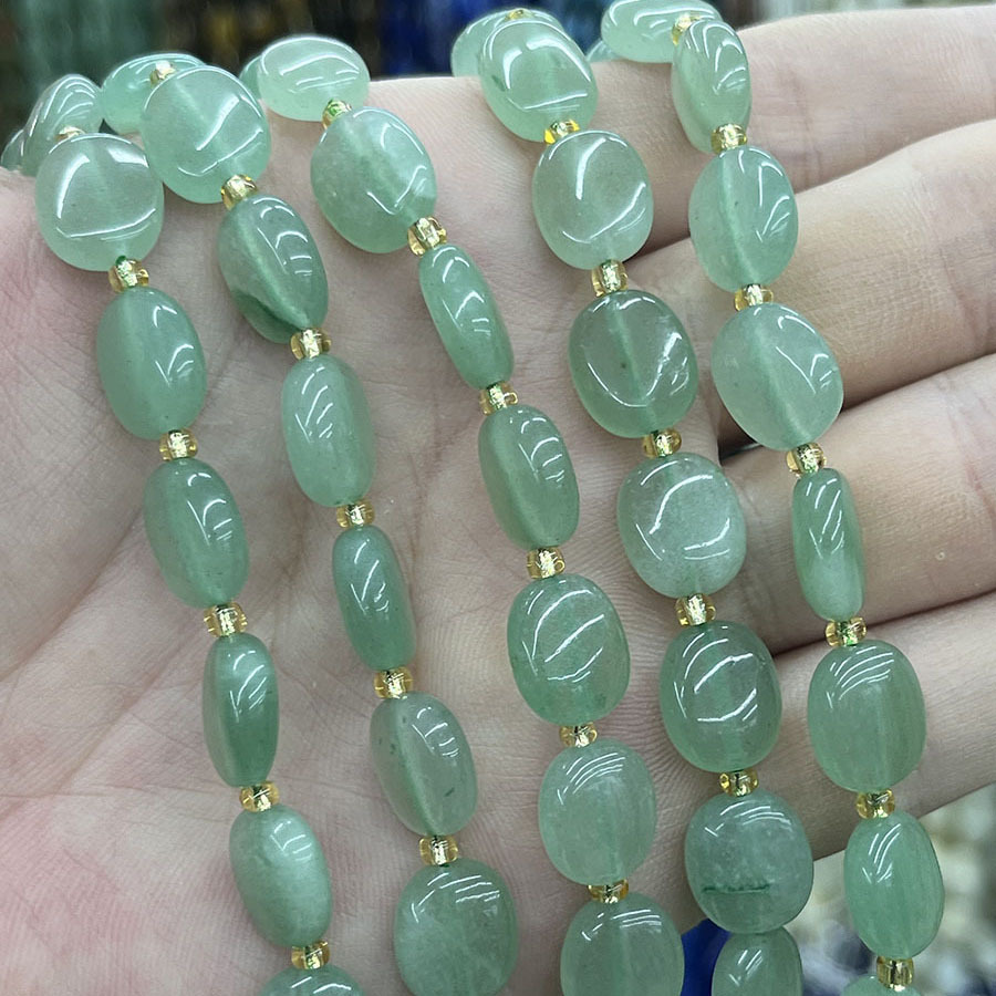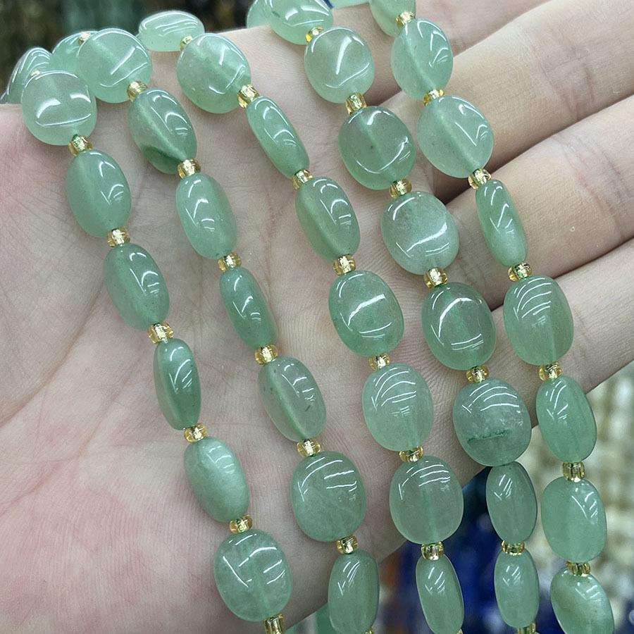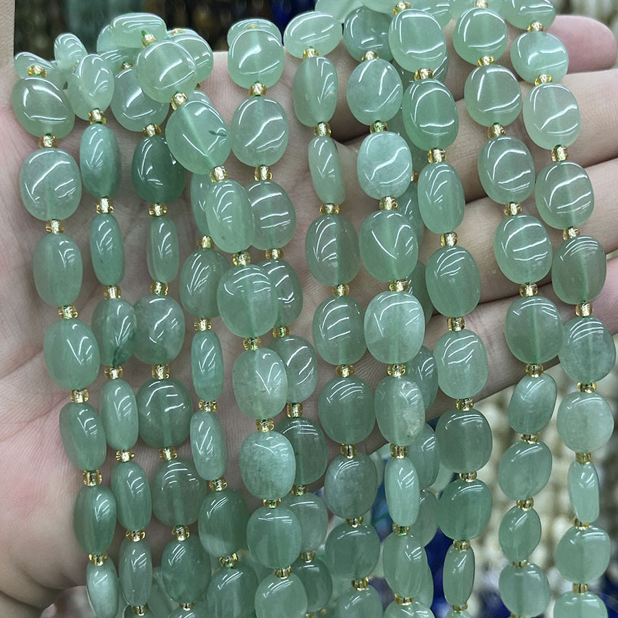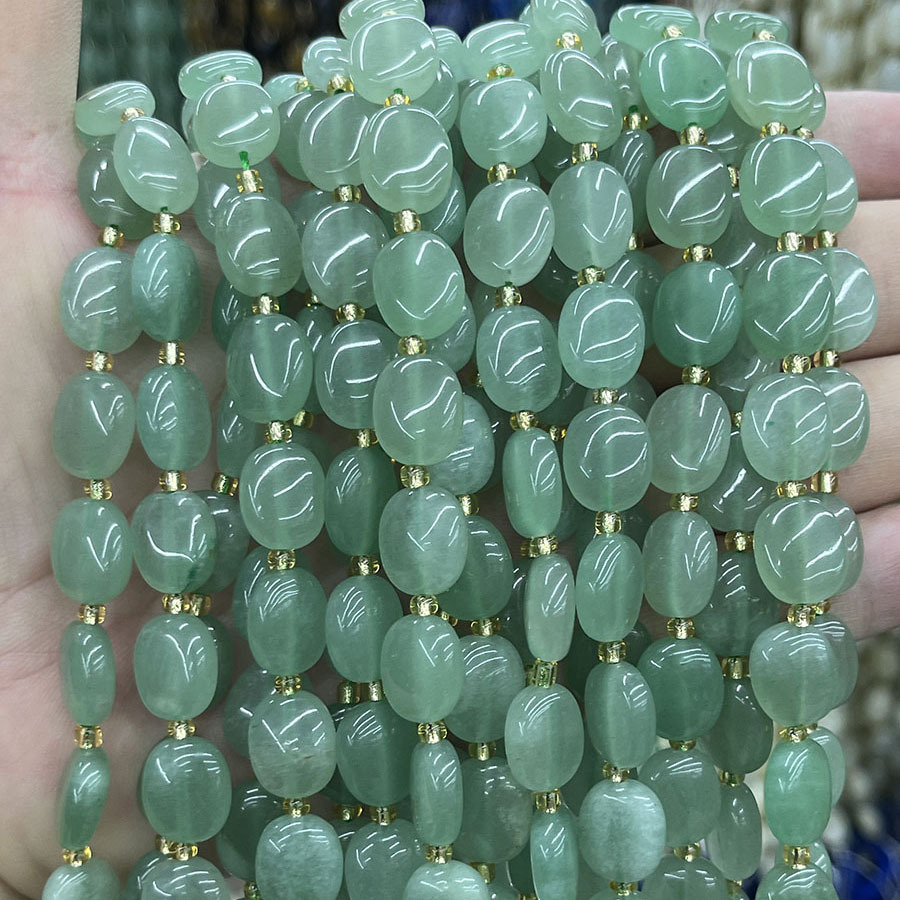 Perline avventurina, avventurina verde, ellisse, DIY, verde, 10x12mm, Venduto per 38 cm filo