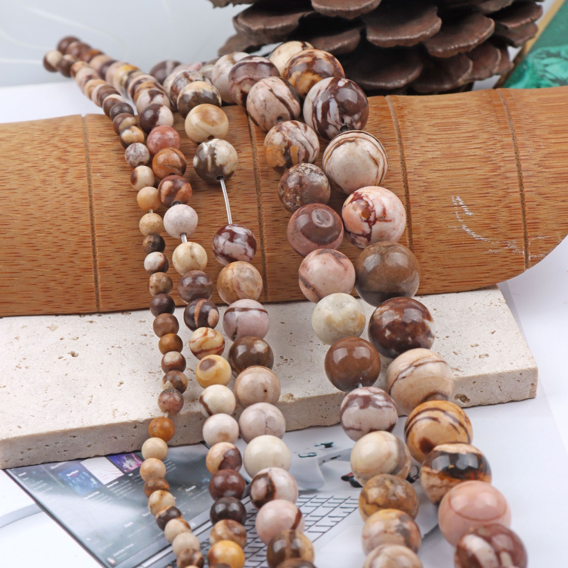 Perline gioielli gemme, Pietra naturale, Cerchio, DIY & stile fossile & formato differente per scelta, Foro:Appross. 1mm, Lunghezza Appross. 15.5 pollice, Venduto da PC