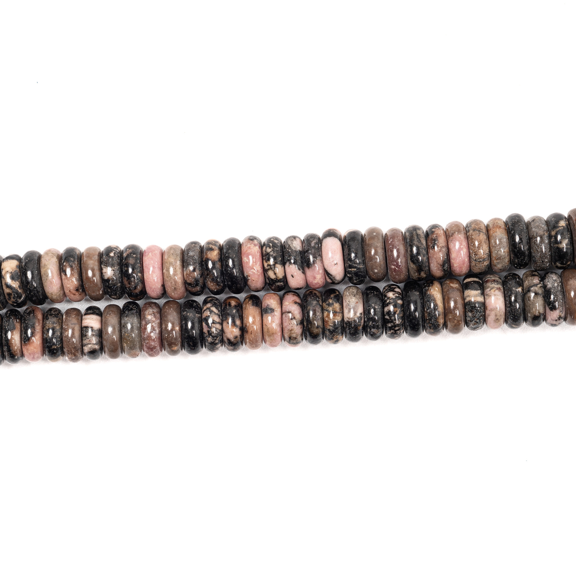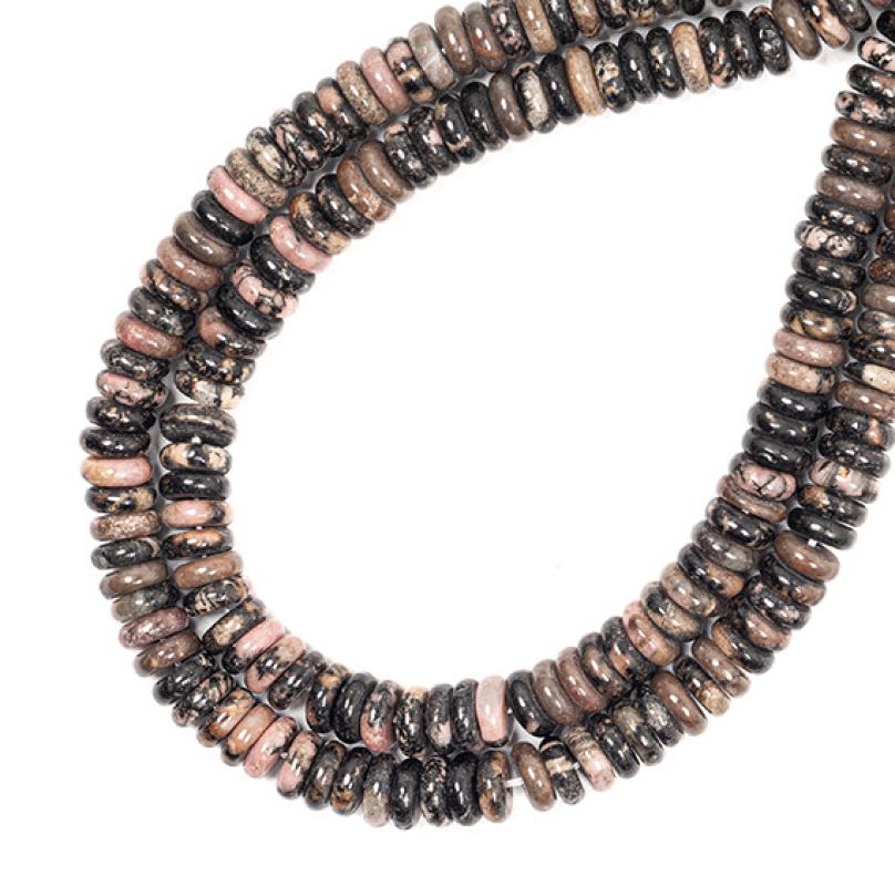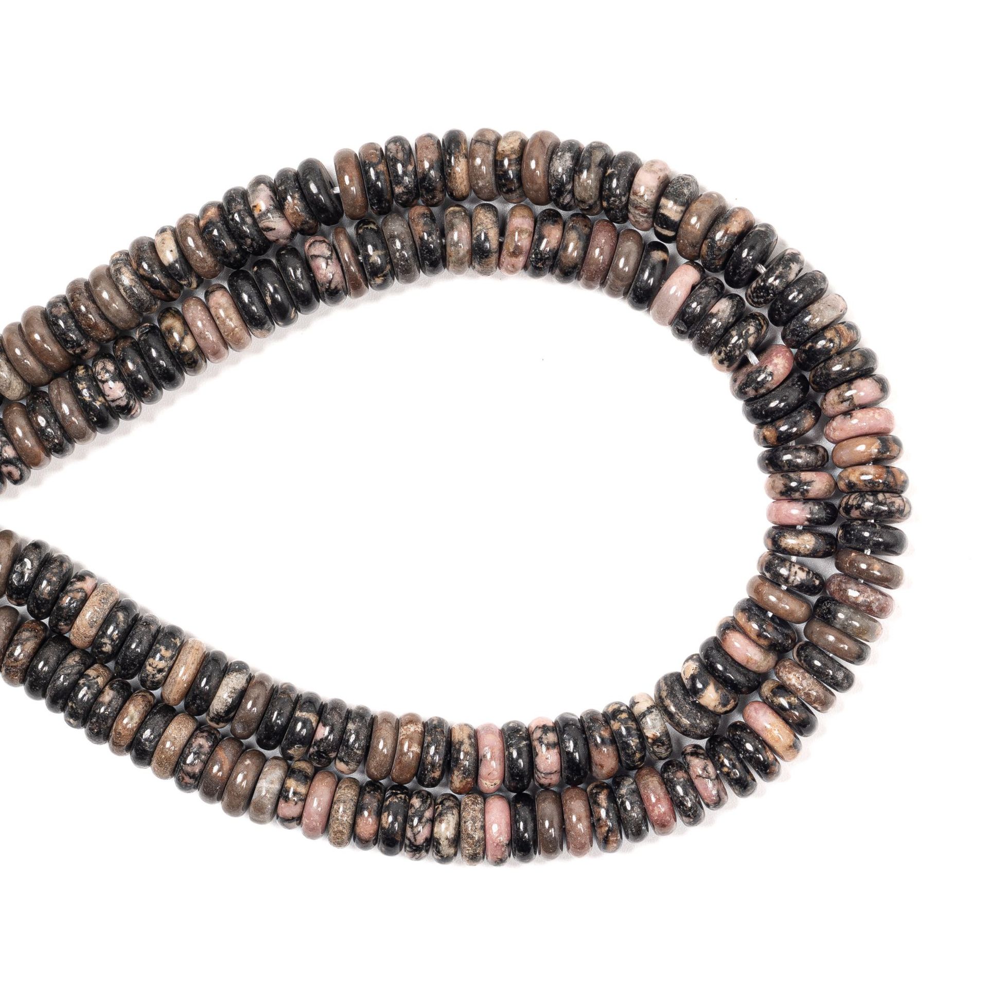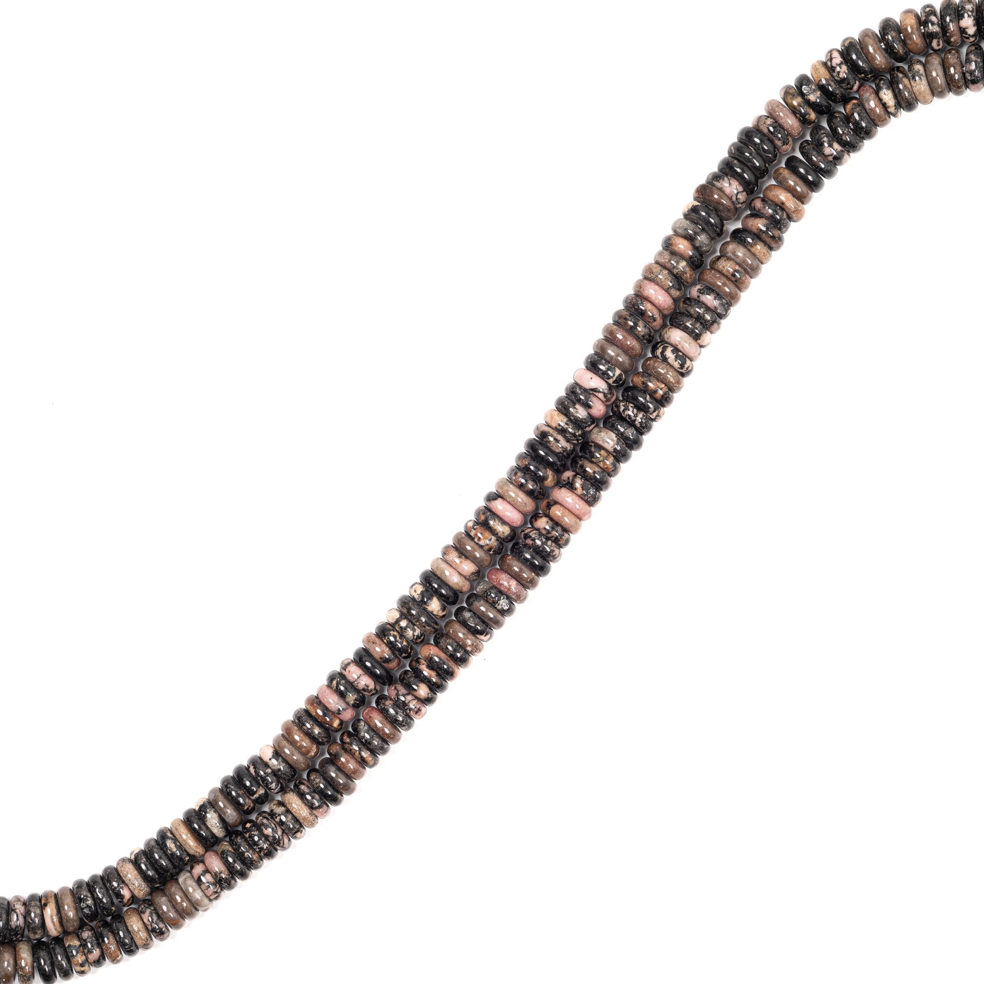 Perline gioielli gemme, Pietra di rodocrosite a strisce nere, Cerchio piatto, DIY, colori misti, 2x6mm, Venduto per Appross. 38 cm filo