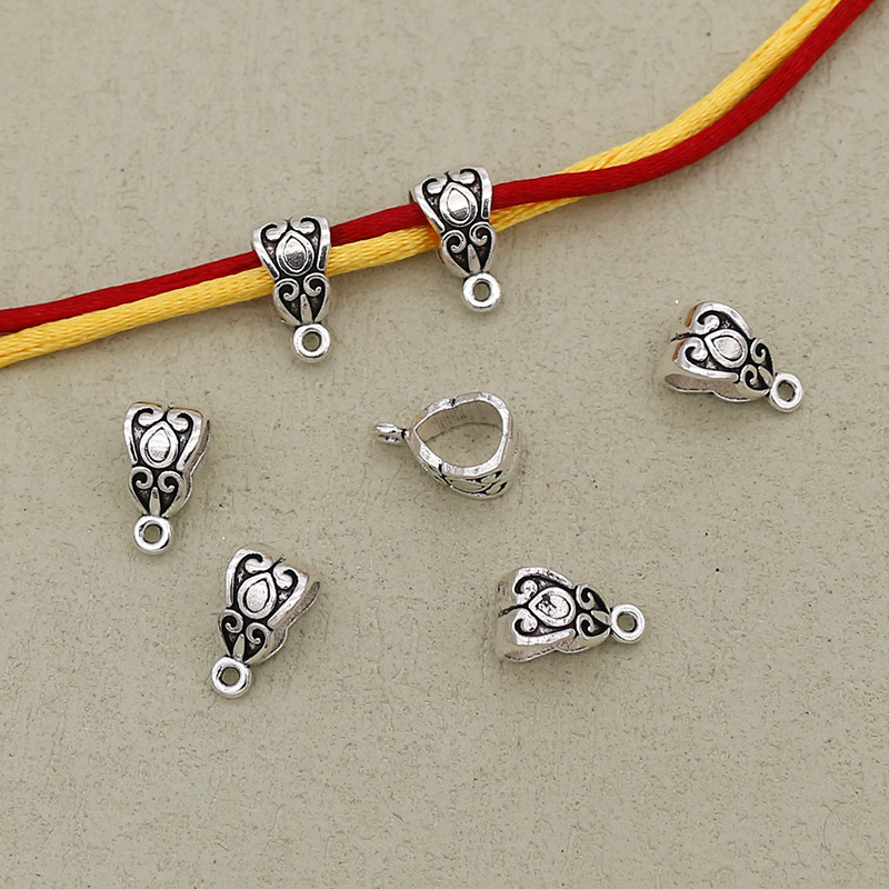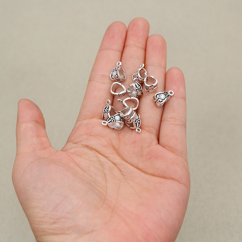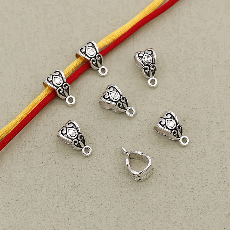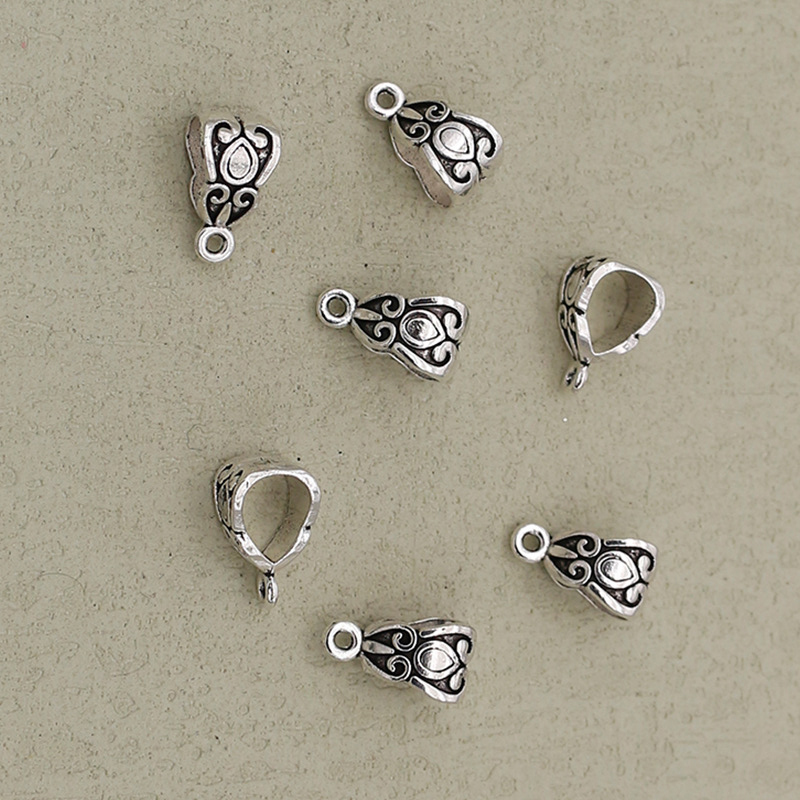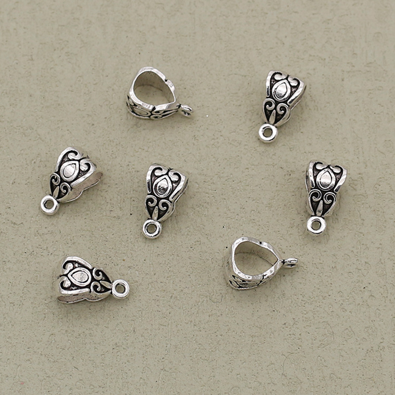 Lo zinco in lega Bail perline, lega in zinco, placcato color argento, DIY, argento, assenza di nichel,piombo&cadmio, 13x7mm, Foro:Appross. 6mm, Venduto da PC