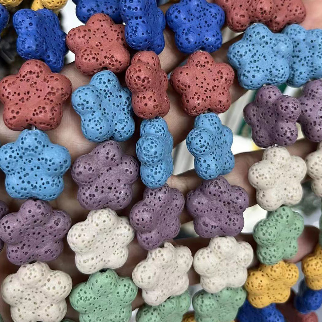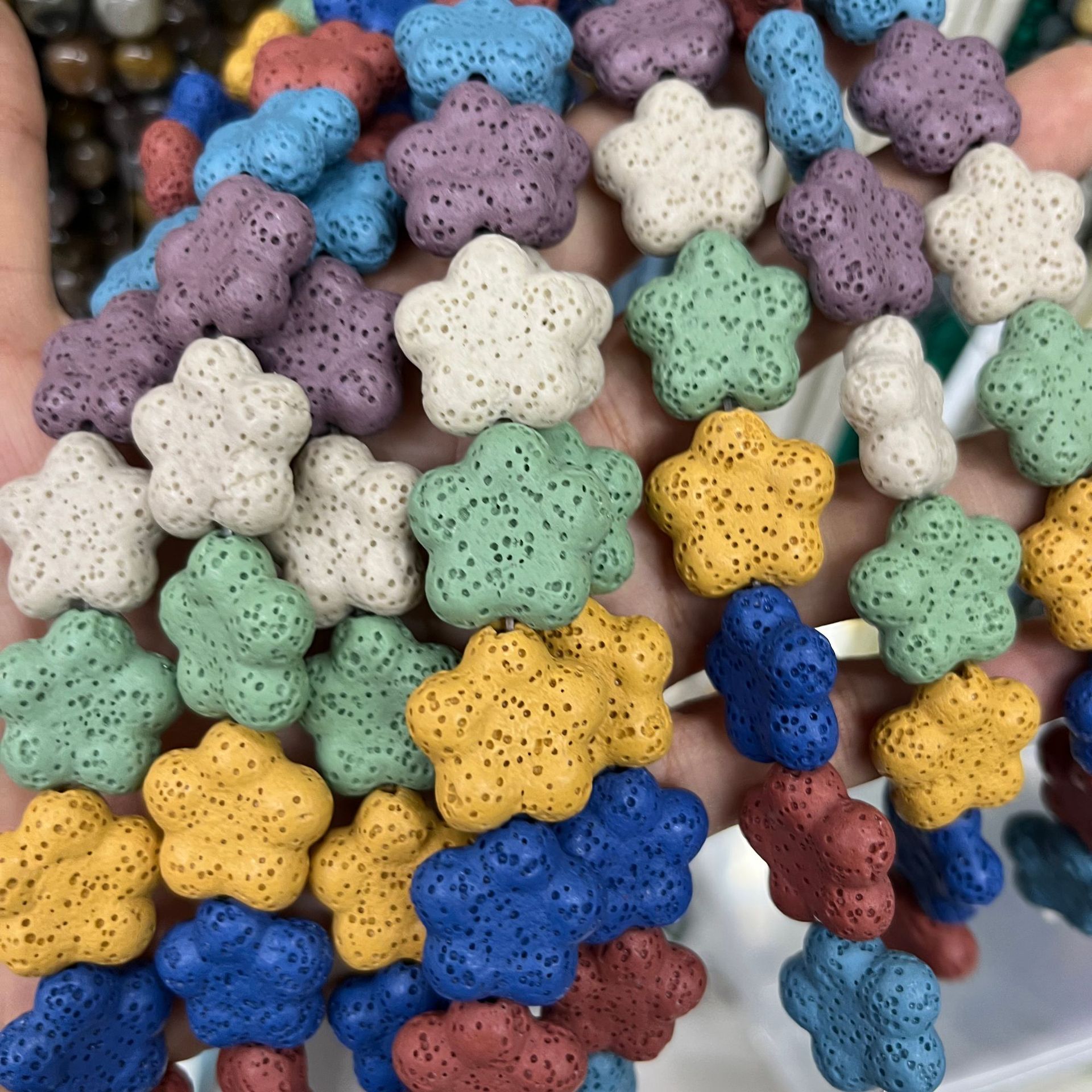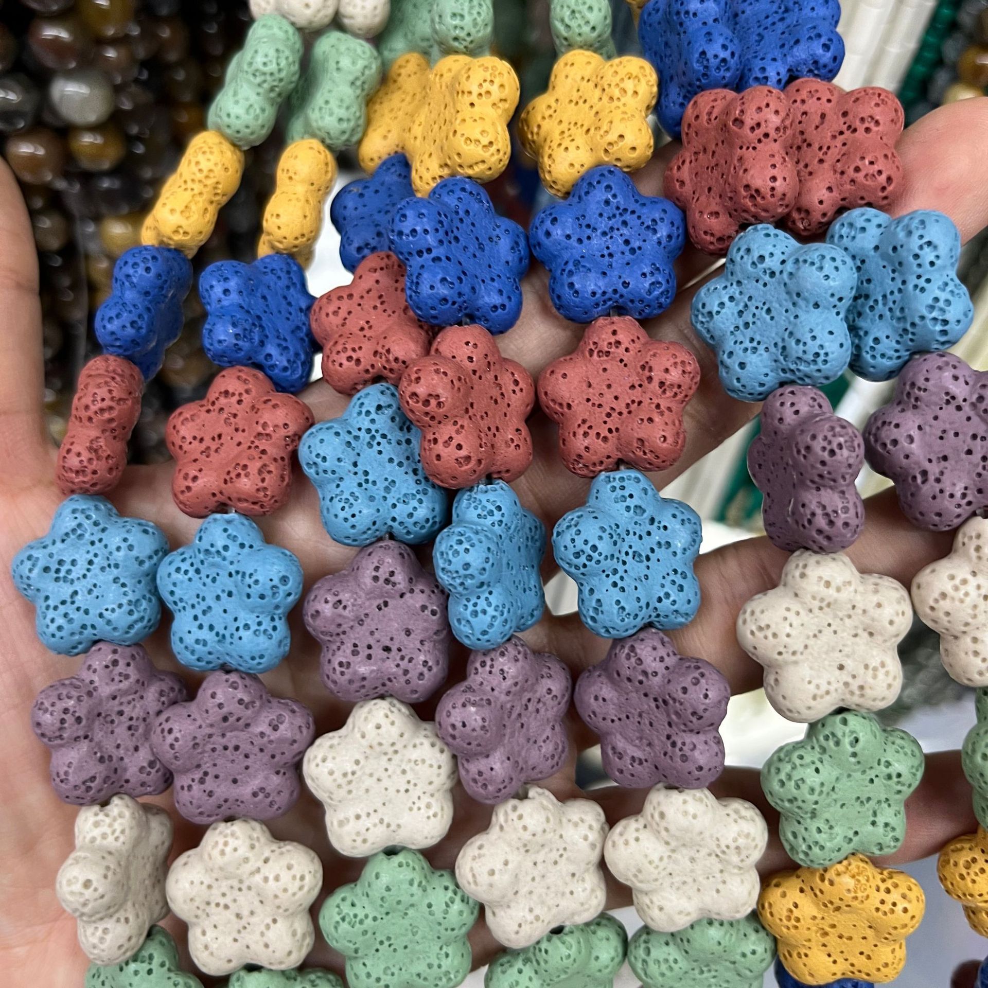 Perline lava naturale, Fiore, DIY, multi-colore, 19mm, Venduto per Appross. 38 cm filo