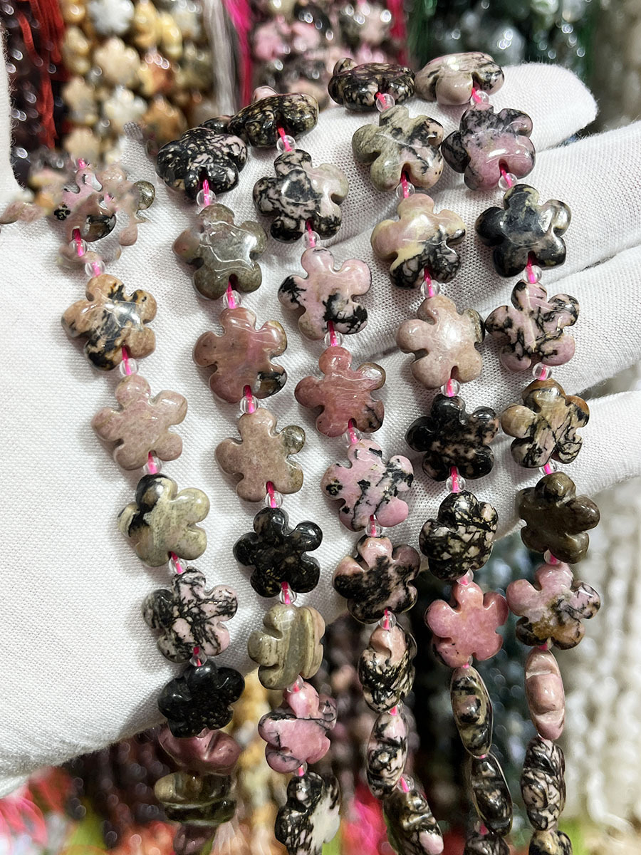Perline Rhodonite, Fiore, DIY, colori misti, 15mm, Venduto per Appross. 38 cm filo
