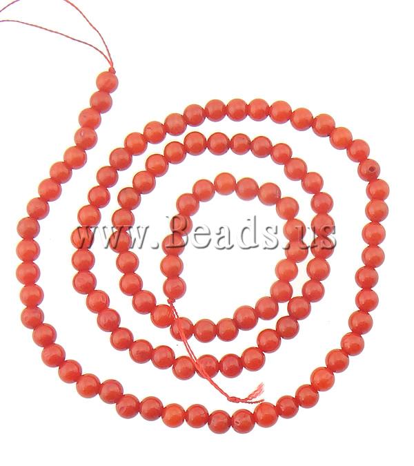 Perline di coralli naturale, Cerchio, arancione rossastro, 4mm, Foro:Appross. 0.5mm, Lunghezza Appross. 15.5 pollice, 10Strandstrefolo/lotto, Appross. 110PC/filo, Venduto da lotto