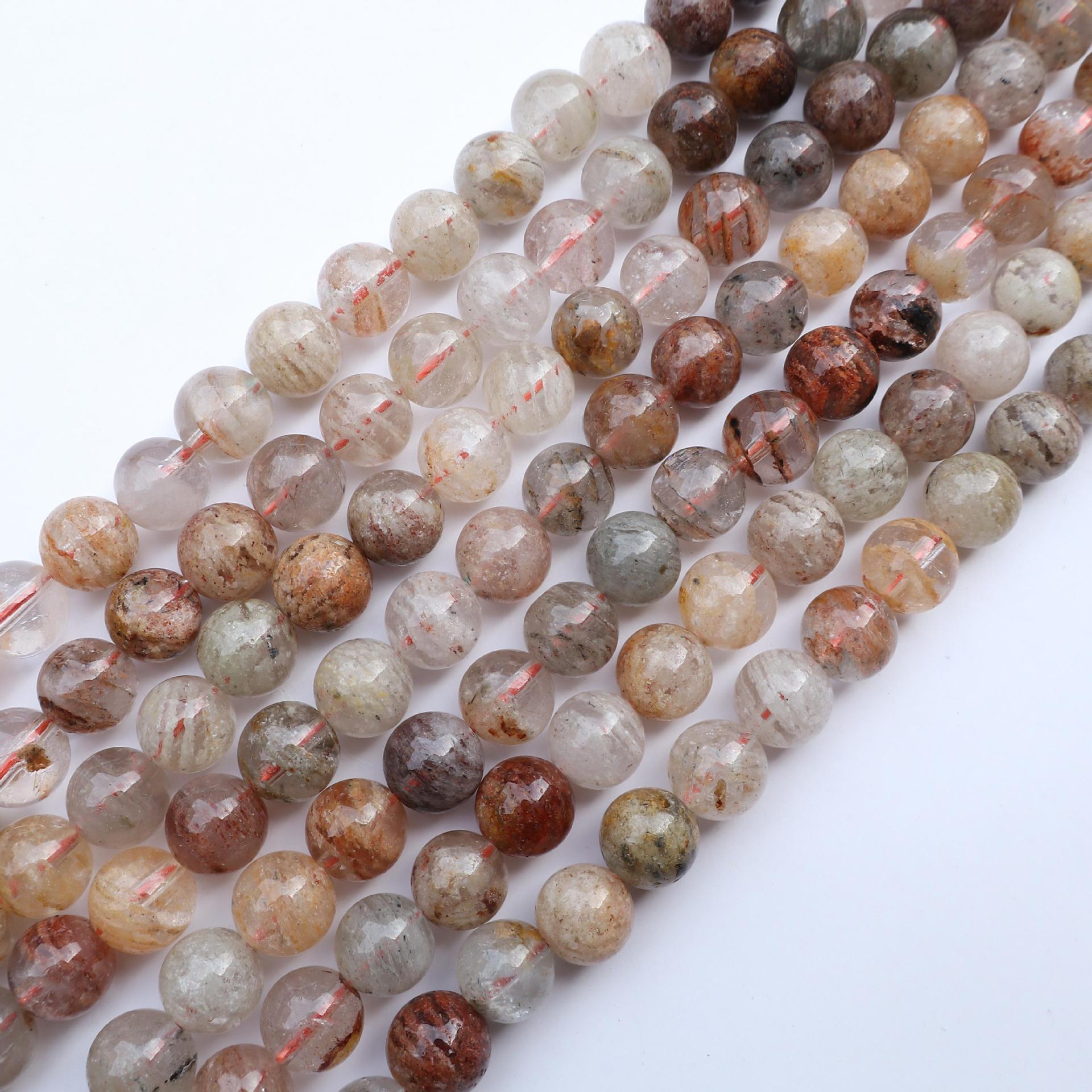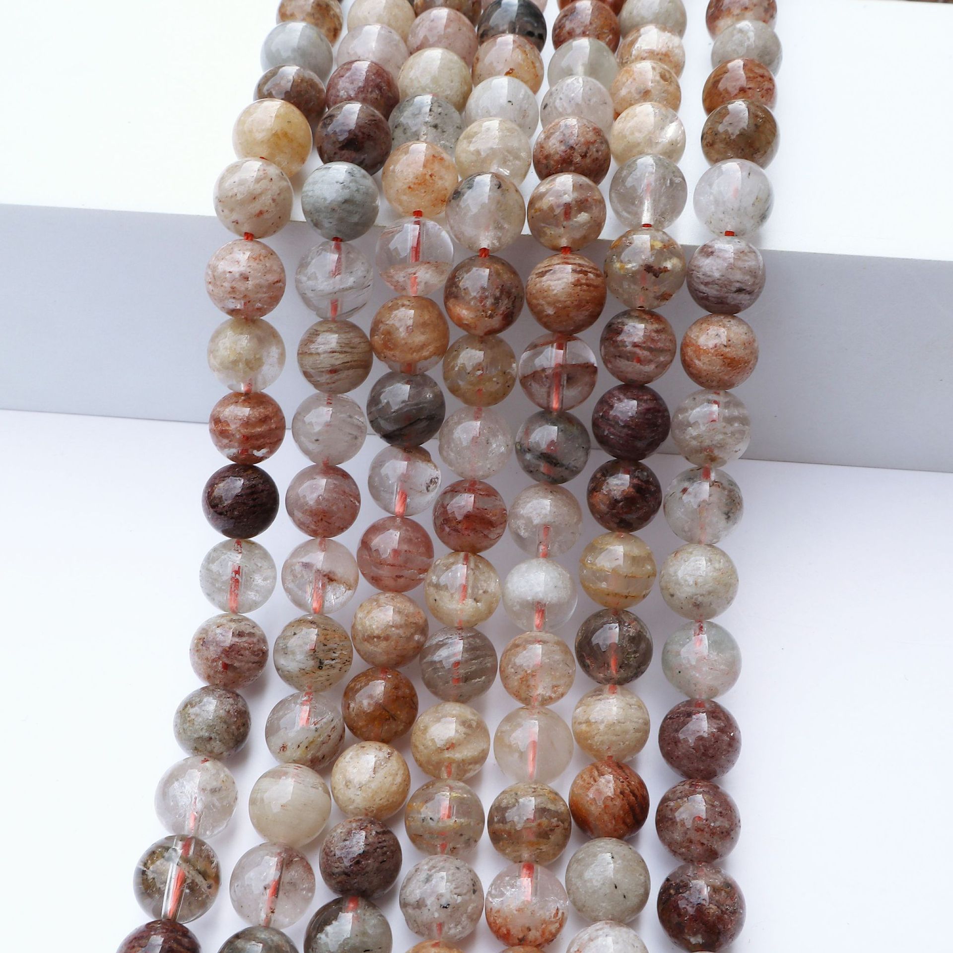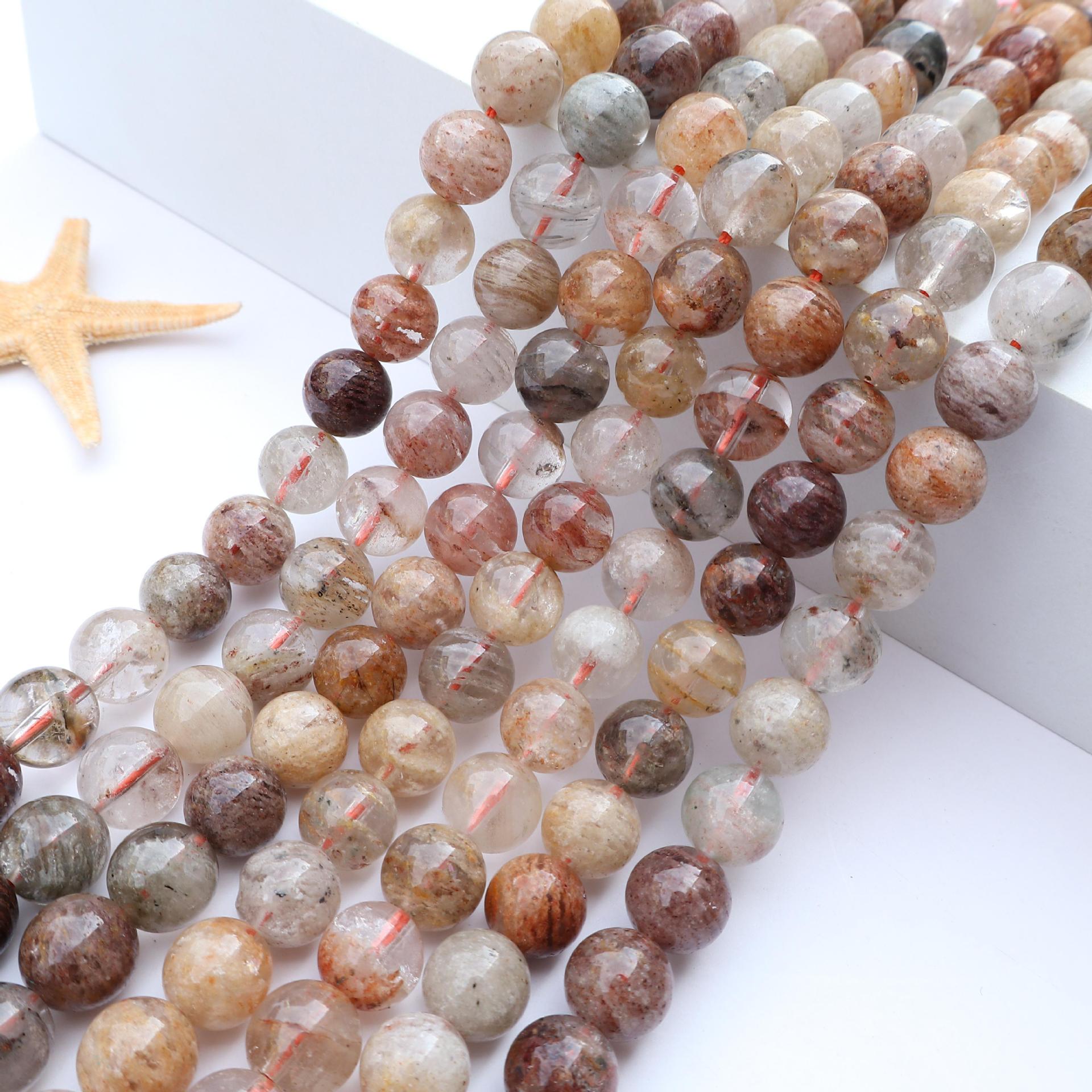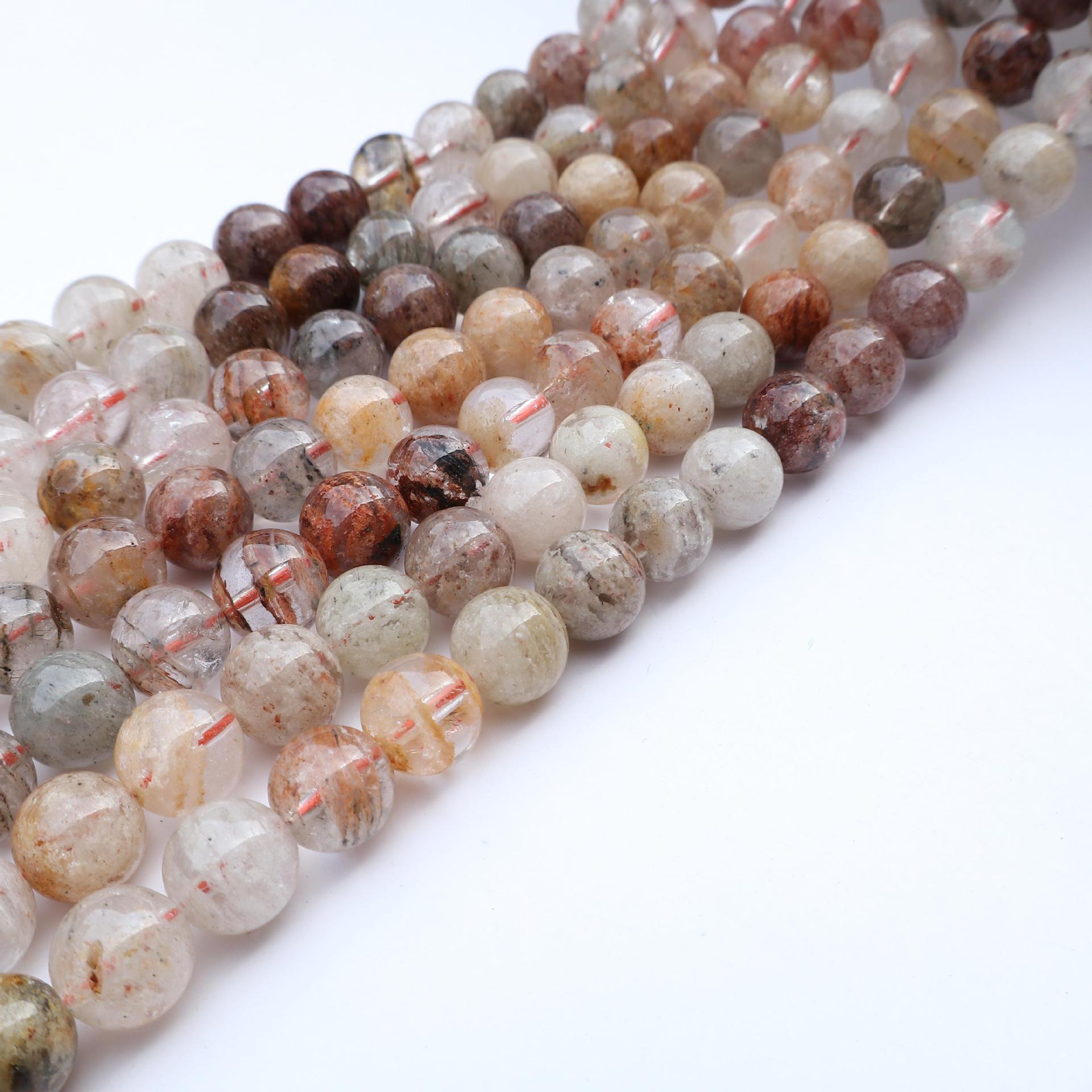 Perline di quarzo naturale, quarzo fantasma, DIY, colori misti, Venduto per 38 cm filo