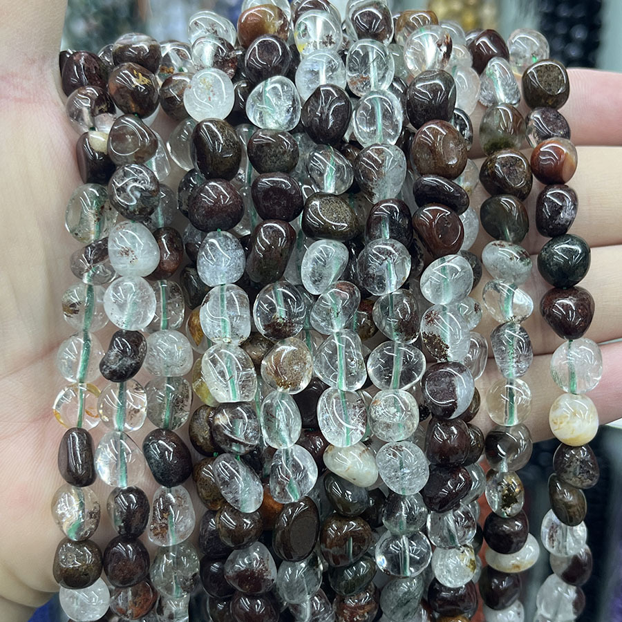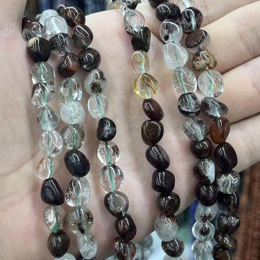 Perline di quarzo naturale, Quarzo fantasma verde, DIY, colori misti, 6-9mm, Venduto per 38 cm filo