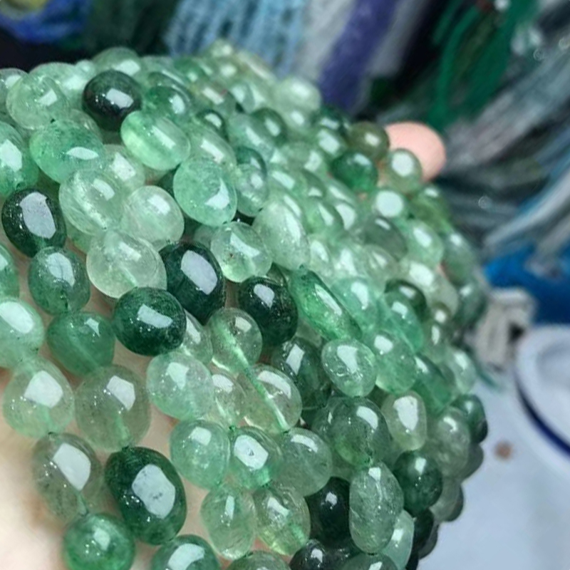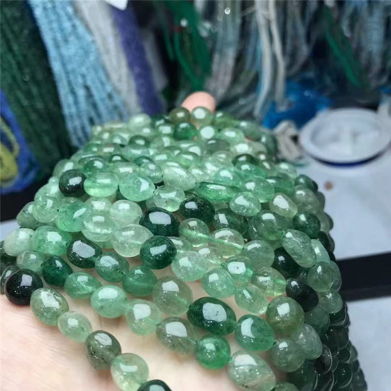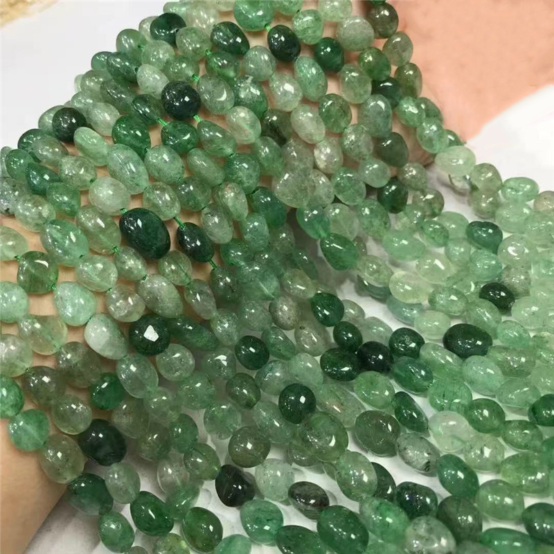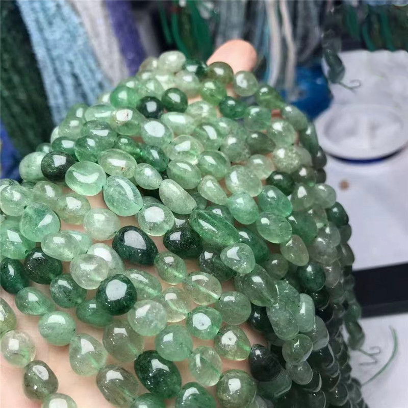 Perline di quarzo naturale, Strawberry Quartz, Pepite, DIY, verde, beads length 9-12mm, Venduto per Appross. 35-40 cm filo