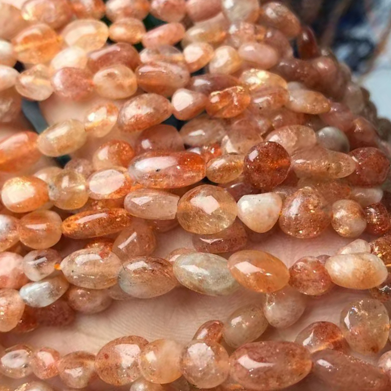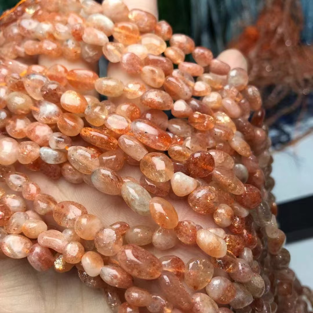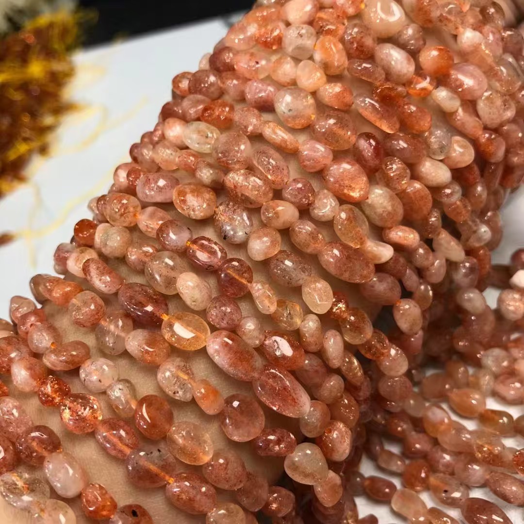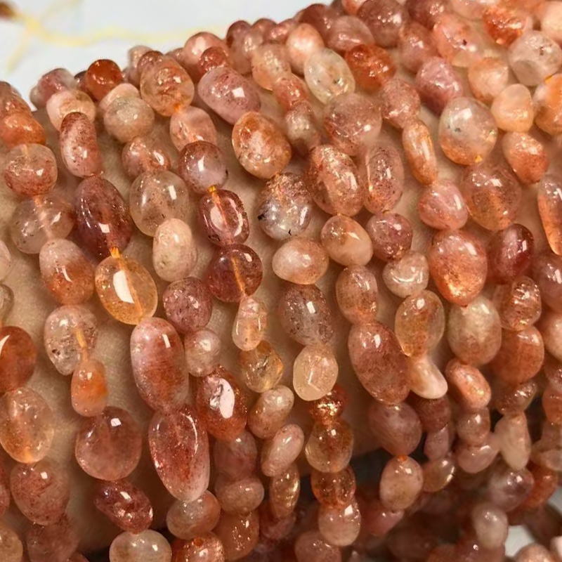 Perline di quarzo naturale, Strawberry Quartz, Pepite, DIY, oro, beads length 8-9mm, Venduto per Appross. 35-40 cm filo