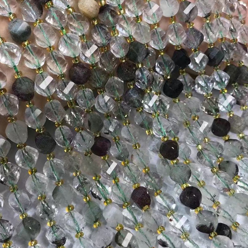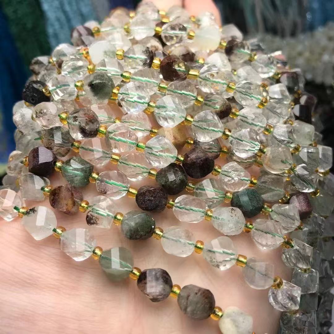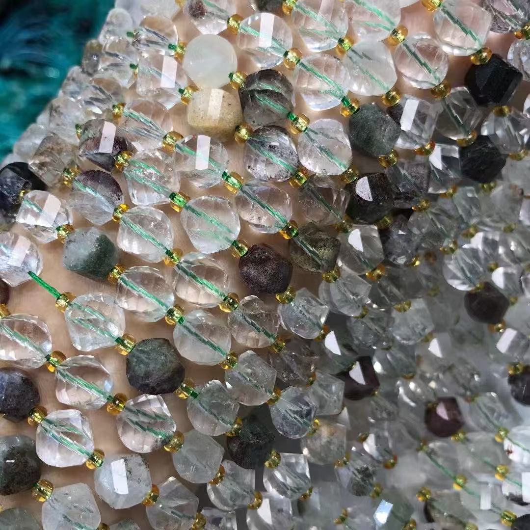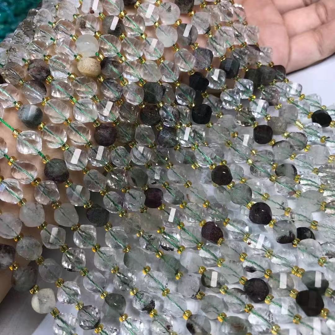 Perline di quarzo naturale, Quarzo fantasma verde, zucca, lucido, DIY & spirale, 7x8mm, Venduto per Appross. 35-40 cm filo