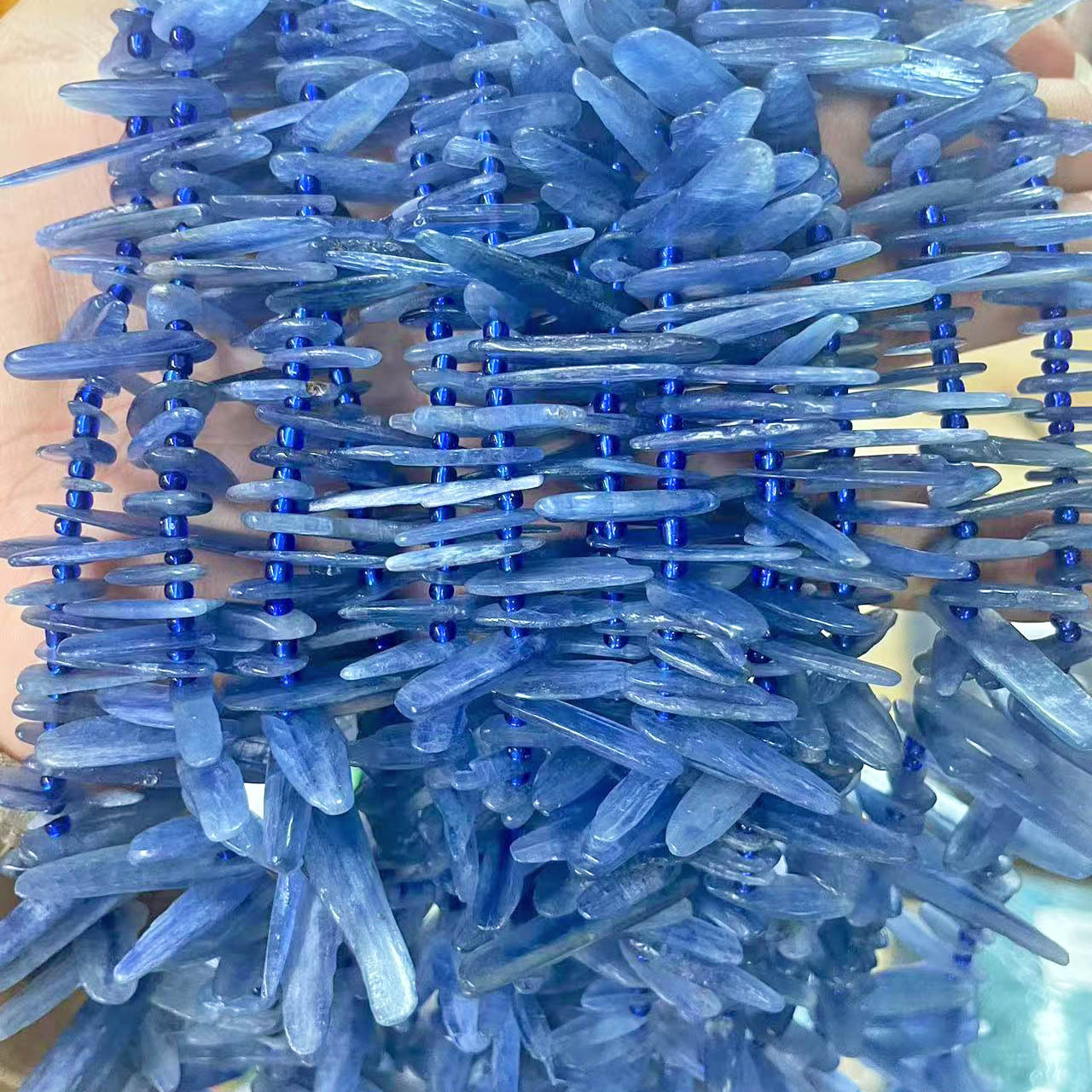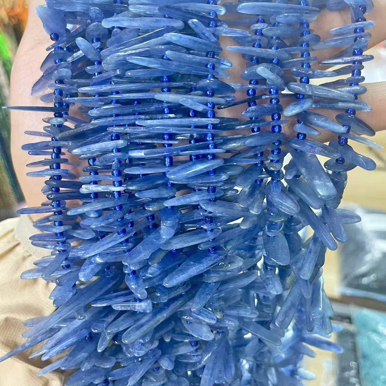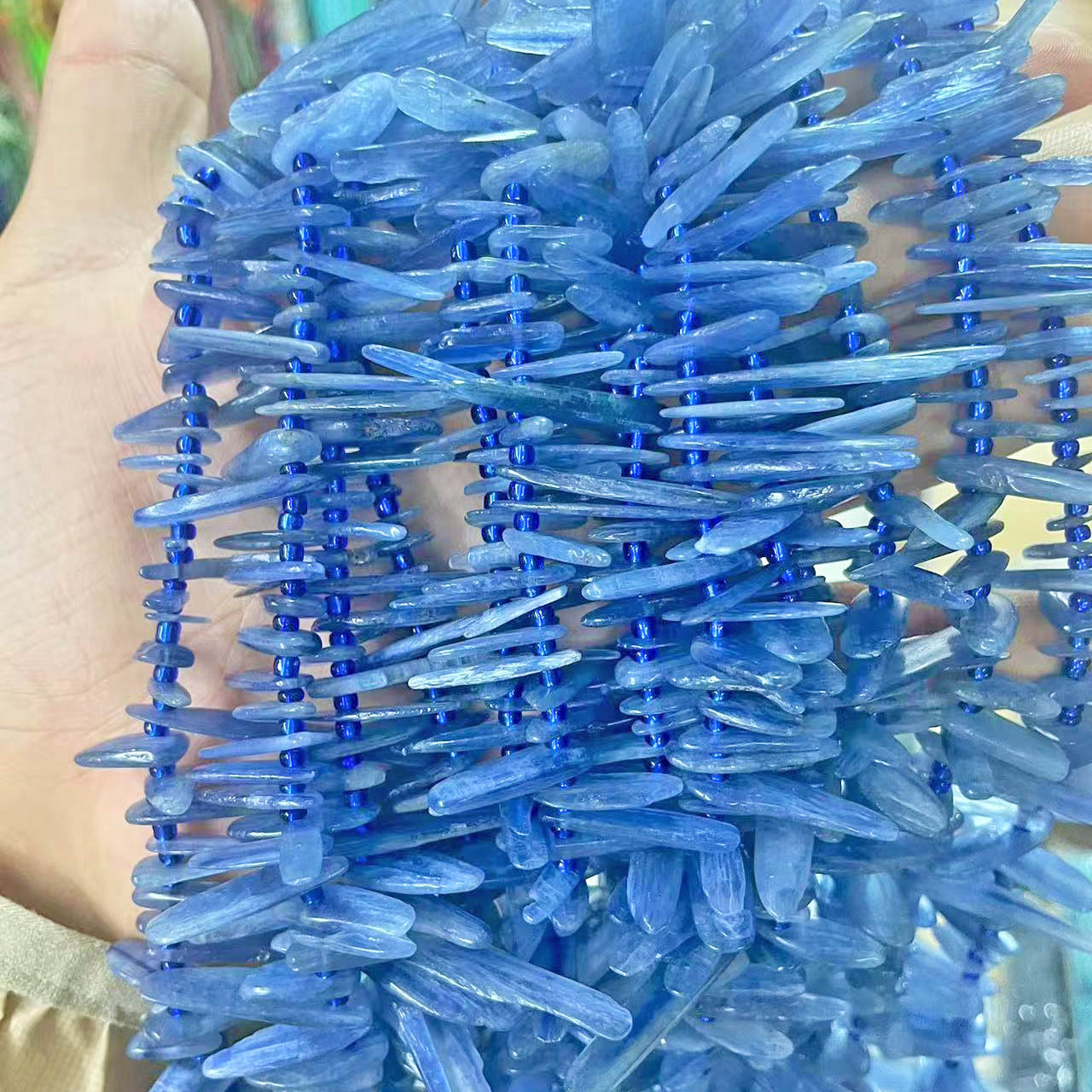 Perline di quarzo naturale, cianite, DIY, blu, 15-30mm, Venduto per 38 cm filo