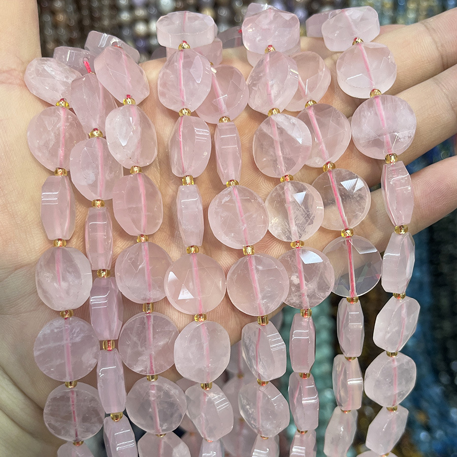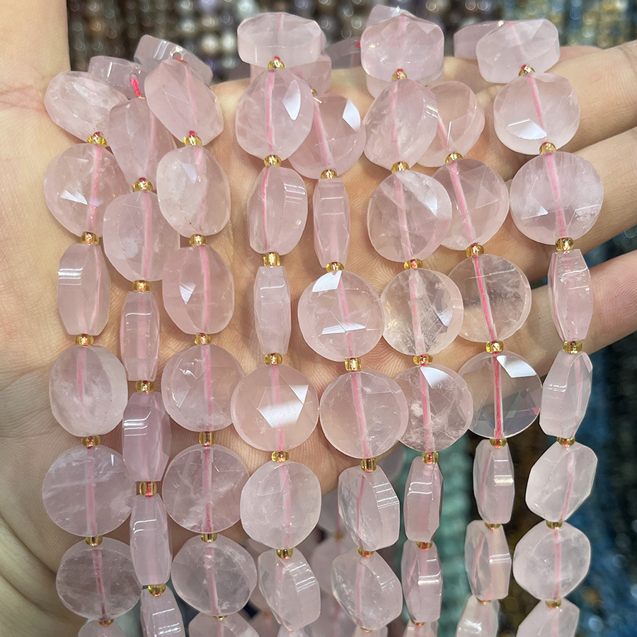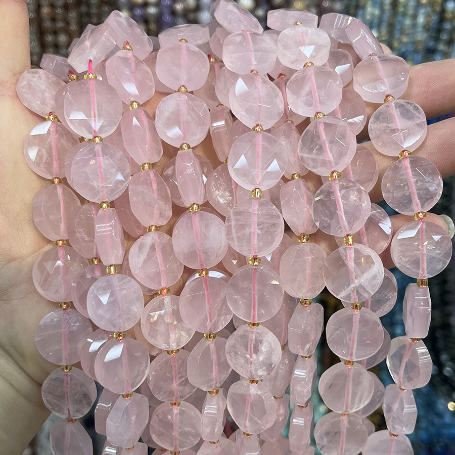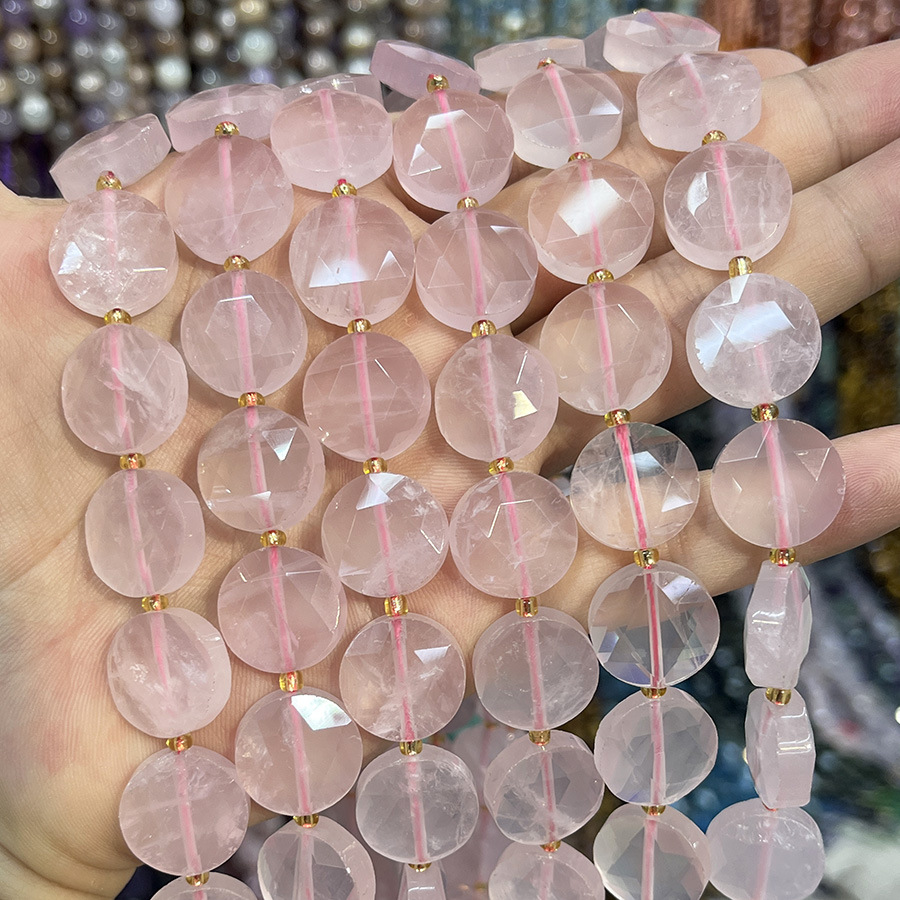 Perline di quarzo rosa naturale, Cerchio piatto, DIY, rosa, 15mm, Venduto per 38 cm filo