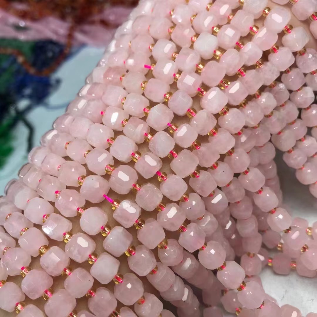 Perline di quarzo rosa naturale, Quadrato, DIY, 7x7mm, Venduto per Appross. 35-40 cm filo