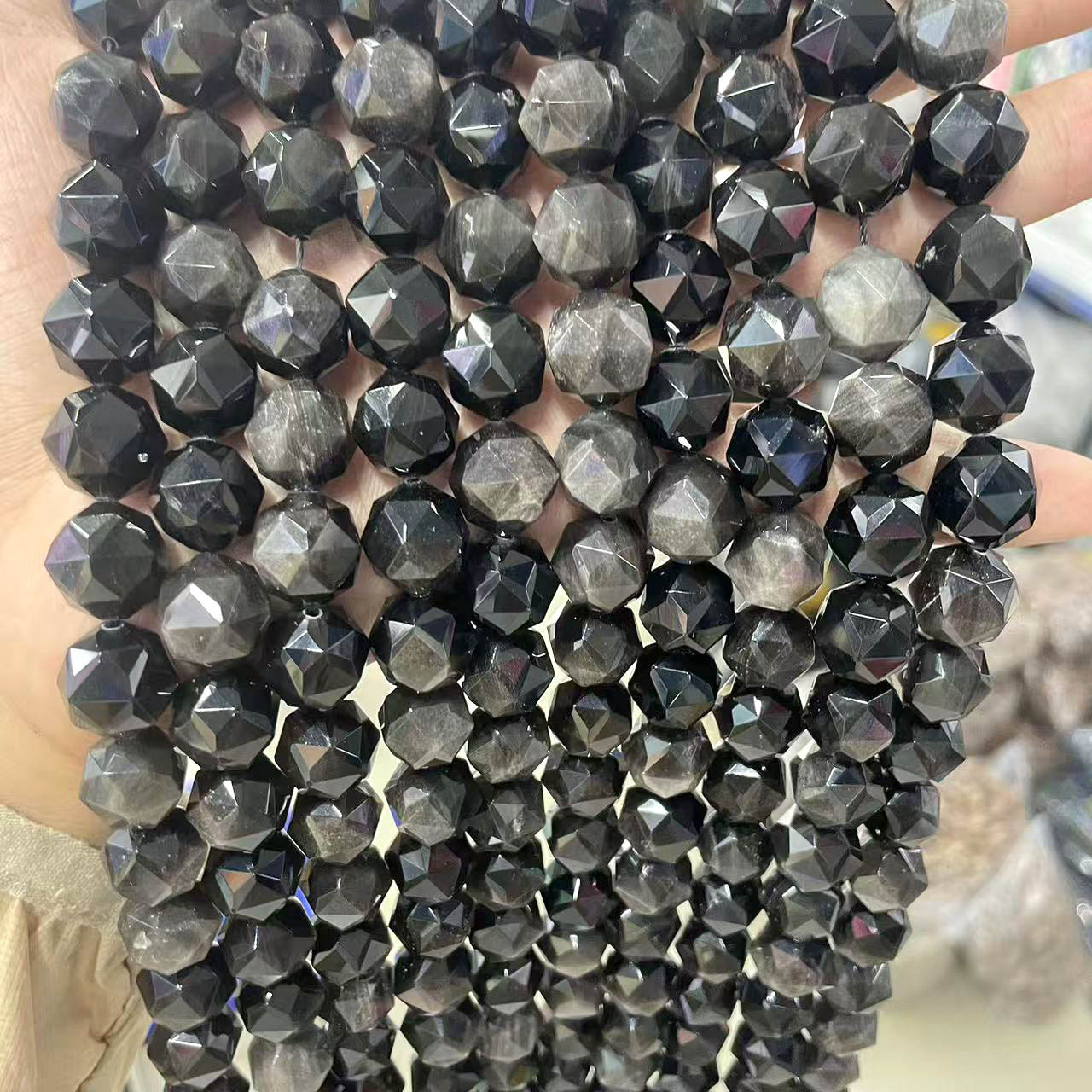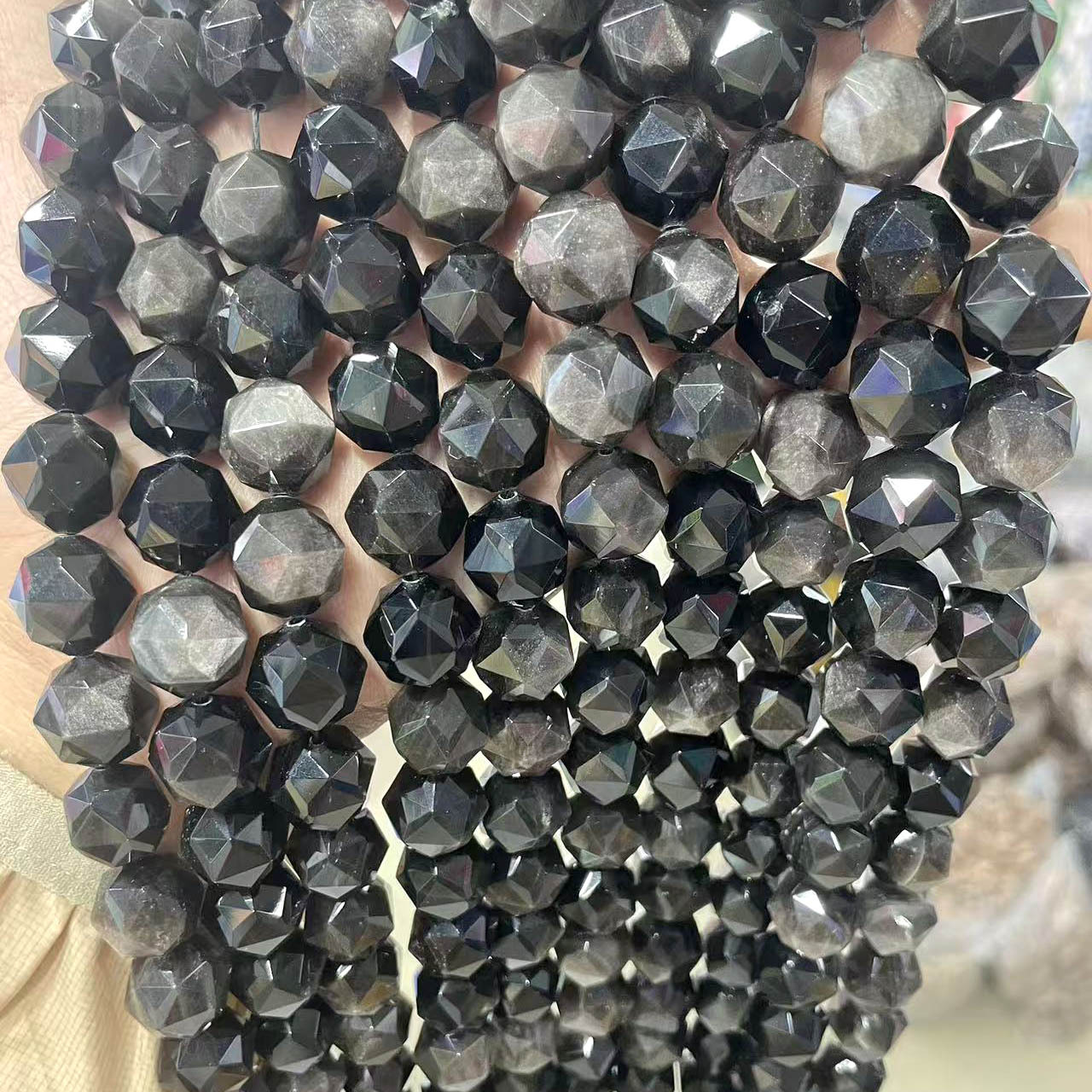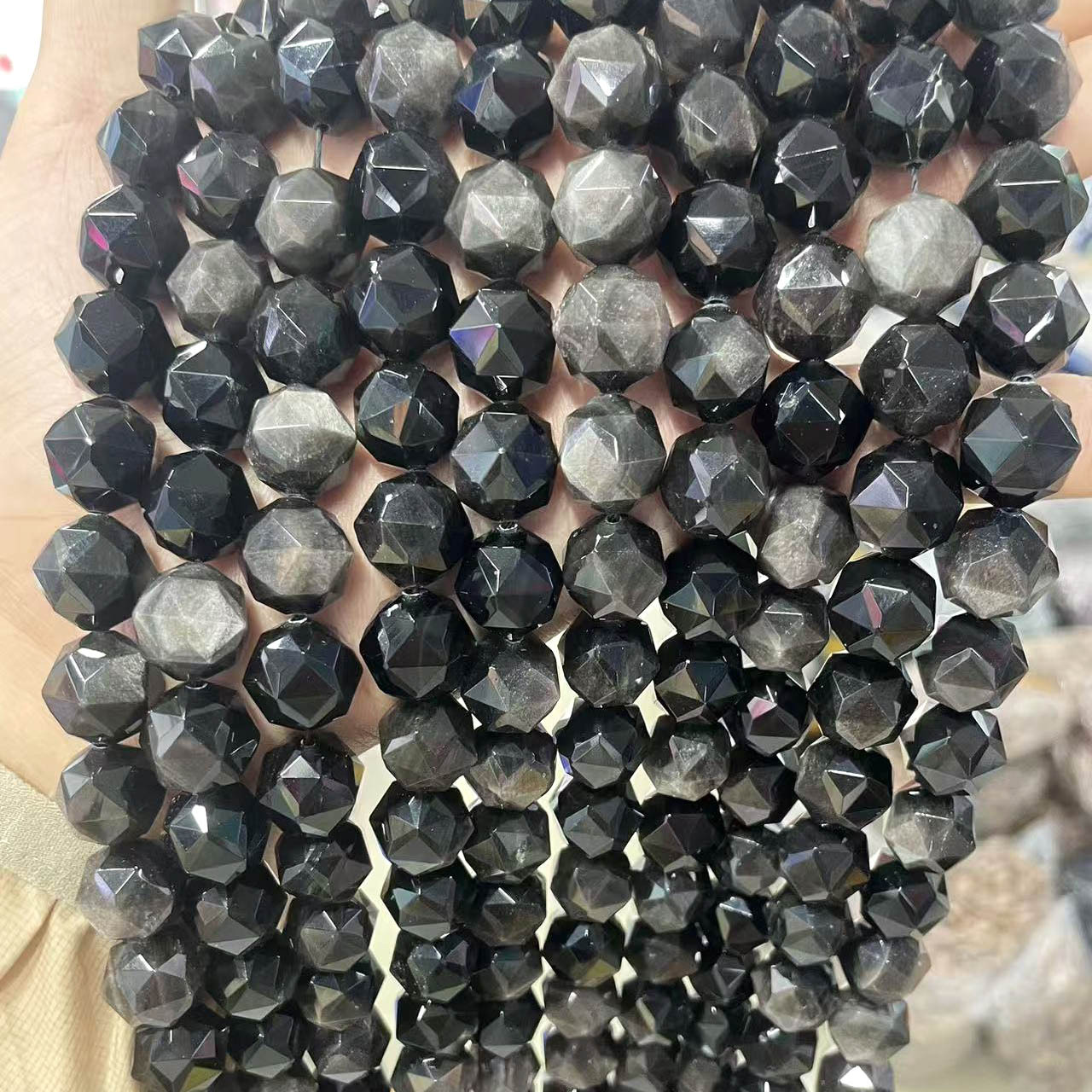 Perline gioielli gemme, Argento-Ossidiana, DIY, colori misti, 12mm, Venduto per 38 cm filo