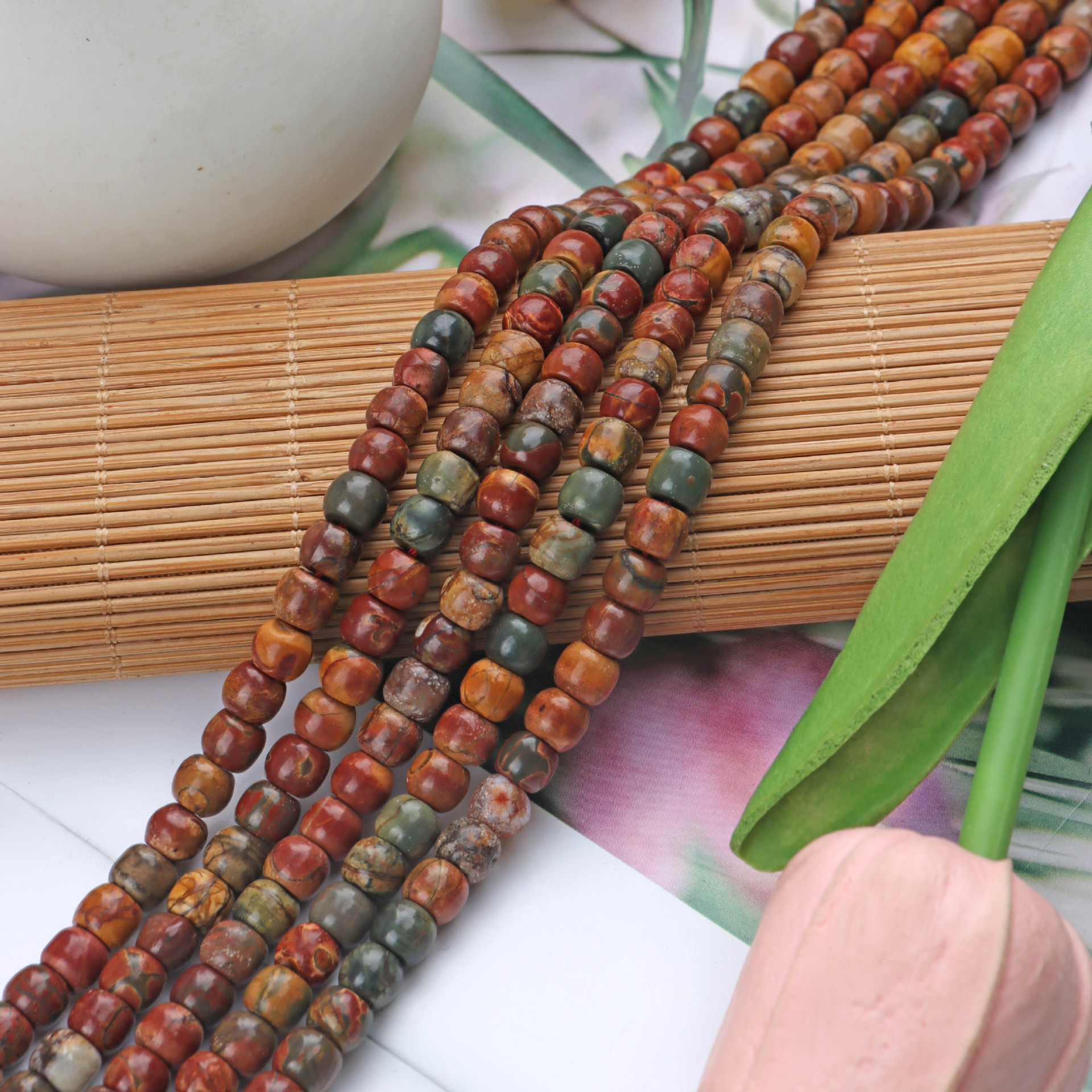 Perline gioielli gemme, diaspro Picasso, DIY, colori misti, 5x6mm, Venduto per 38 cm filo