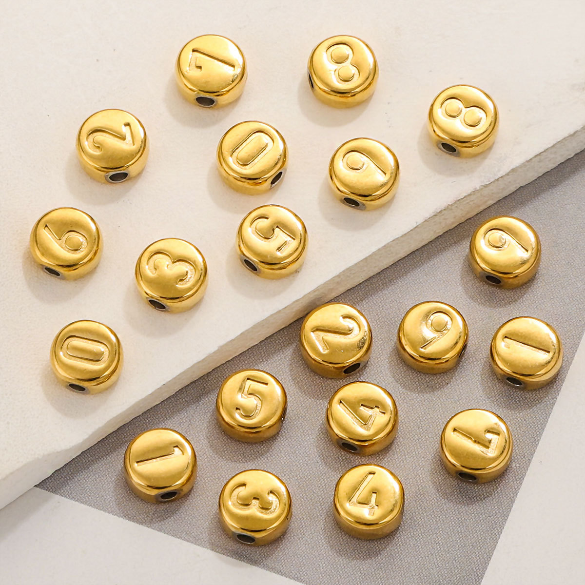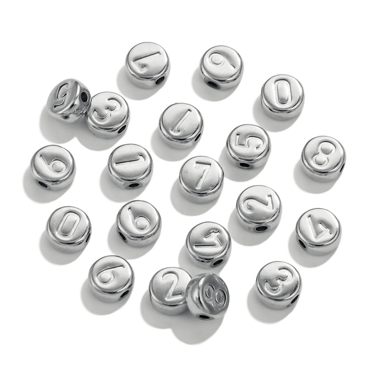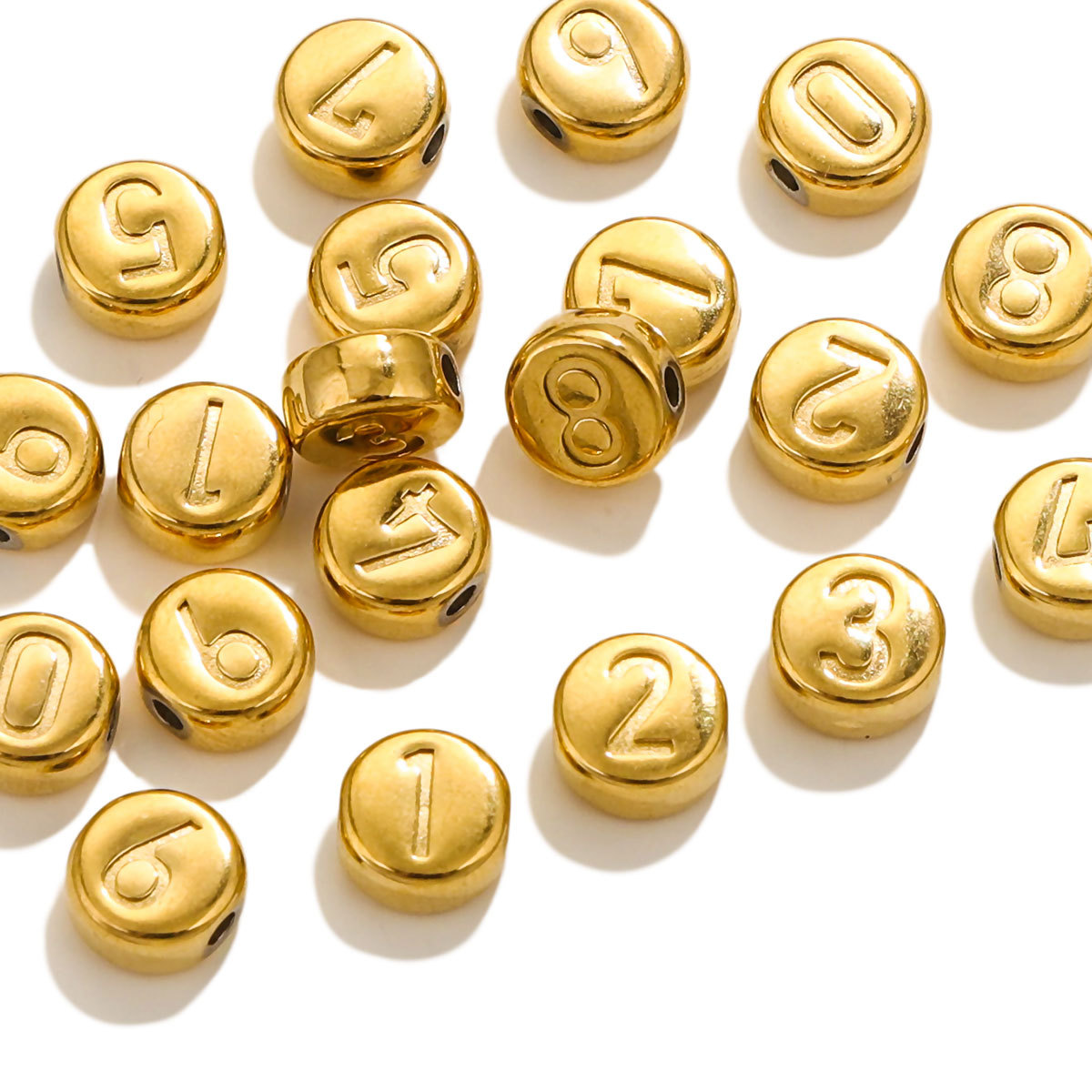 Perline in acciaio inox, 304 acciaio inox, Cerchio piatto, placcato, DIY & con il modello del numero & stili diversi per la scelta, nessuno, 7mm, Foro:Appross. 1mm, 10PC/borsa, Venduto da borsa