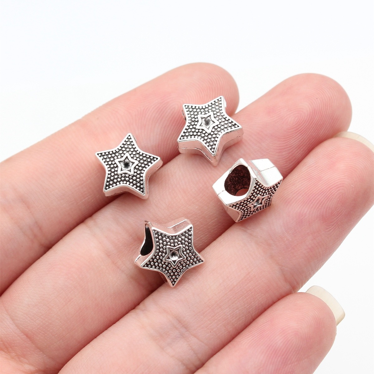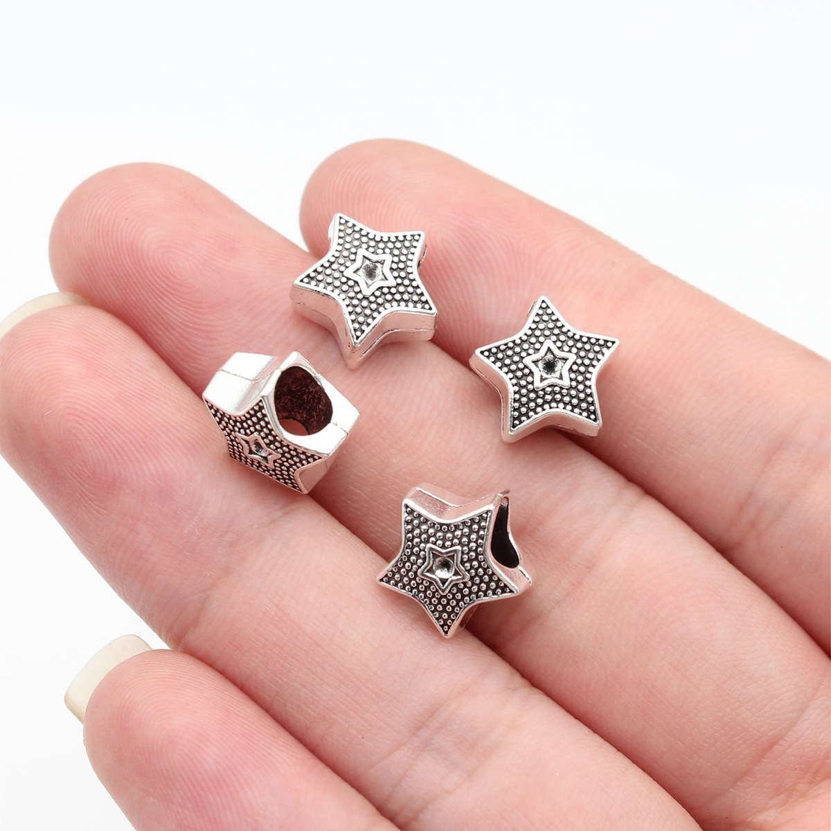 Perline in lega di zinco, lega in zinco, Stella, placcato, DIY, 11x11x6.90mm, Foro:Appross. 4.7mm, 10PC/borsa, Venduto da borsa