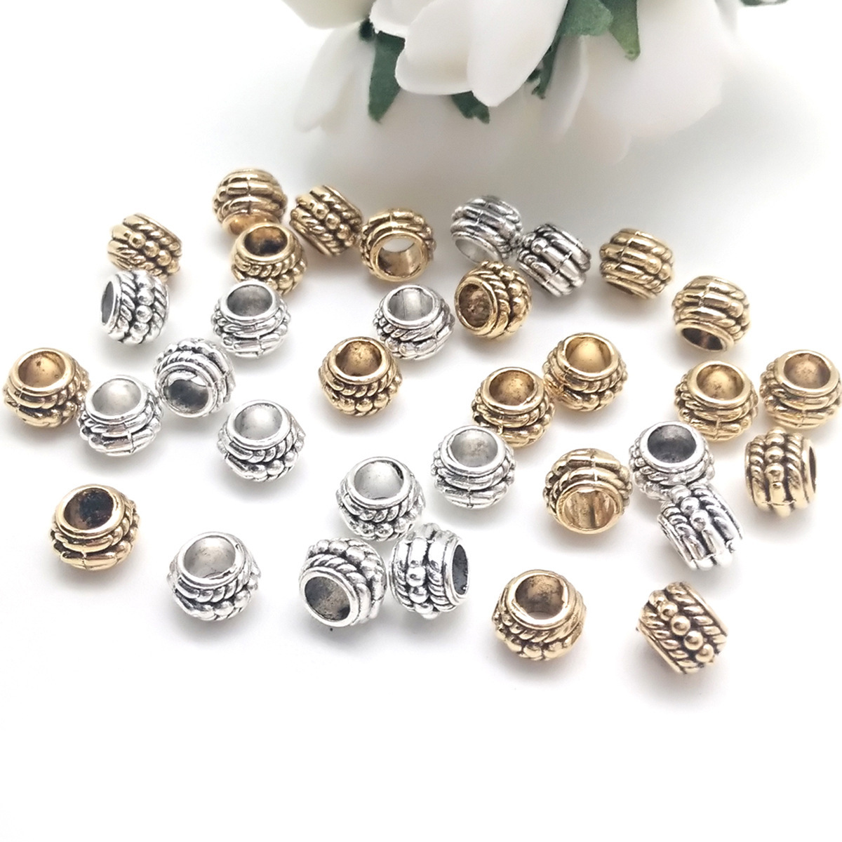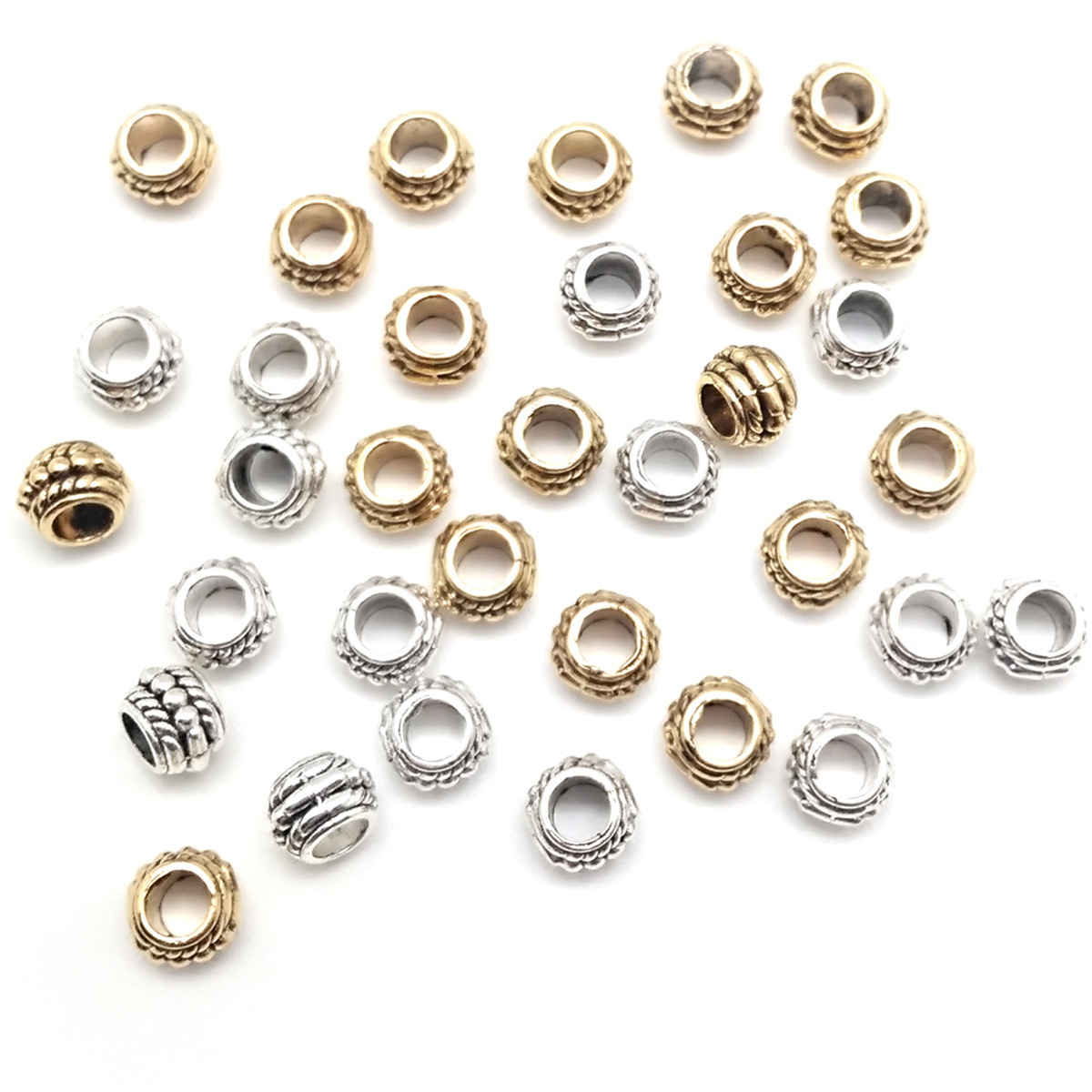 Perline in lega di zinco, lega in zinco, placcato, DIY, nessuno, assenza di nichel,piombo&cadmio, 7.50x7.50mm, Foro:Appross. 2mm, Appross. 100PC/borsa, Venduto da borsa