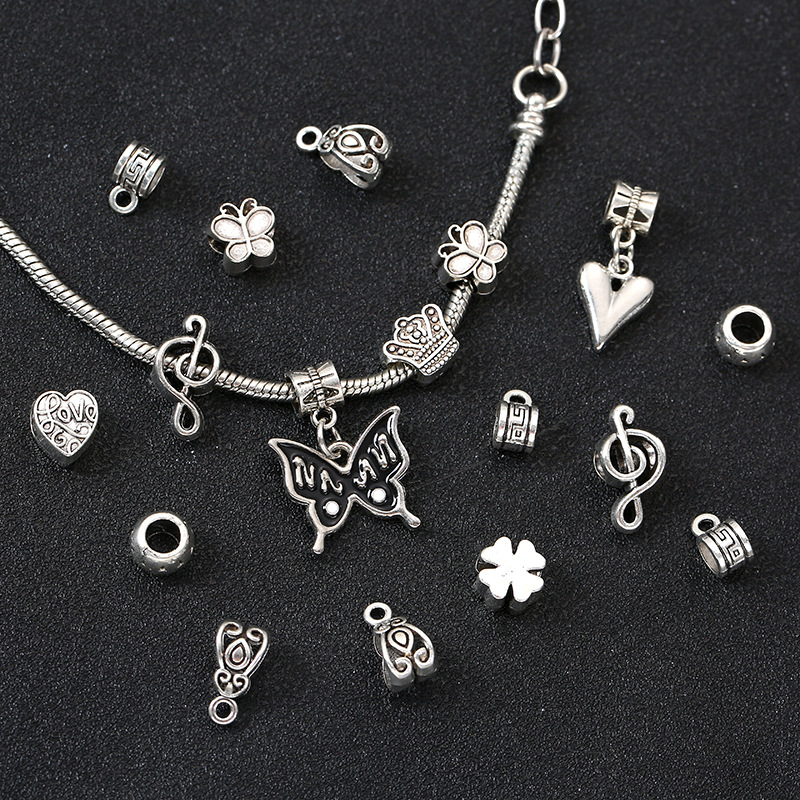 1:Heart (approximate length: 1cm width: 0.9cm hole diameter: 0.5cm)2:Casual pattern (approximately length: 1.2cm width: 0.6cm hole diameter: 0.3cm)3:Straight hole pattern (approximately length: 0.9cm width: 0.6cm aperture: 0.3cm)4:Butterfly (approximately length: 0.9cm width: 0.9cm aperture: 0.4cm)5:Note (approximately length: 1.8cm width: 0.9cm aperture: 0.45cm)6:Straight hole printing beads (approximately length: 0.6cm width: 0.6cm hole diameter: 0.5cm)7:Four-leaf clover (approximately length: 0.9cm width: 0.9cm hole diameter: 0.4cm)8:Love 2 (approximate length: 2.6cm width: 1.2cm hole diameter: 0.6cm)9:Large butterfly (approximately: 2cm wide: 1.7cm aperture: 0.6cm)10:Bracelet (approximate total length: 21cm)