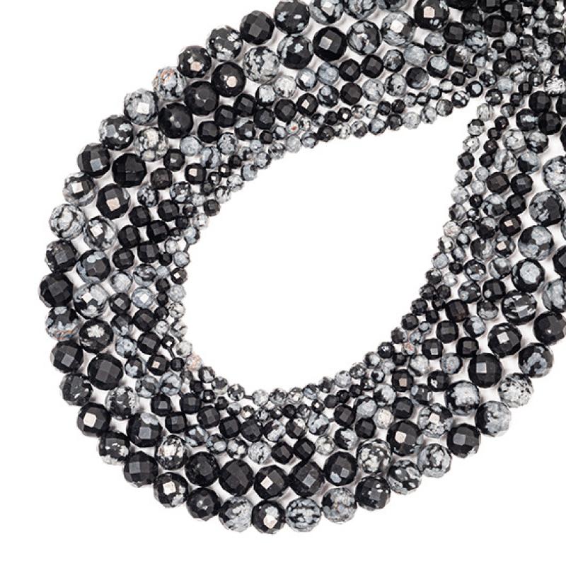 Perline in ossidiana a fiocco di neve, ossidiana fiocco di neve, DIY & formato differente per scelta & sfaccettati, bianco e nero, Venduto da filo