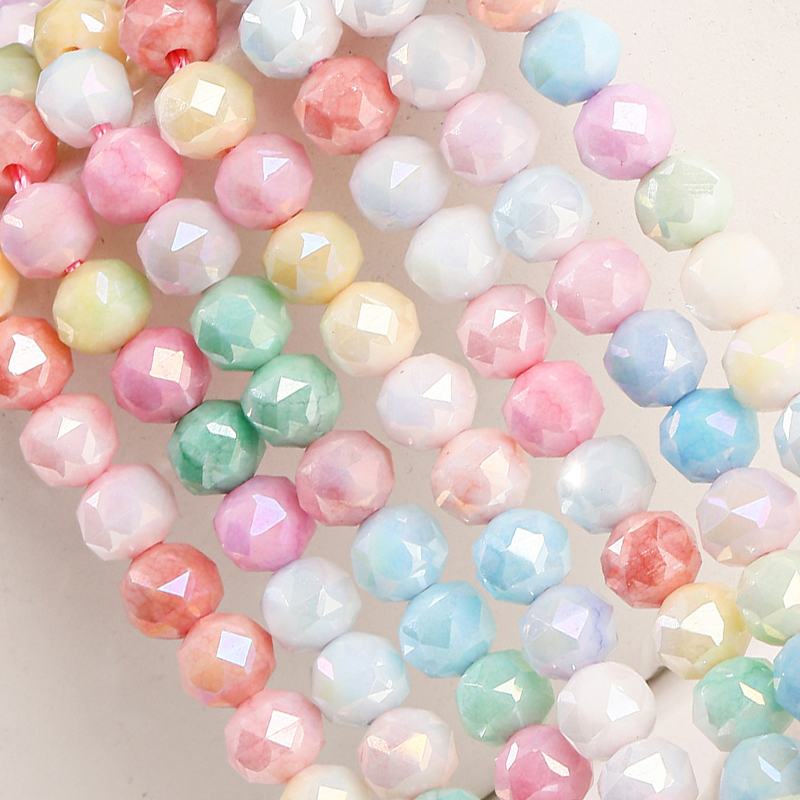 Perline in vetro alla moda, Rondella, placcato, DIY & sfaccettati, multi-colore, 8x5mm, Appross. 68PC/filo, Venduto da filo