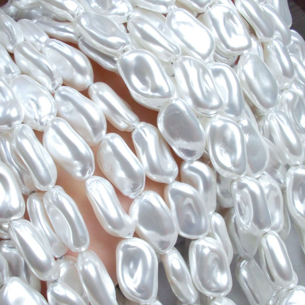 Perline in vetro, perla in vetro, barocco, DIY, bianco, 20x12x7mm, 7PC/borsa, Venduto da borsa