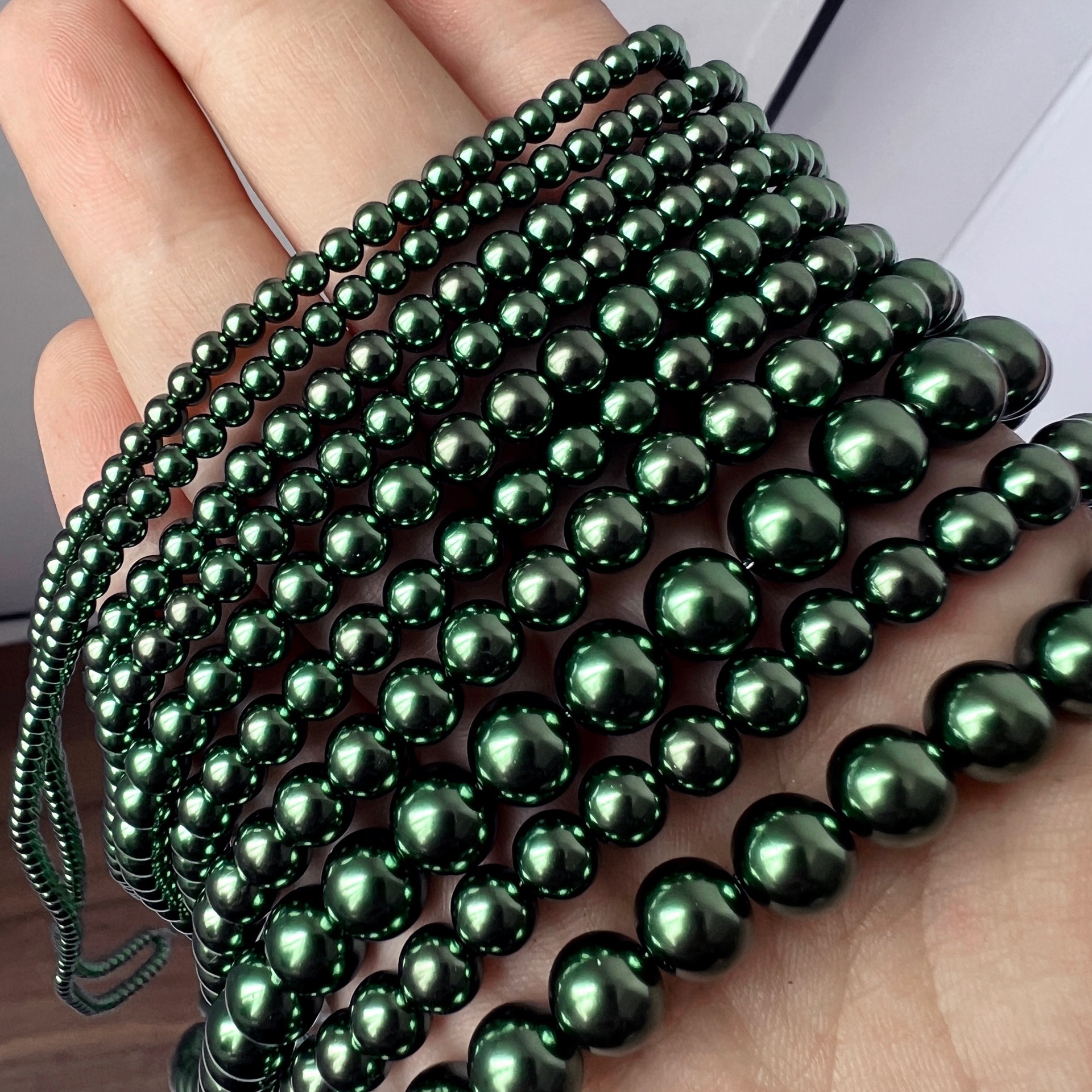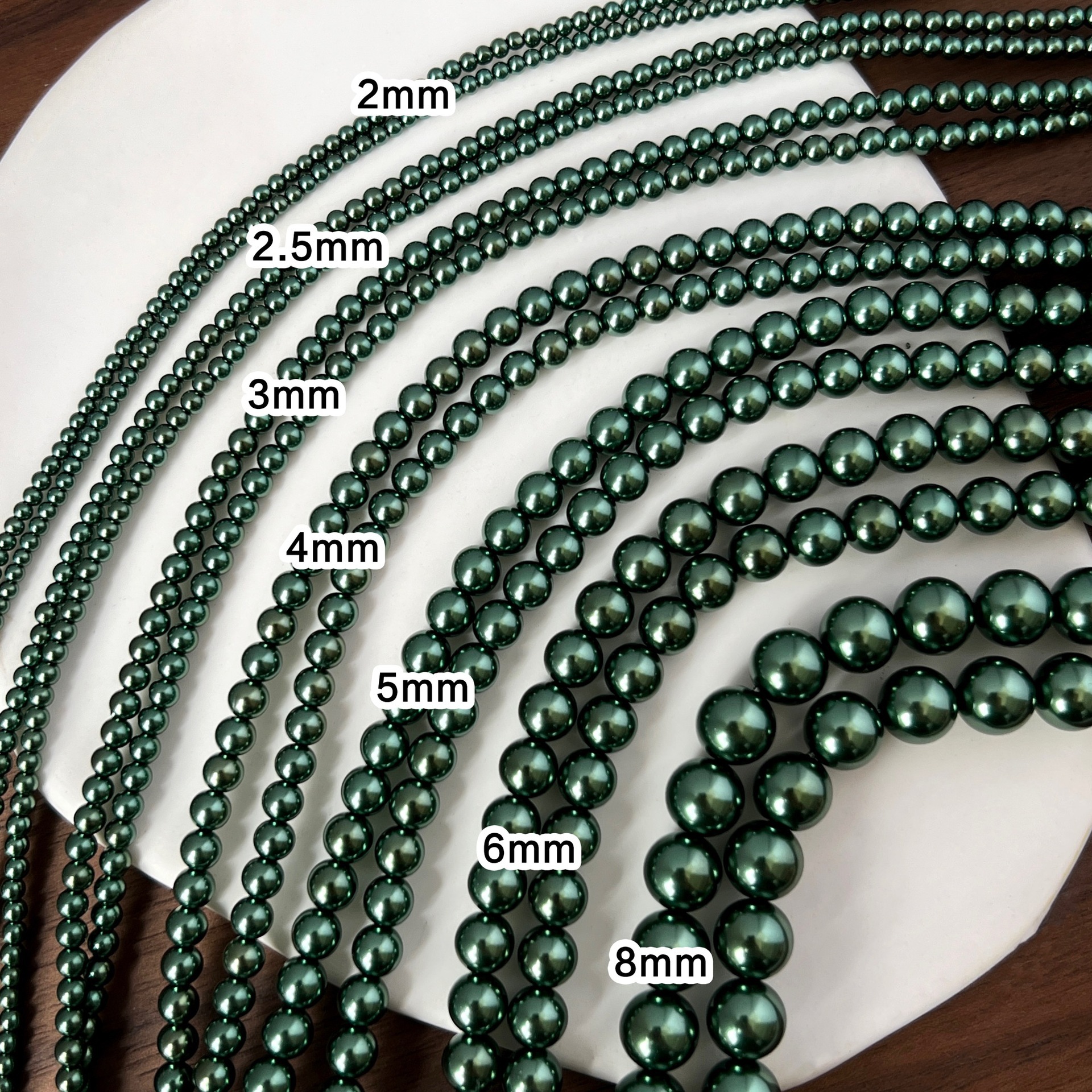 Perline in vetro, perla in vetro, placcato color oro, DIY, verde oliva, 2-10mm, Venduto da filo