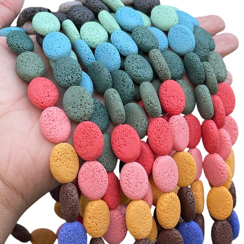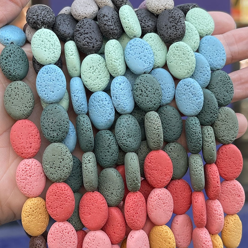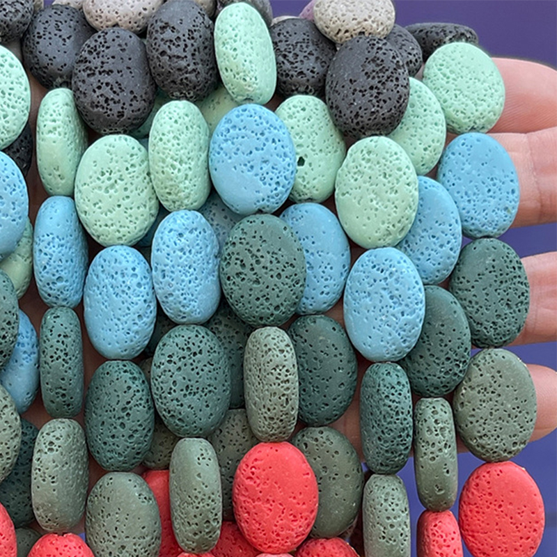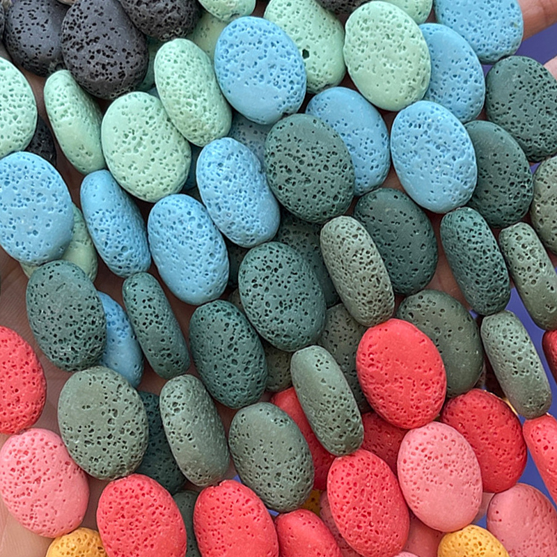 Perline lava naturale, Ovale piatto, DIY, multi-colore, 17x13.50mm, Appross. 22PC/filo, Venduto da filo