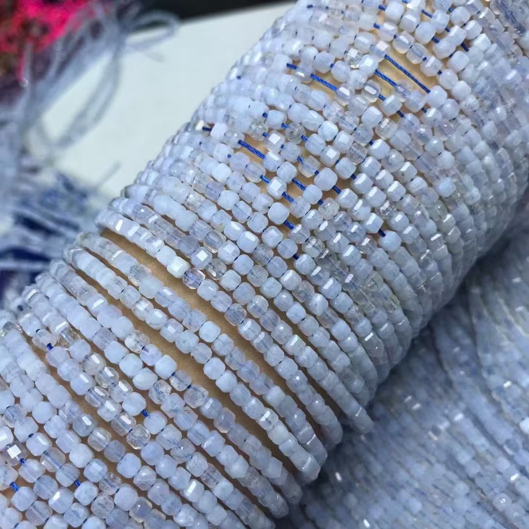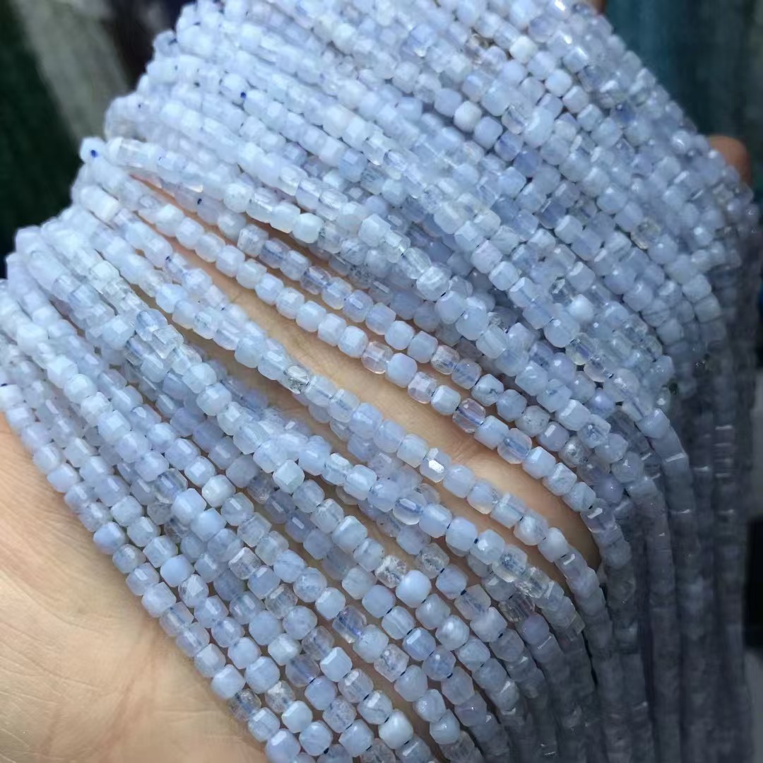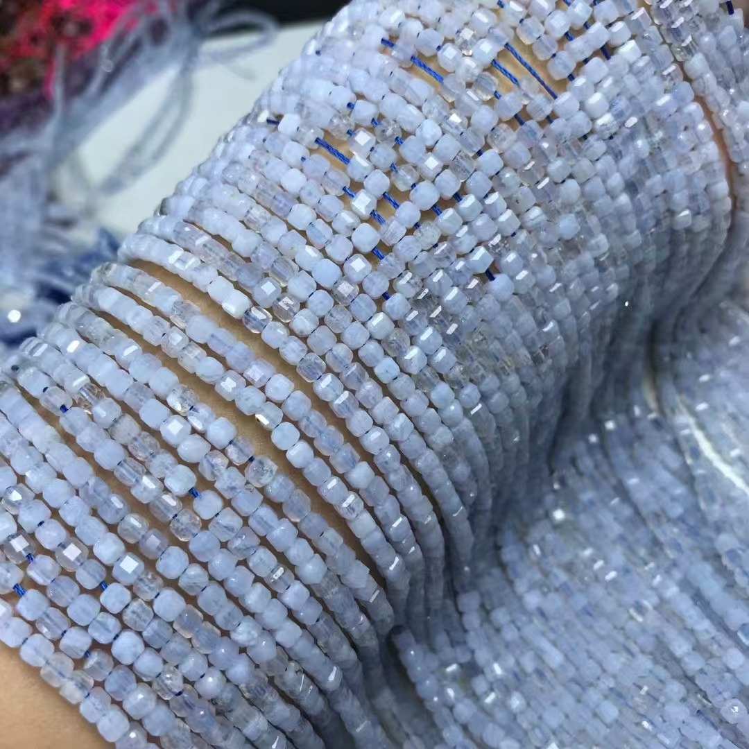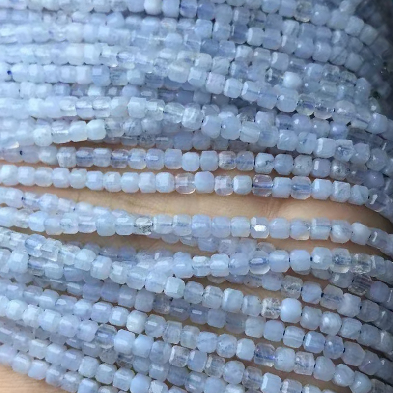 Perline naturali in agata blu, Quadrato, naturale & DIY, 3x3mm, Venduto per Appross. 35-40 cm filo