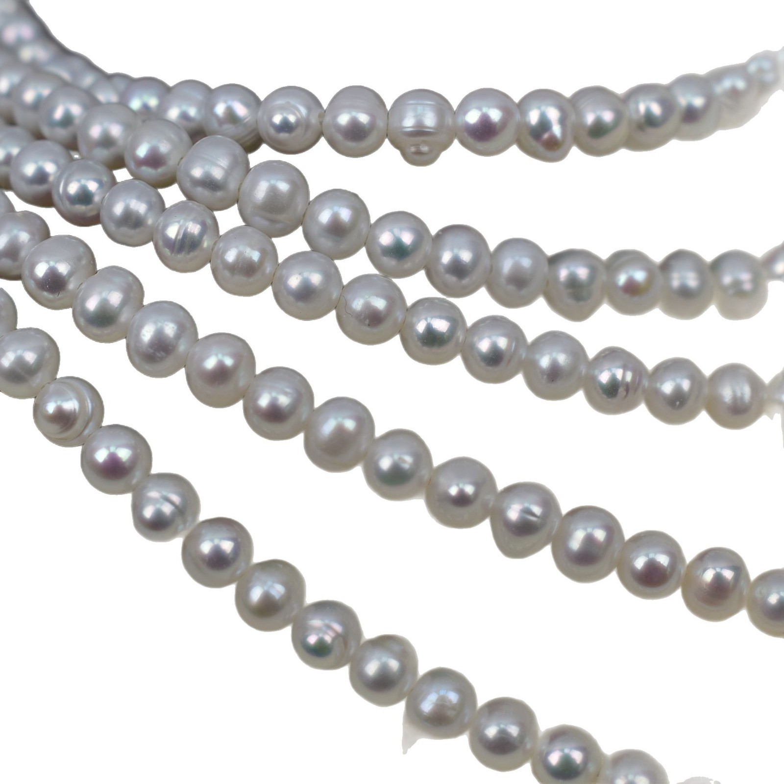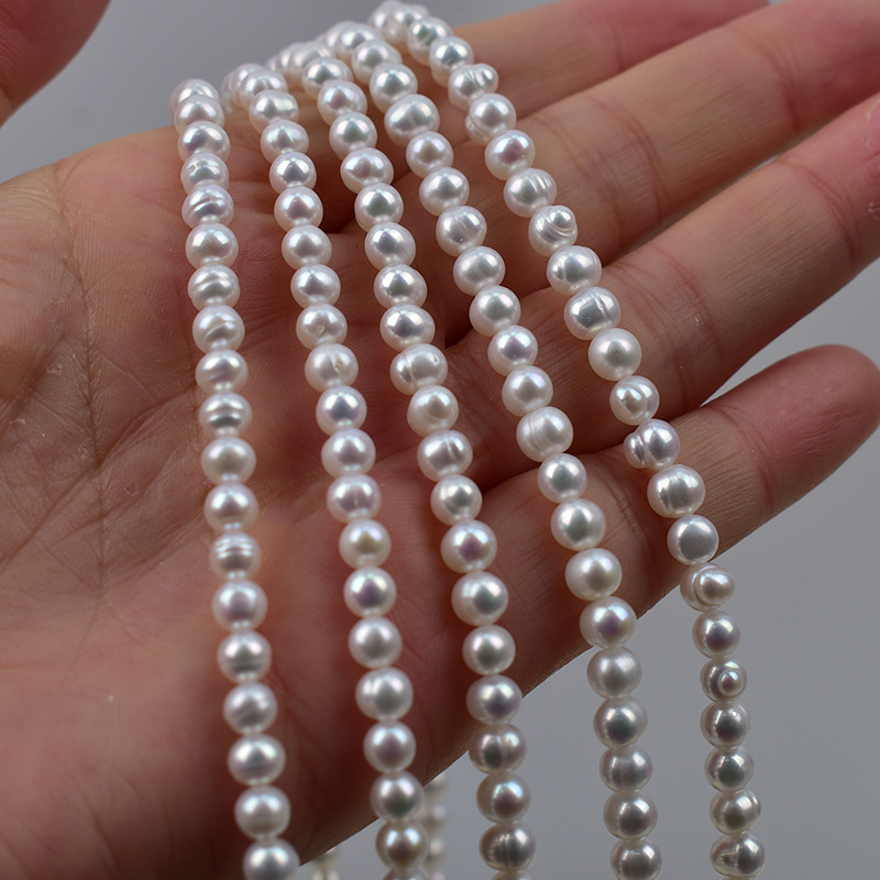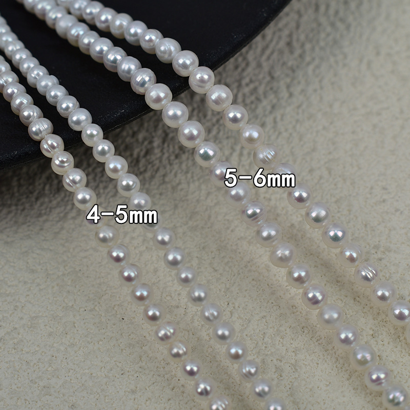 Perline perle d'acqua dolce naturale, perla d'acquadolce coltivata naturalmente, Cerchio, DIY, bianco, 4-5mm, Venduto per 38 cm filo