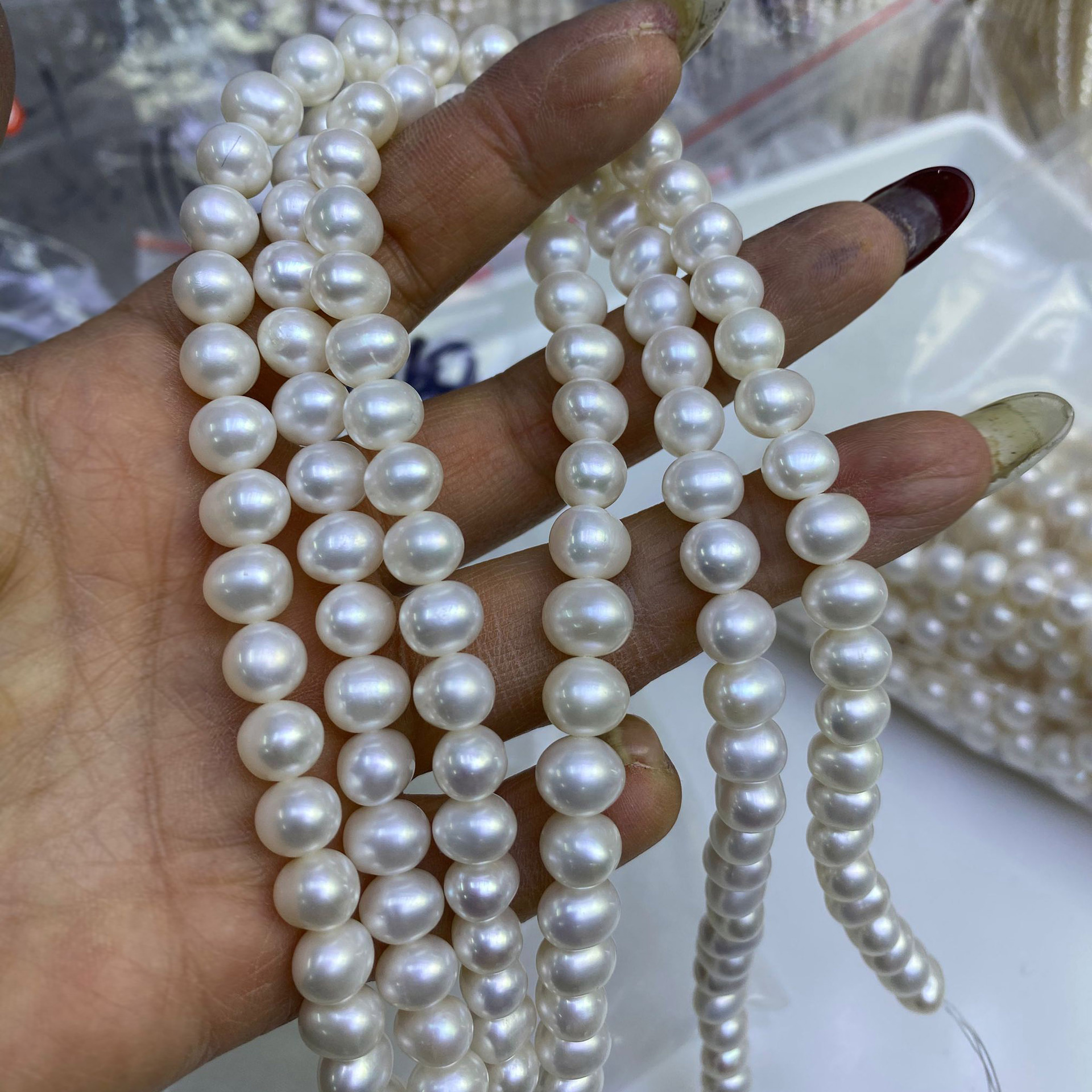 Perline perle d'acqua dolce naturale, perla d'acquadolce coltivata naturalmente, Ovale, DIY, bianco, 8x9mm, Venduto da filo