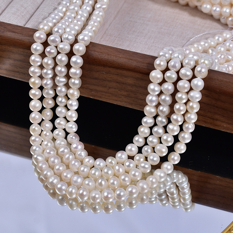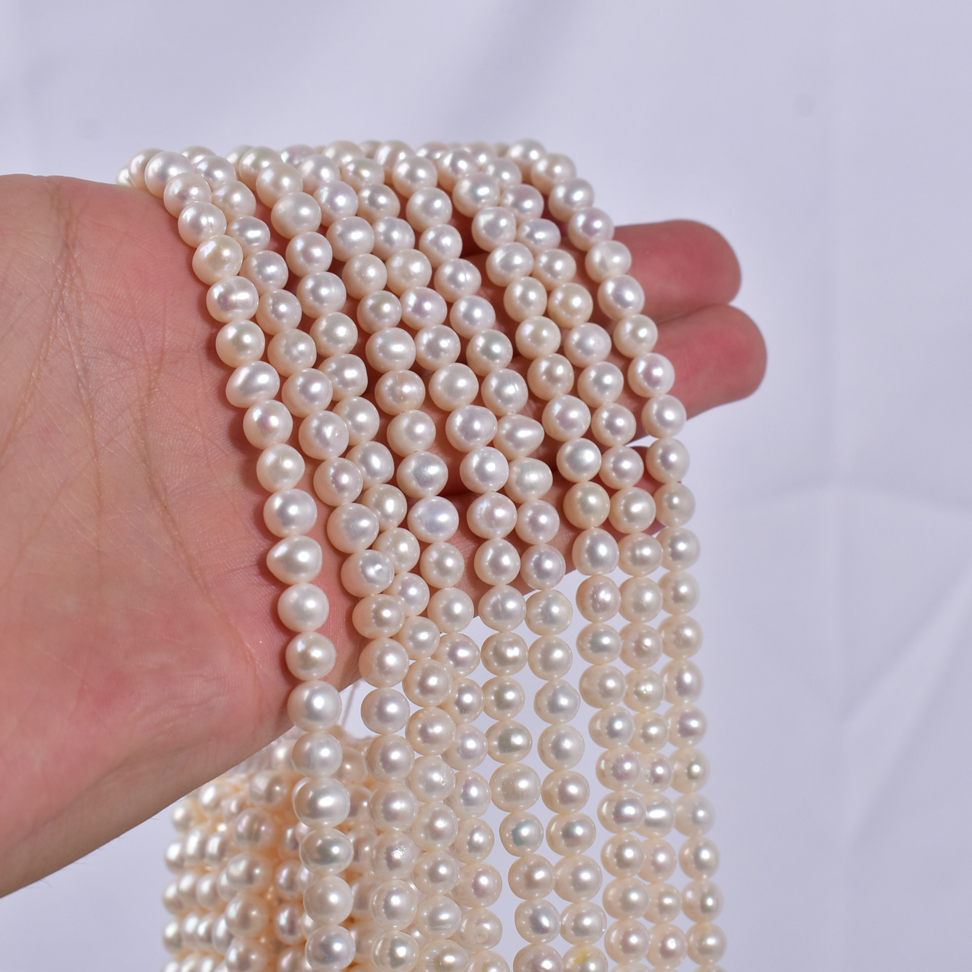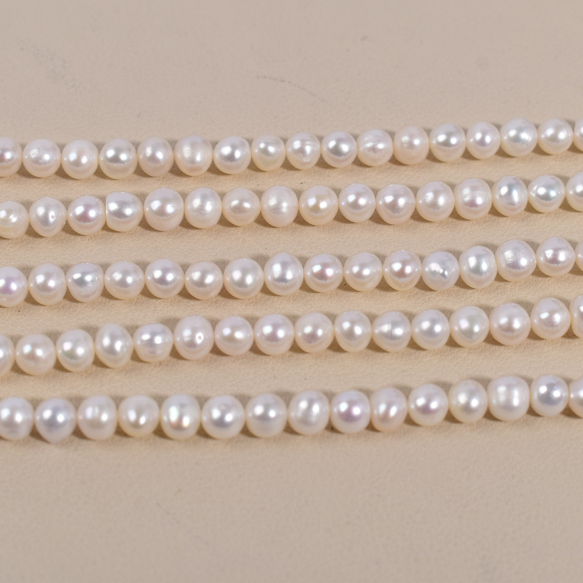 Perline perle d'acqua dolce naturale, perla d'acquadolce coltivata naturalmente, Leggermente rotondo, DIY, bianco, 5x6mm, Venduto da filo