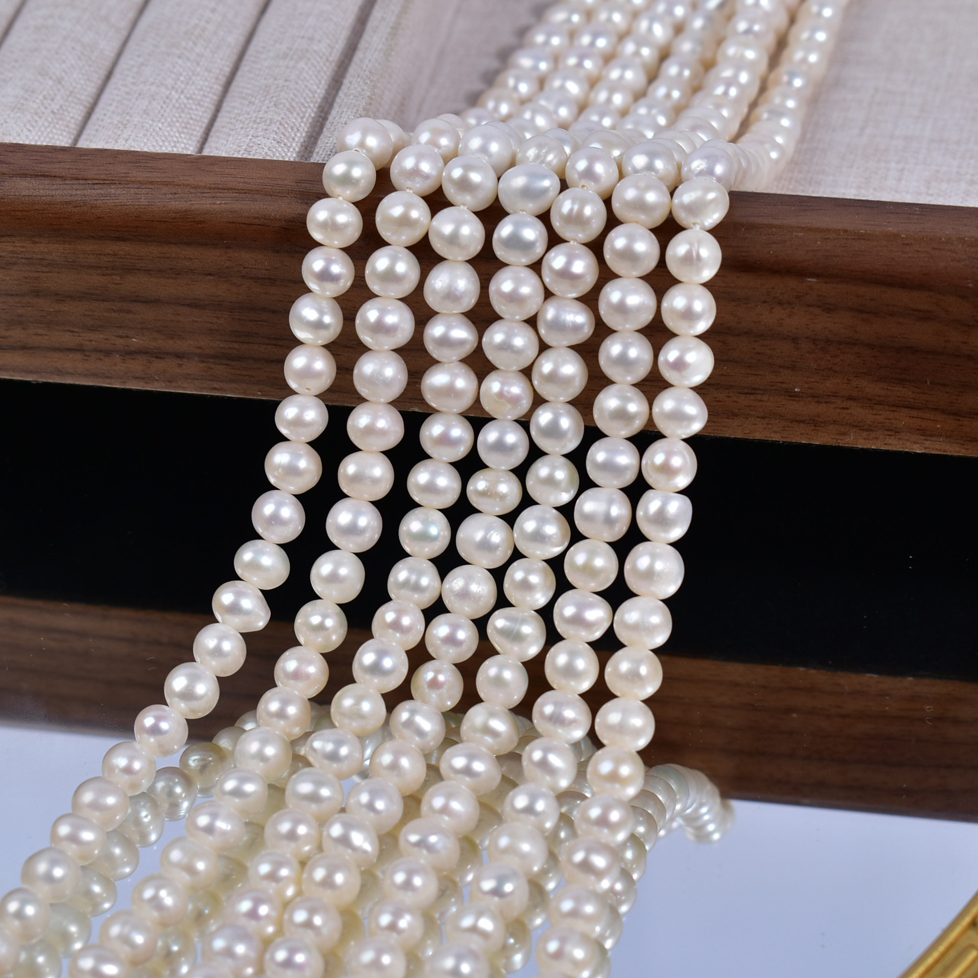 Perline perle d'acqua dolce naturale, perla d'acquadolce coltivata naturalmente, Cerchio, DIY, bianco, 4-5mm, Venduto per 38 cm filo