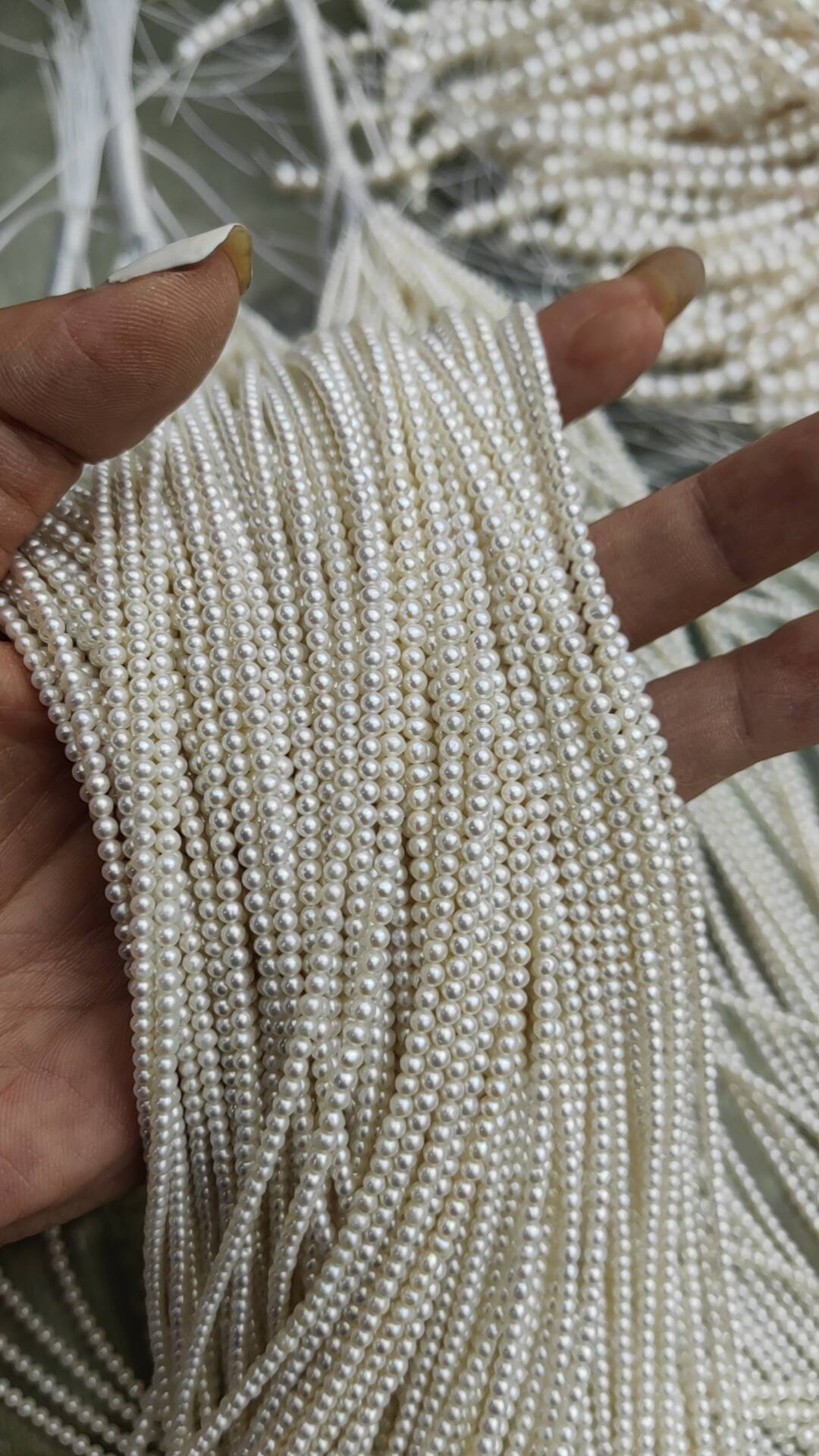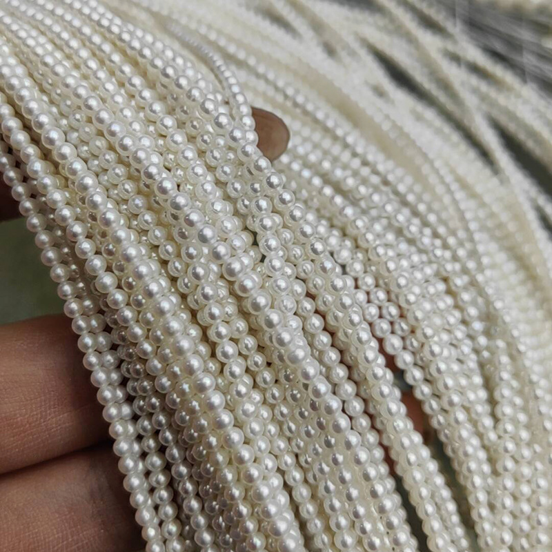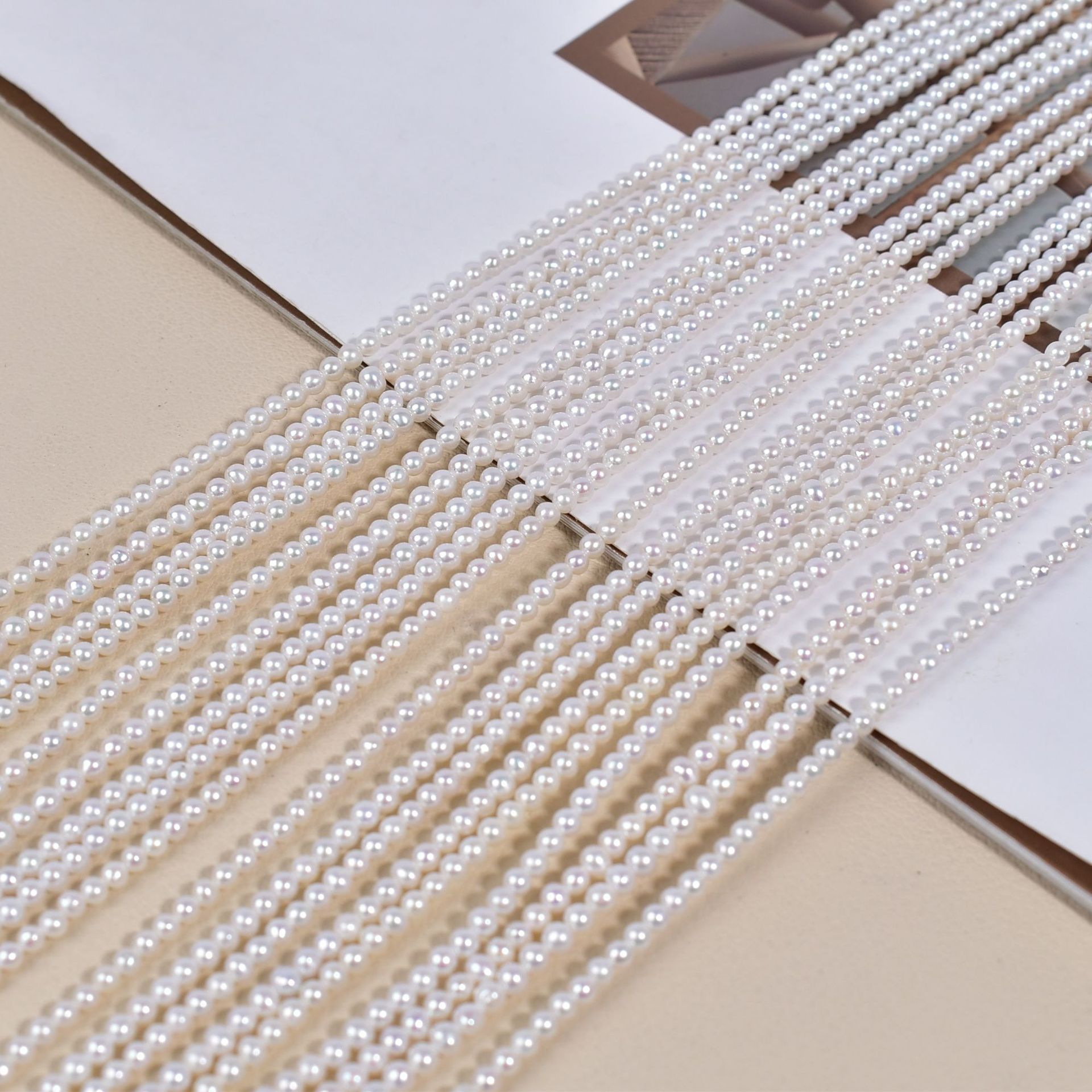Perline perle d'acqua dolce naturale, perla d'acquadolce coltivata naturalmente, Cerchio, DIY, bianco, 4-5mm, Venduto per 38 cm filo