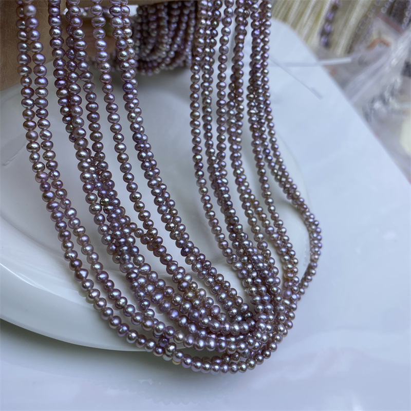 Perline perle d'acqua dolce naturale, perla d'acquadolce coltivata naturalmente, Leggermente rotondo, DIY, viola, 2x3mm, Venduto da filo