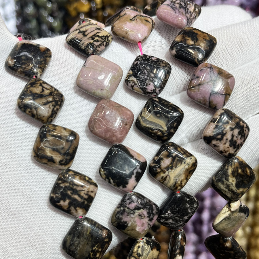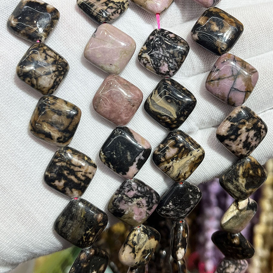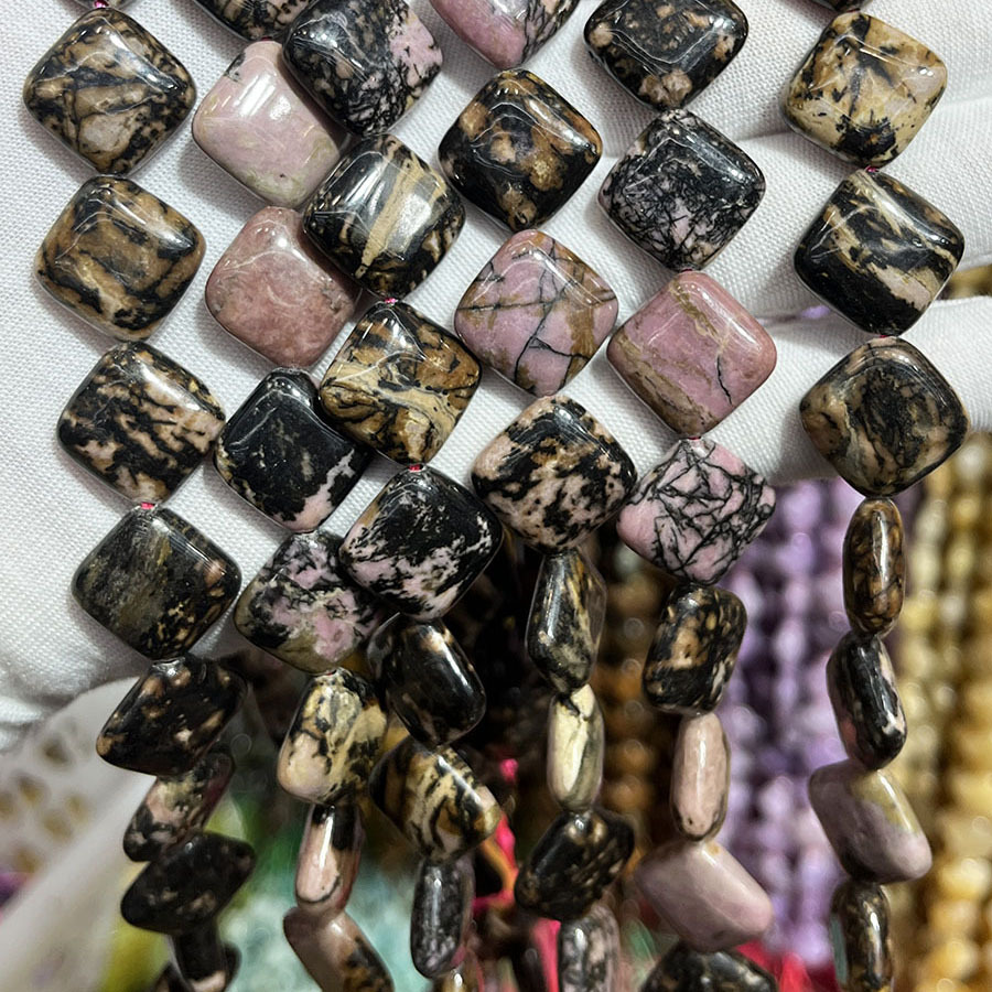 Pietra di rodocrosite a strisce nere perla, Rhombus, DIY, colori misti, 15mm, Venduto per 38 cm filo