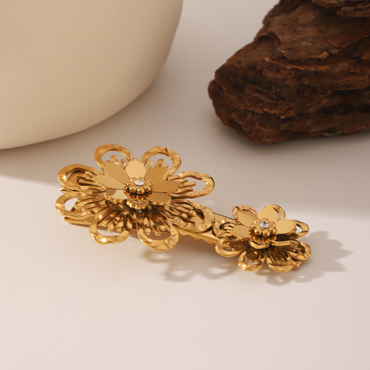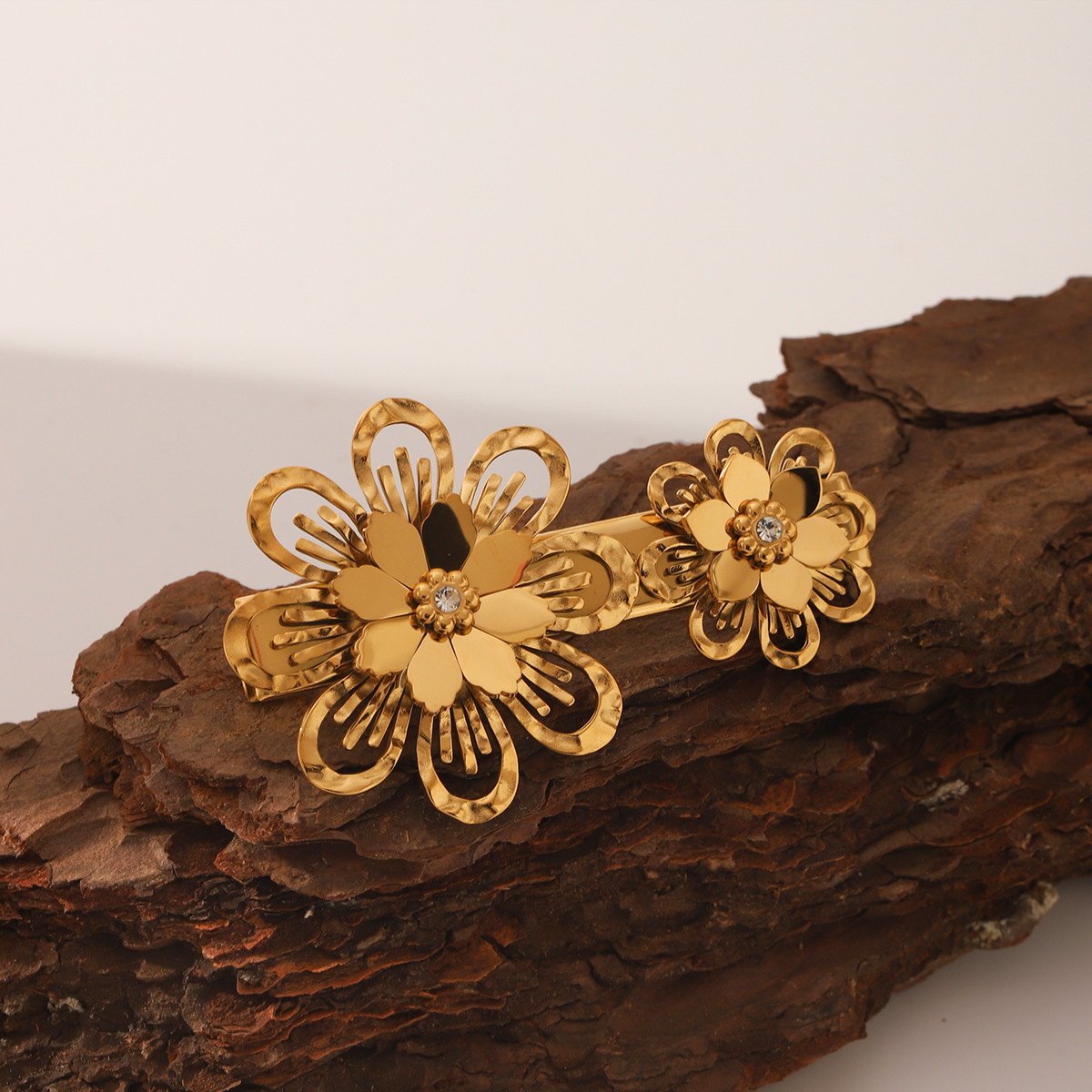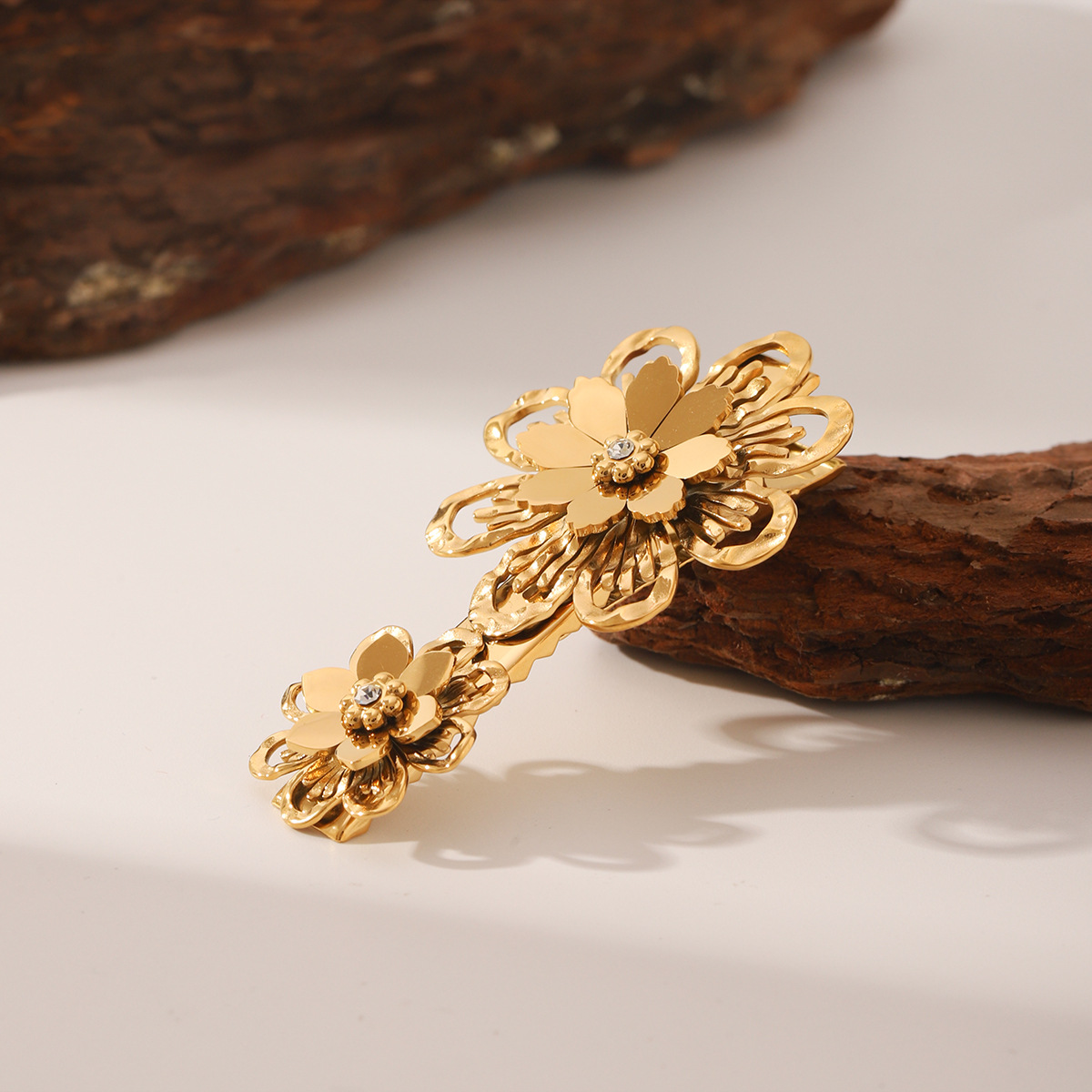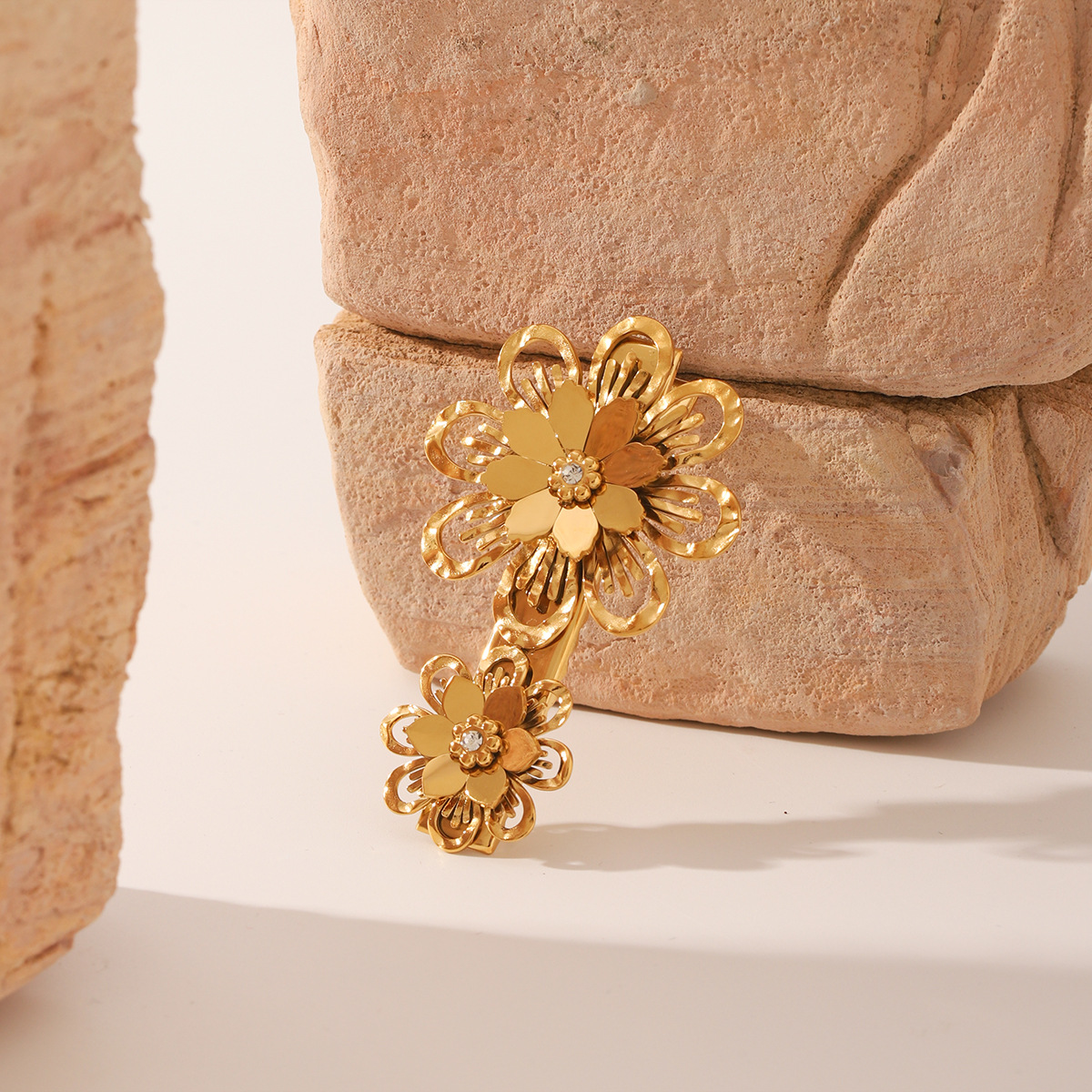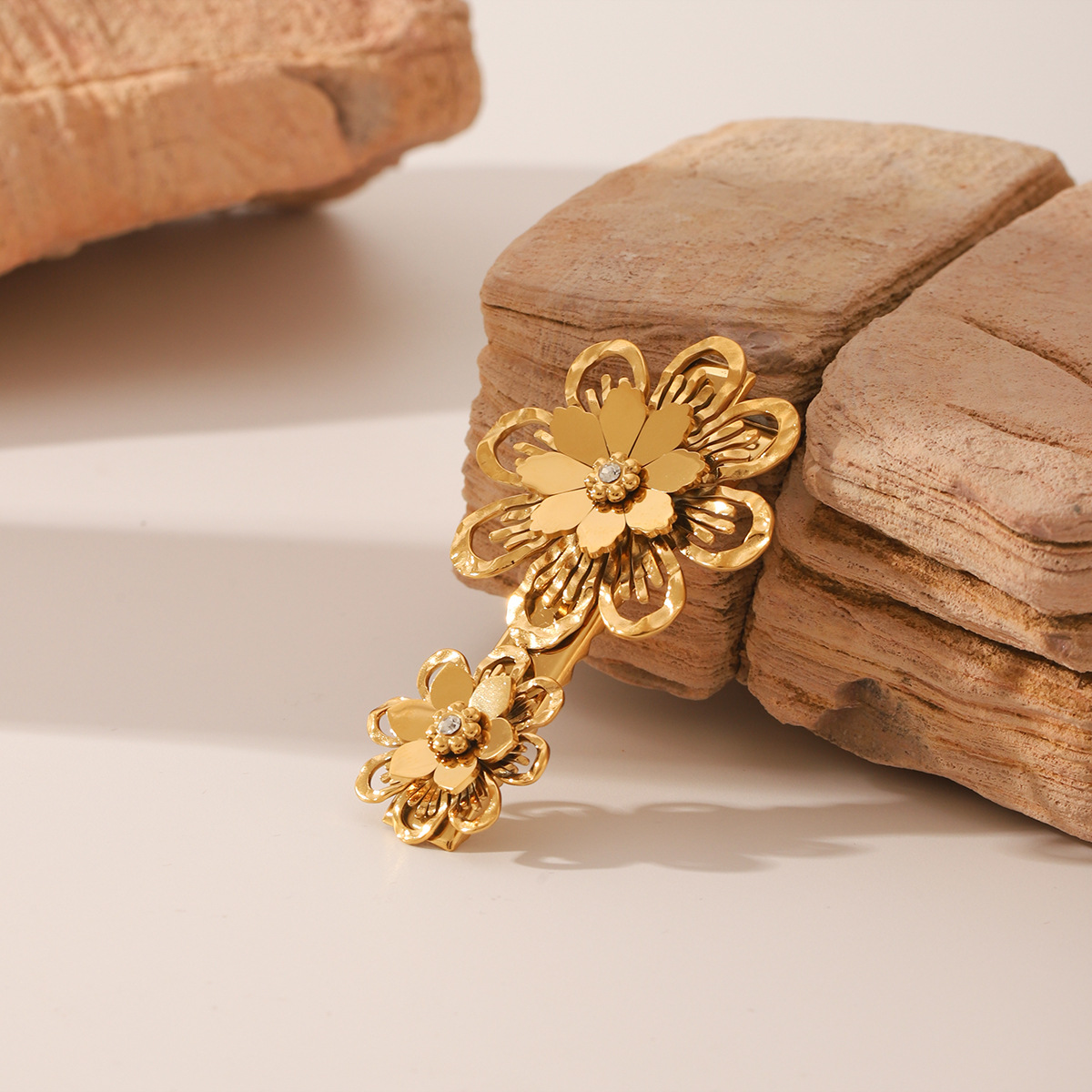Spillette a becco, 304 acciaio inox, Fiore, Placcato oro 18K, Micro spianare cubic zirconia & per la donna & cavo, Venduto da PC