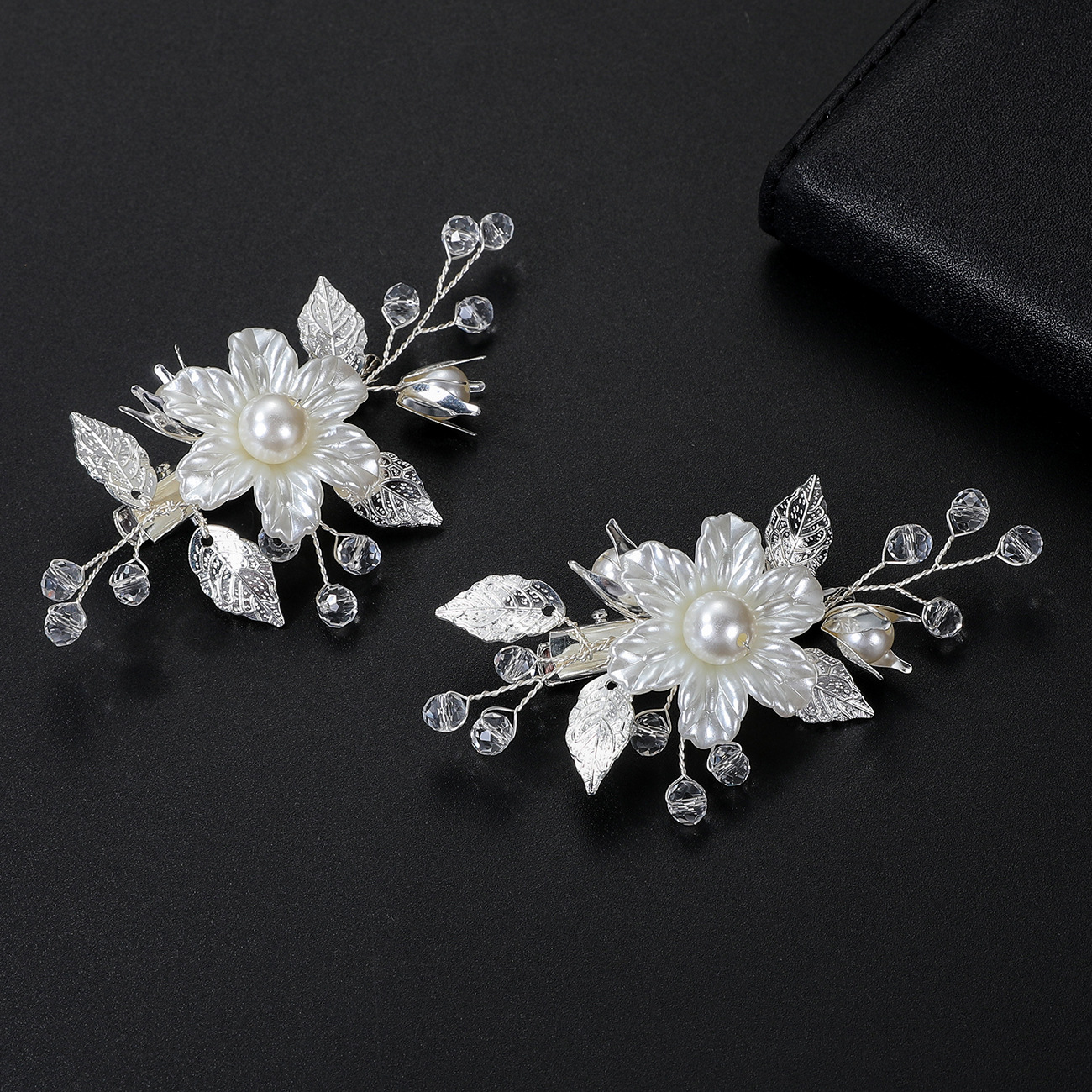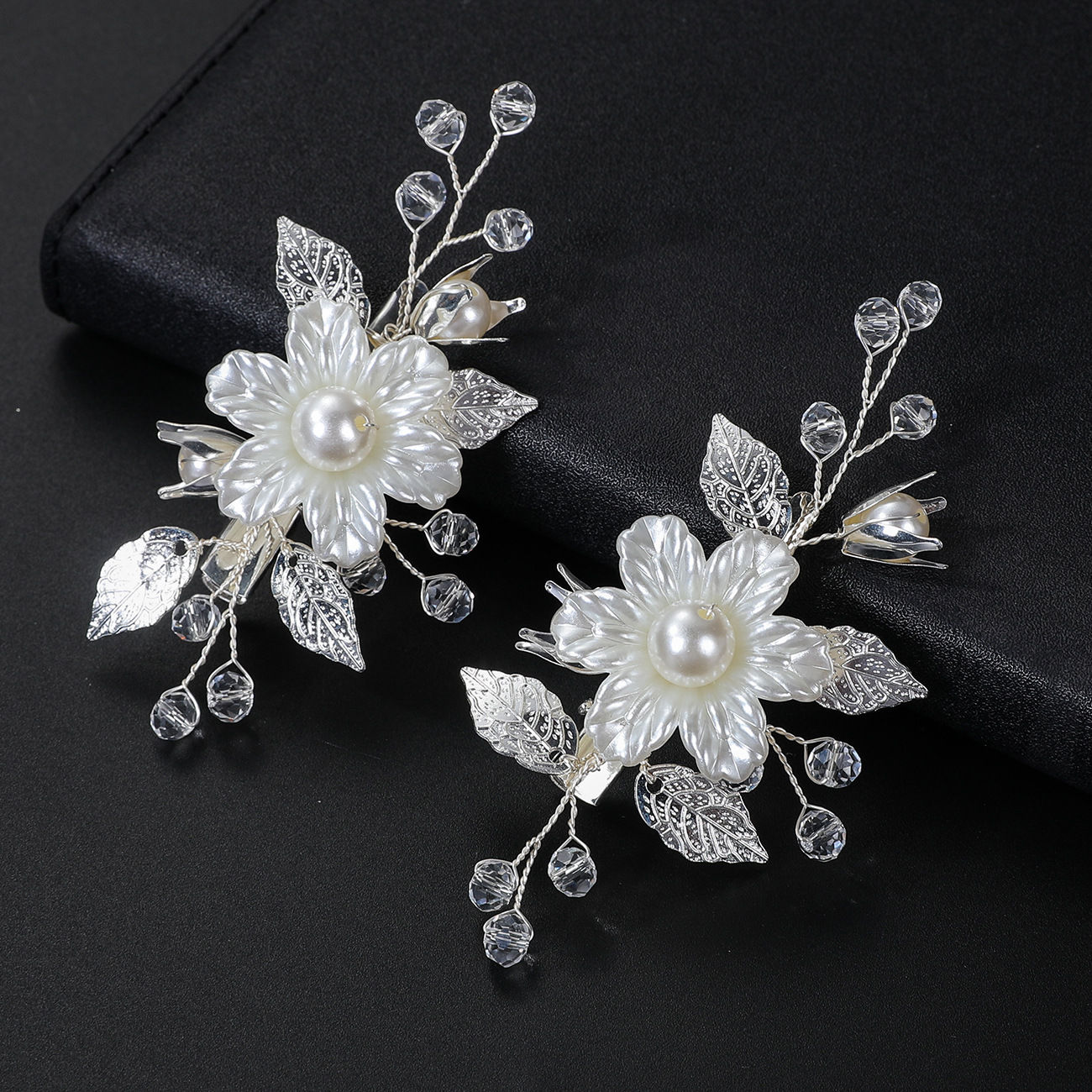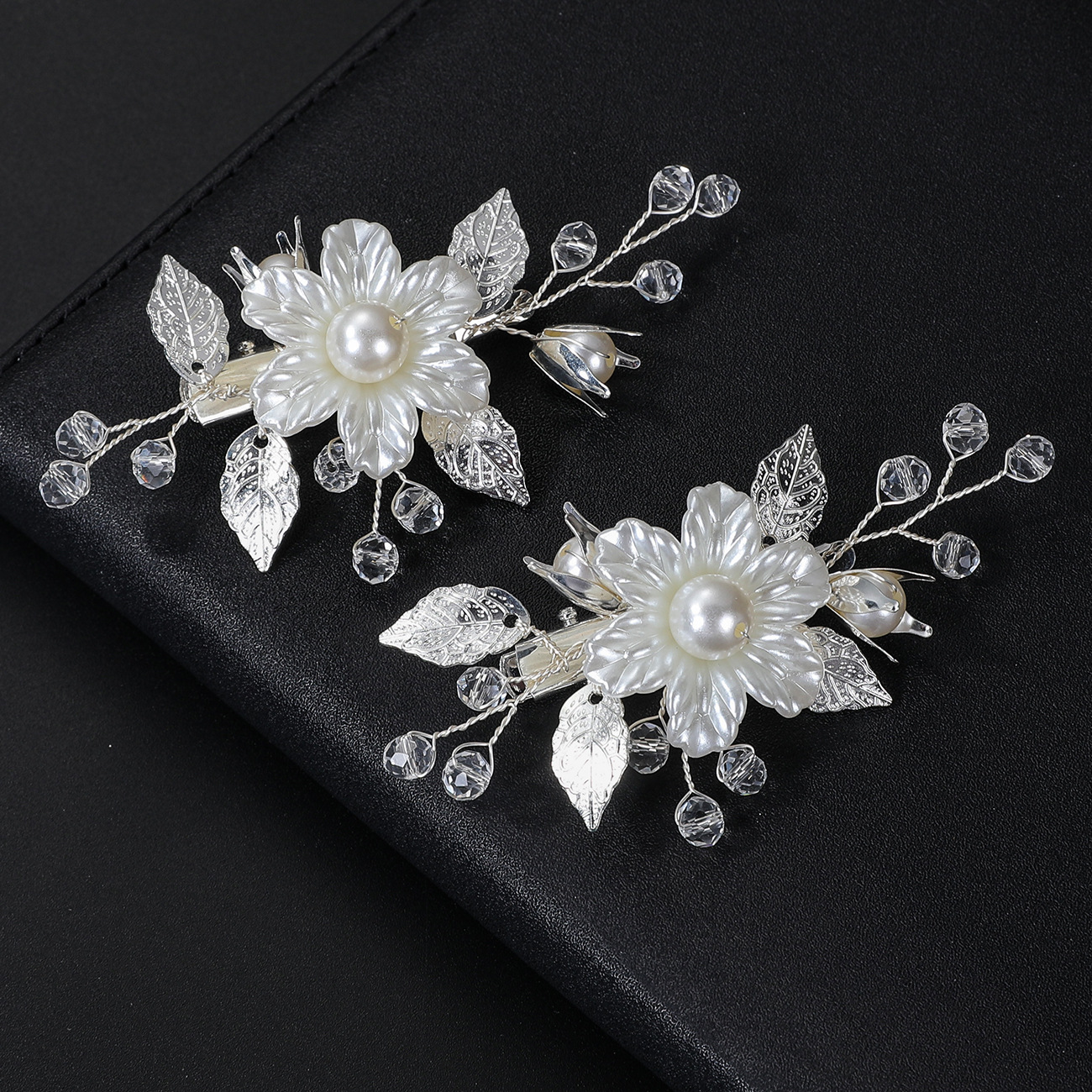 Spillette a becco, lega in zinco, with filo di ottone & argilla polimero & cristallo & perla in plastica, fatto a mano, gioielli di moda & per la donna, argento, 80x60x10mm, Venduto da coppia