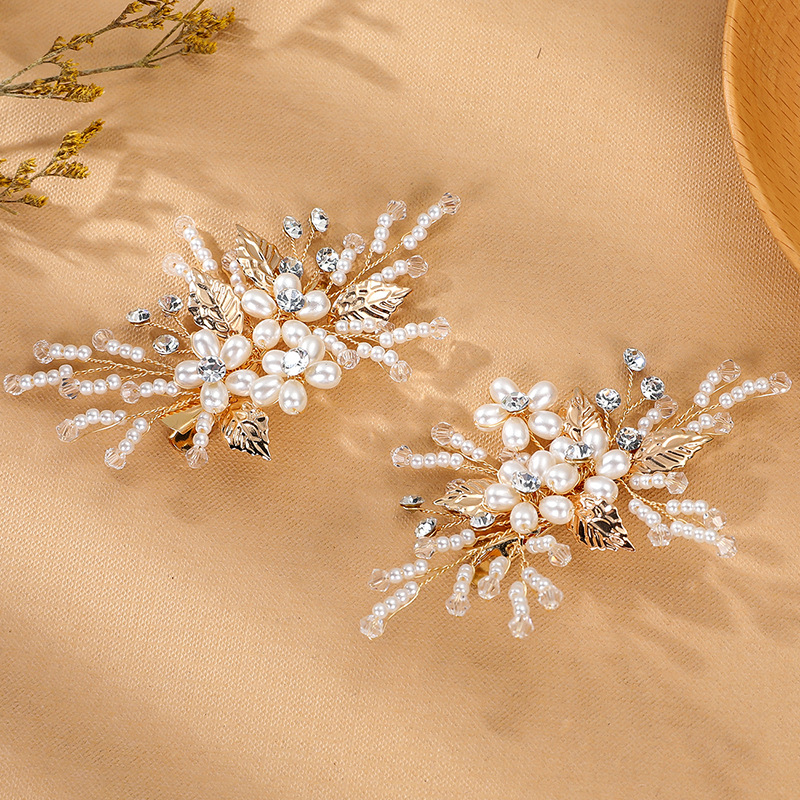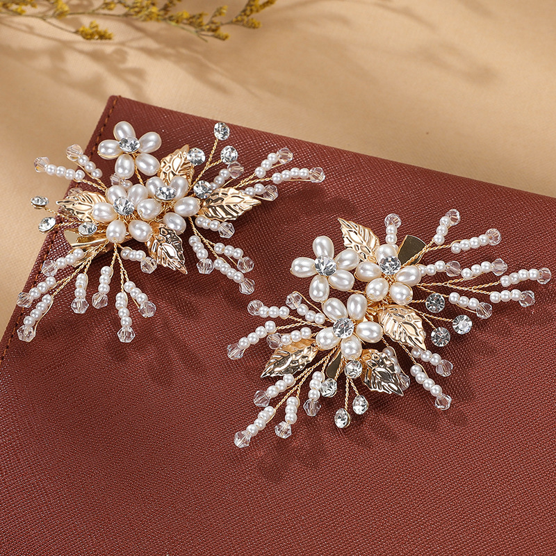 Spillette a becco, lega in zinco, with filo di ottone & cristallo & perla in plastica, fatto a mano, gioielli di moda & per la donna, dorato, 95x85x5mm, Venduto da PC