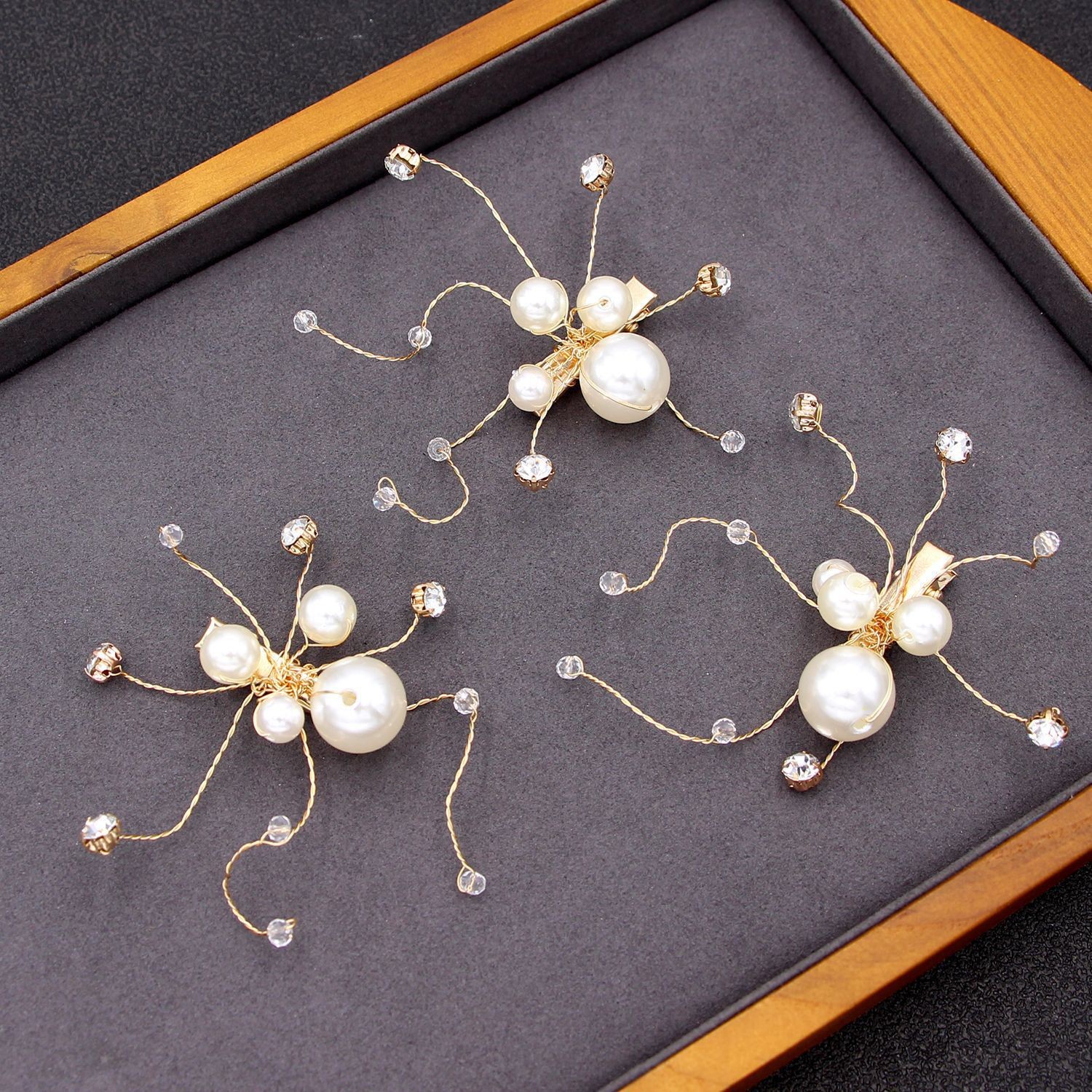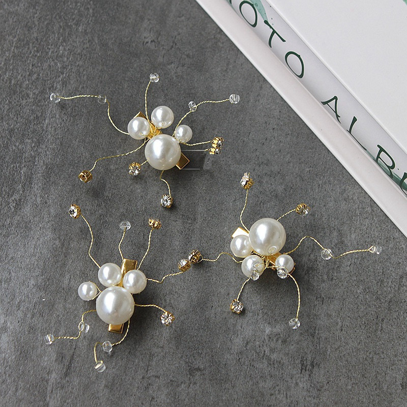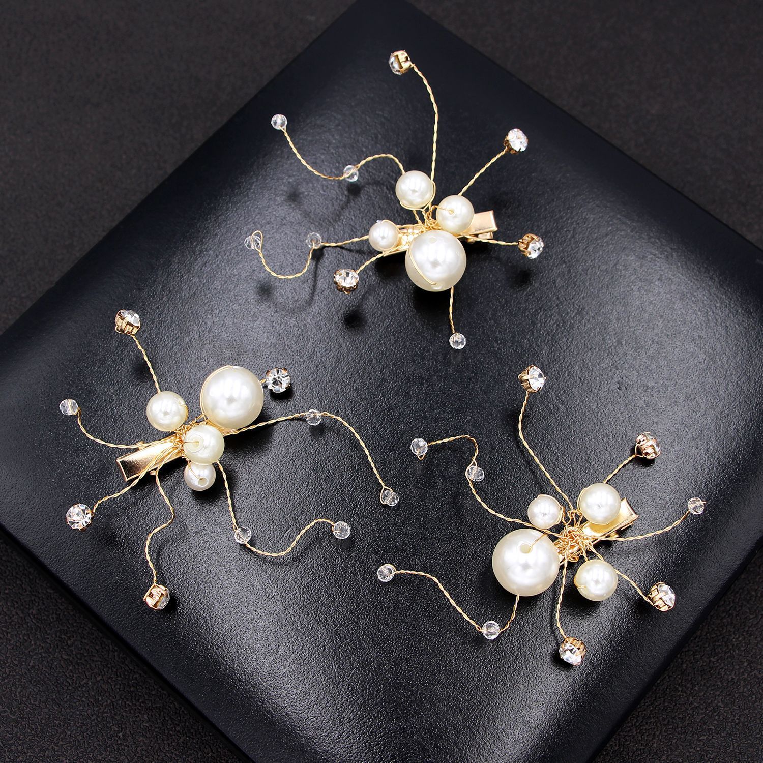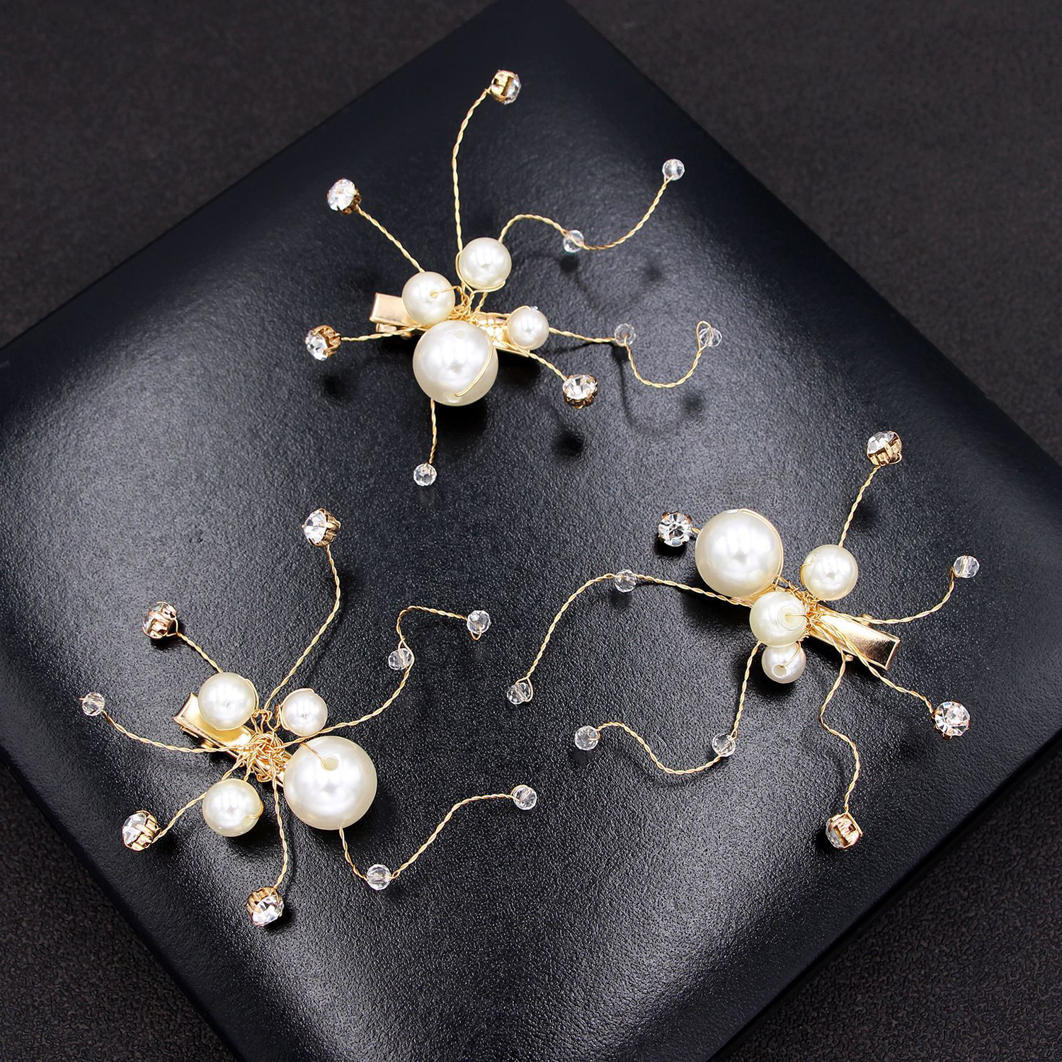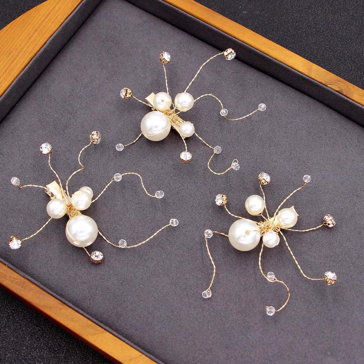 Spillette a becco, lega in zinco, with filo di ottone & cristallo & perla in plastica, fatto a mano, tre pezzi & gioielli di moda & per la donna, dorato, 25x25x75mm, Venduto da set