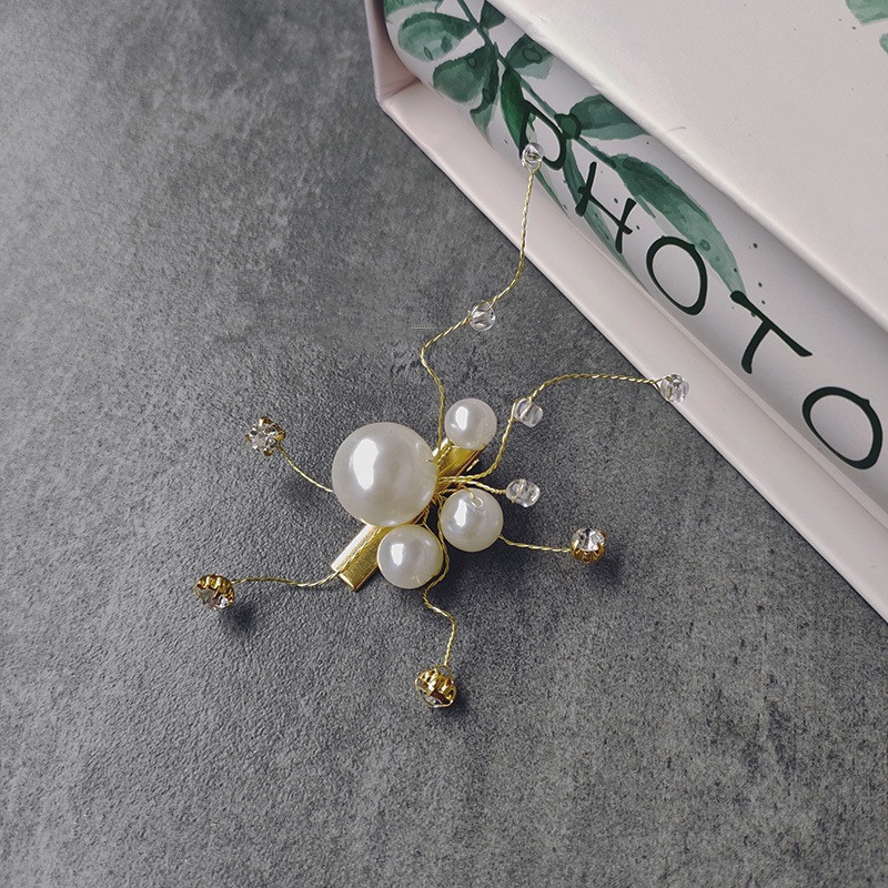 Spillette a becco, lega in zinco, with filo di ottone & argilla polimero & perla in plastica, fatto a mano, gioielli di moda & per la donna & con strass, dorato, 110x50mm, Venduto da PC