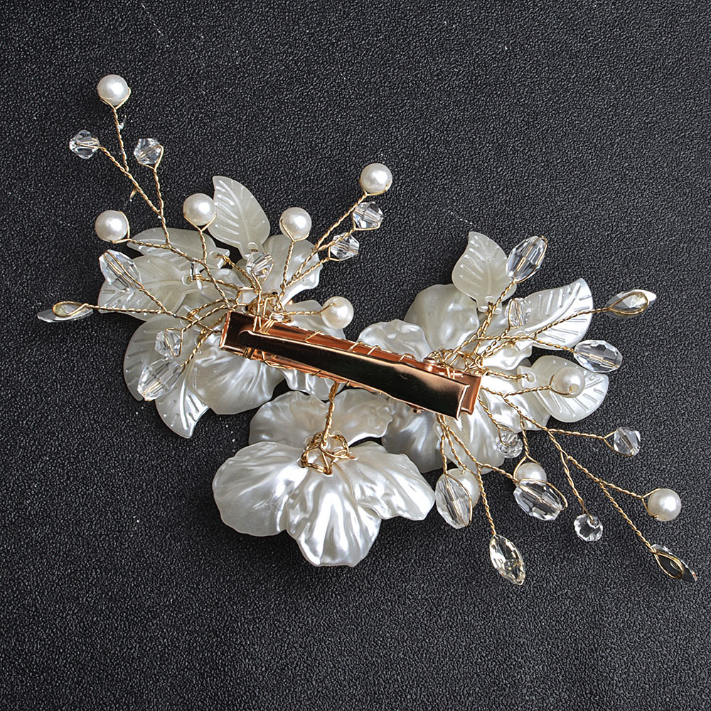 Spillette a becco, lega in zinco, with filo di ottone & argilla polimero & perla in plastica, fatto a mano, gioielli di moda & per la donna & con strass, dorato, 110x50mm, Venduto da PC