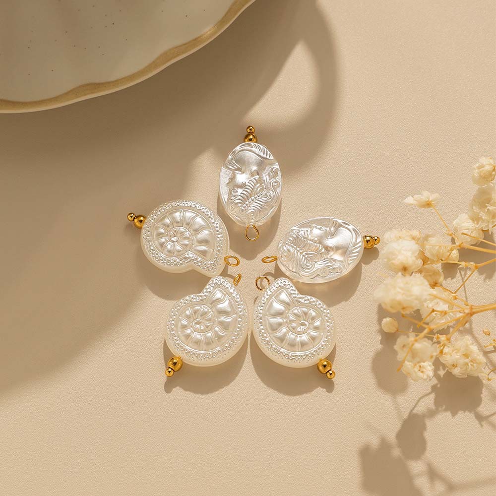 Plastica Ciondoli, 304 acciaio inox, with Perle di plastica ABS, Lumaca di mare, placcato color oro, DIY, nessuno, 10PC/borsa, Venduto da borsa